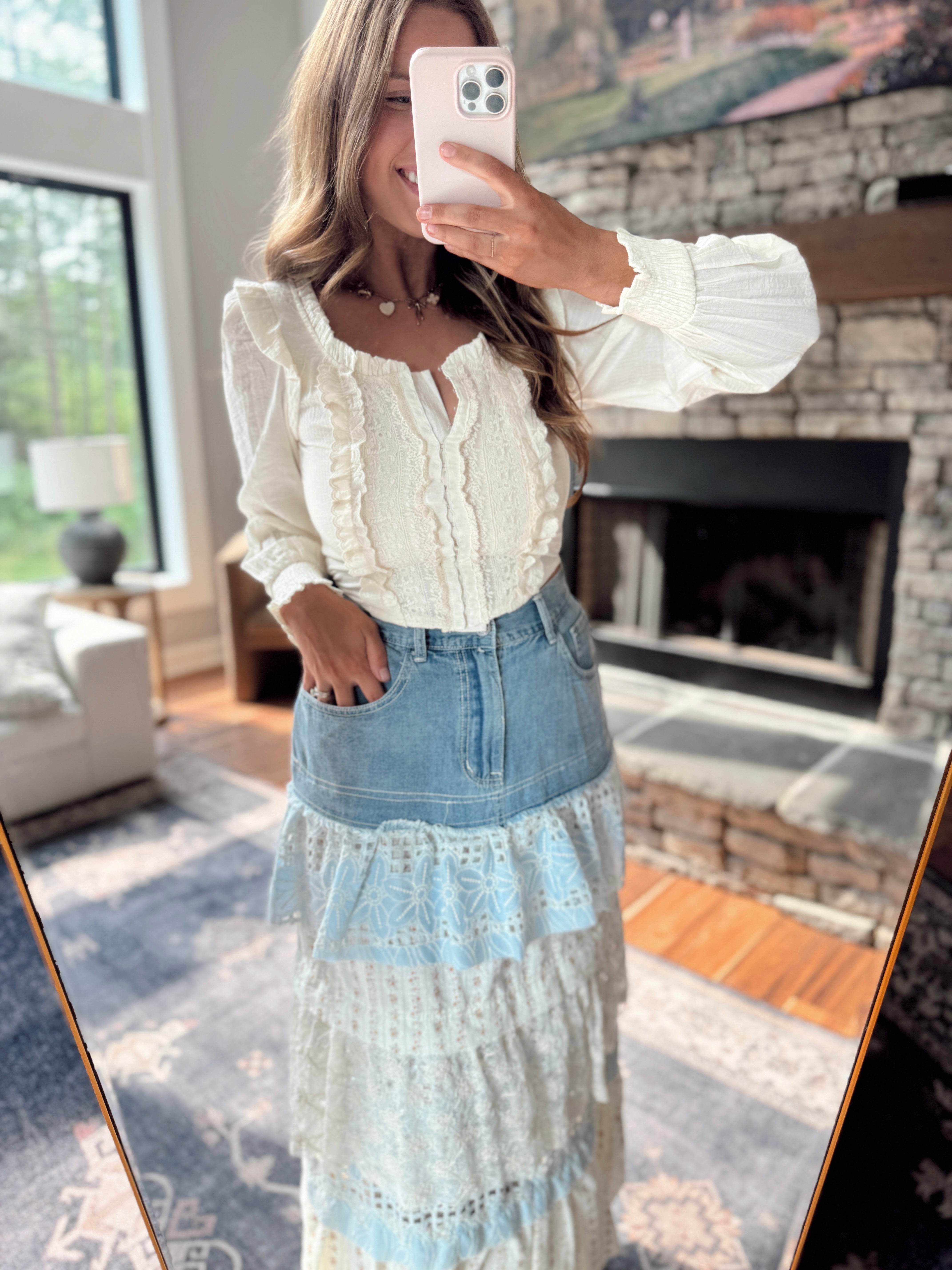 Angelica Cream Ruffled Corset Contrast Blouse