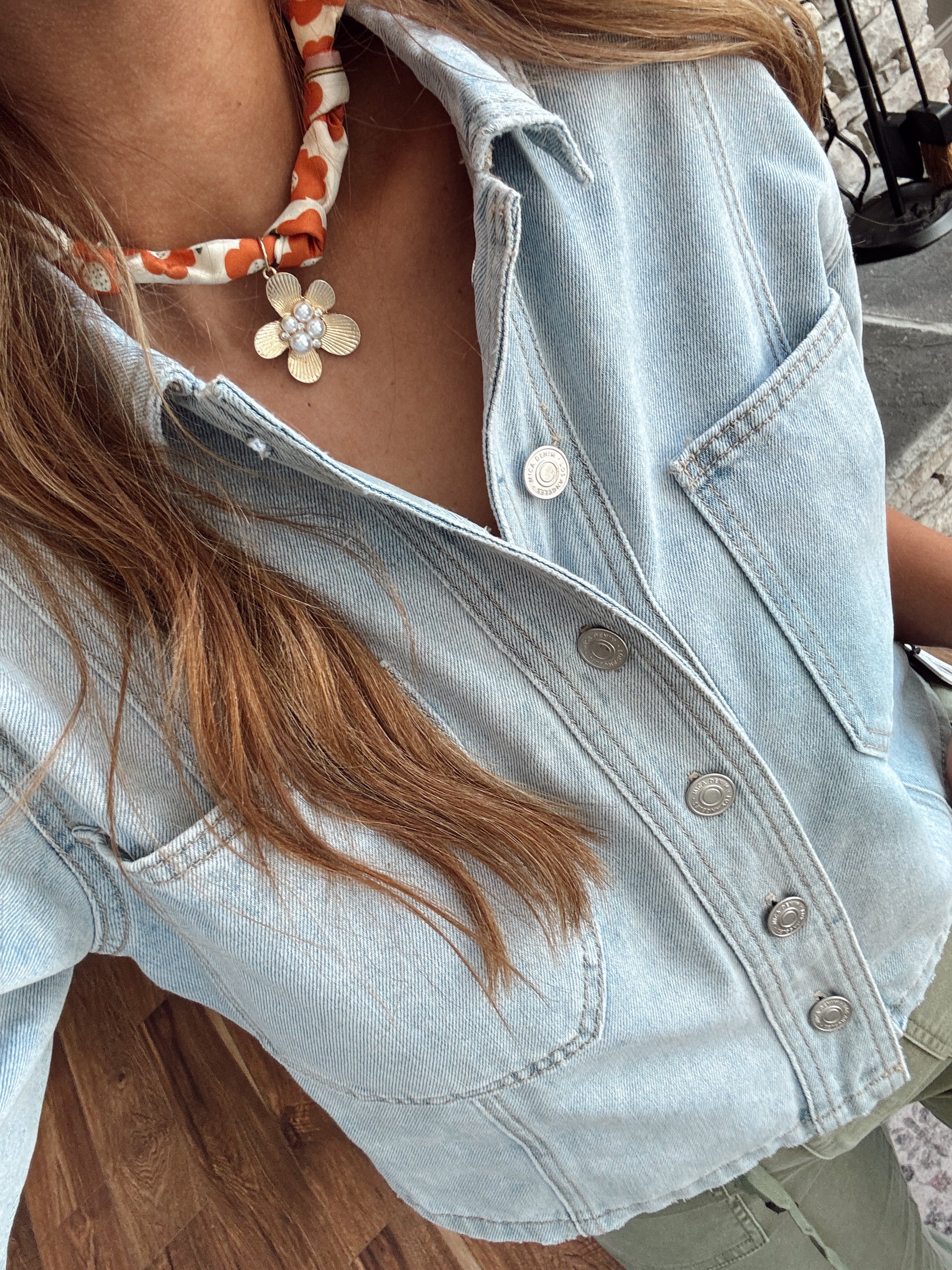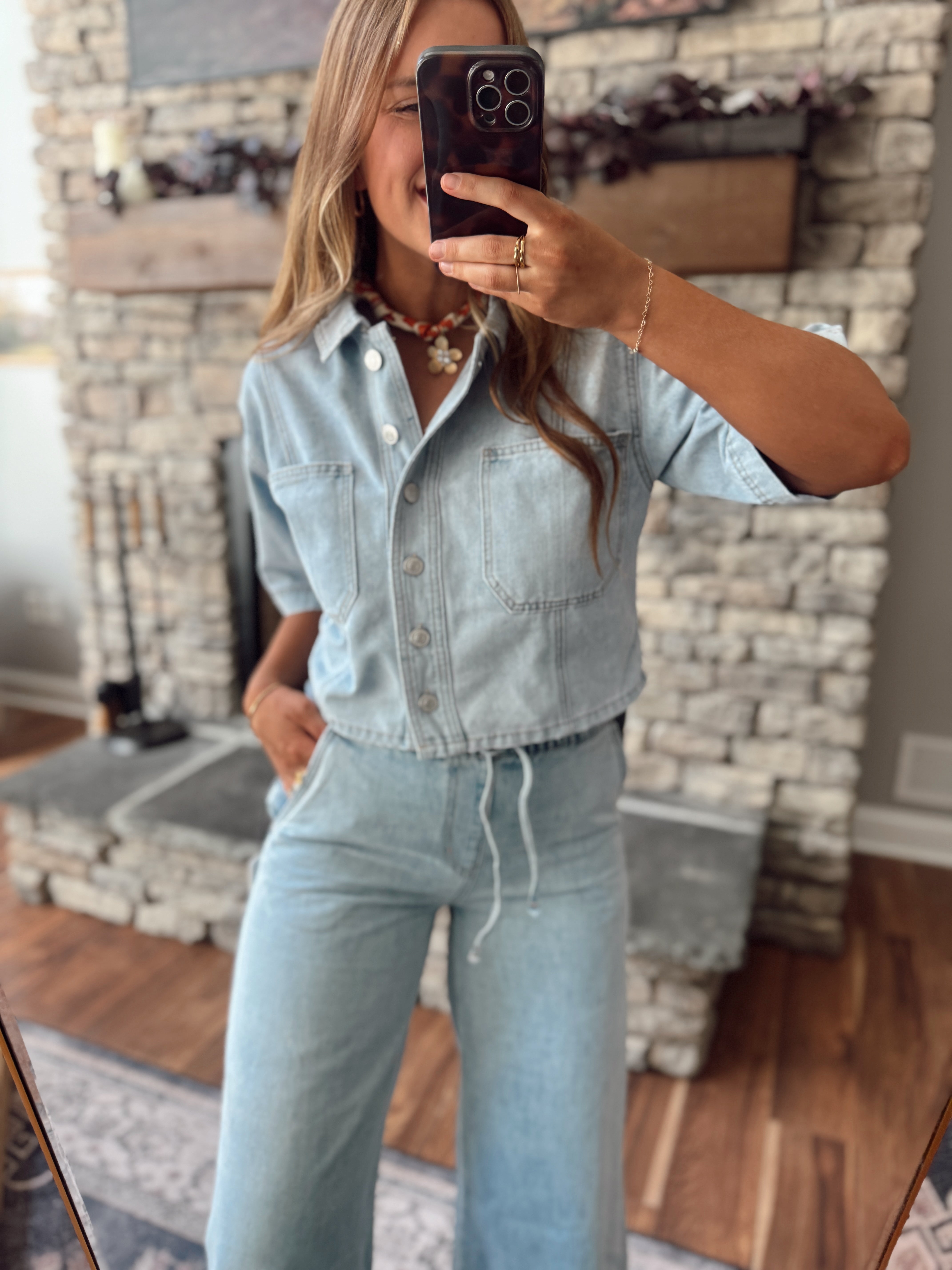 Mica Light Sea Cropped Denim Shirt