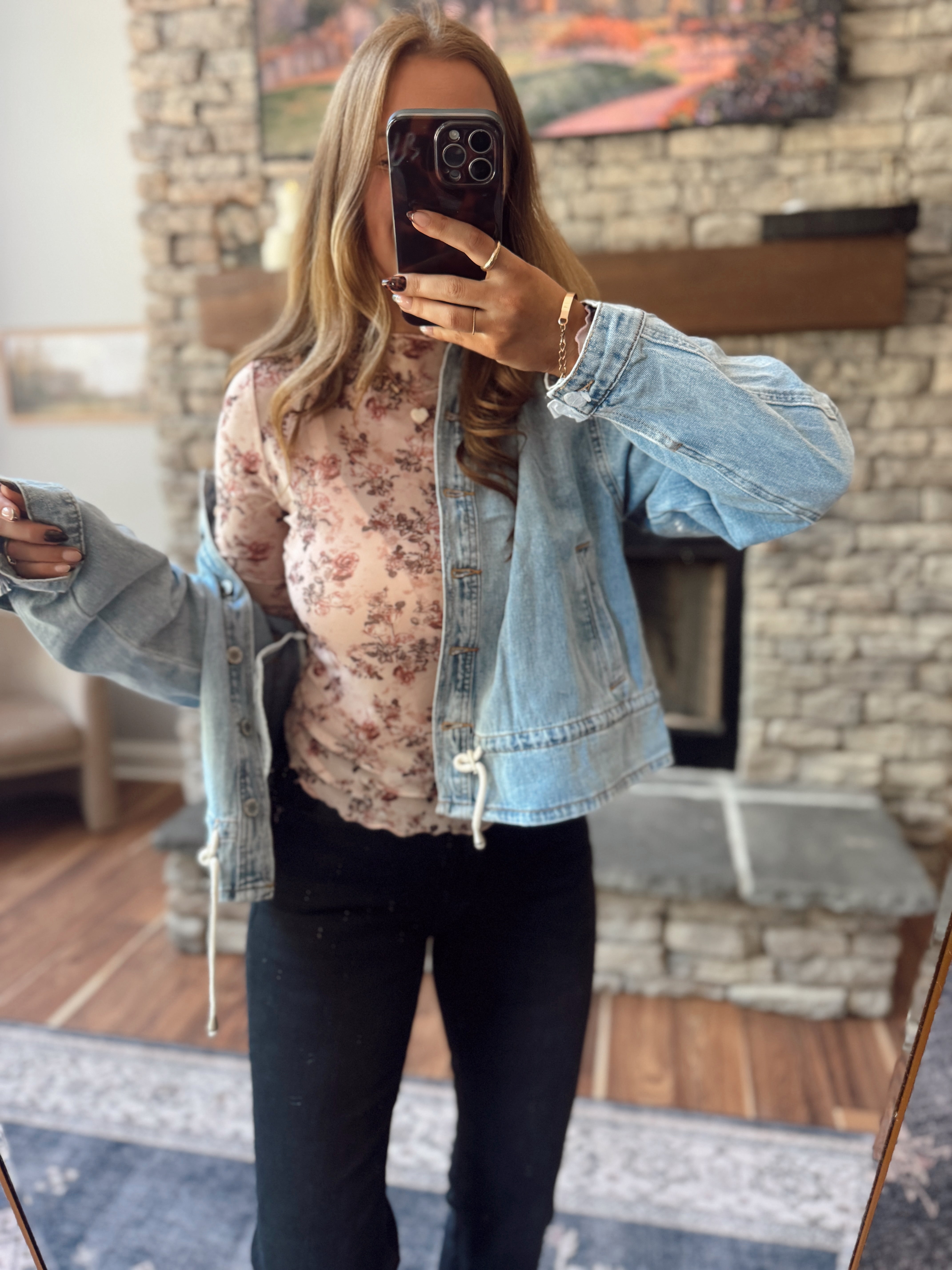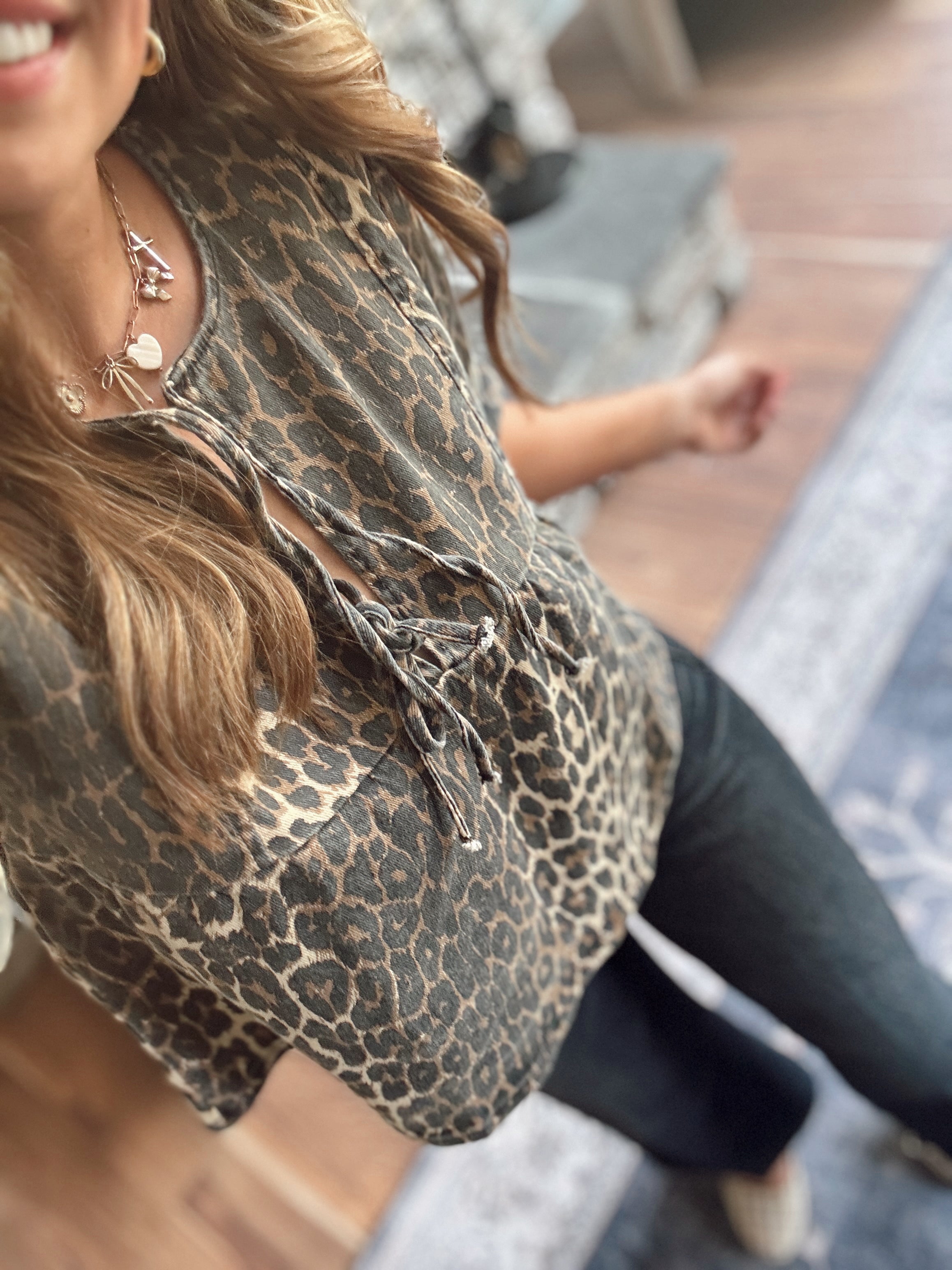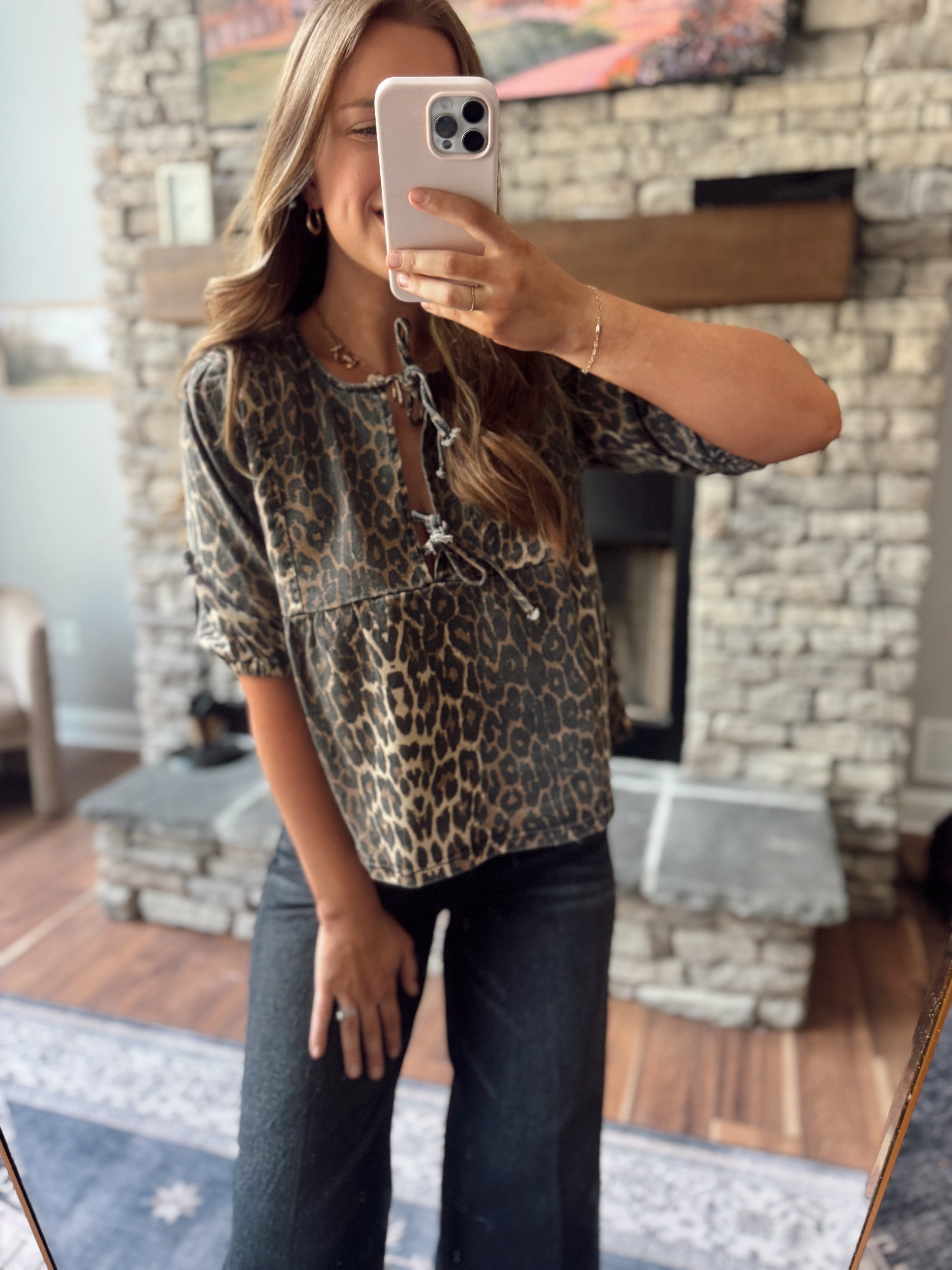 Addyson Leopard Bow Detail Denim Top