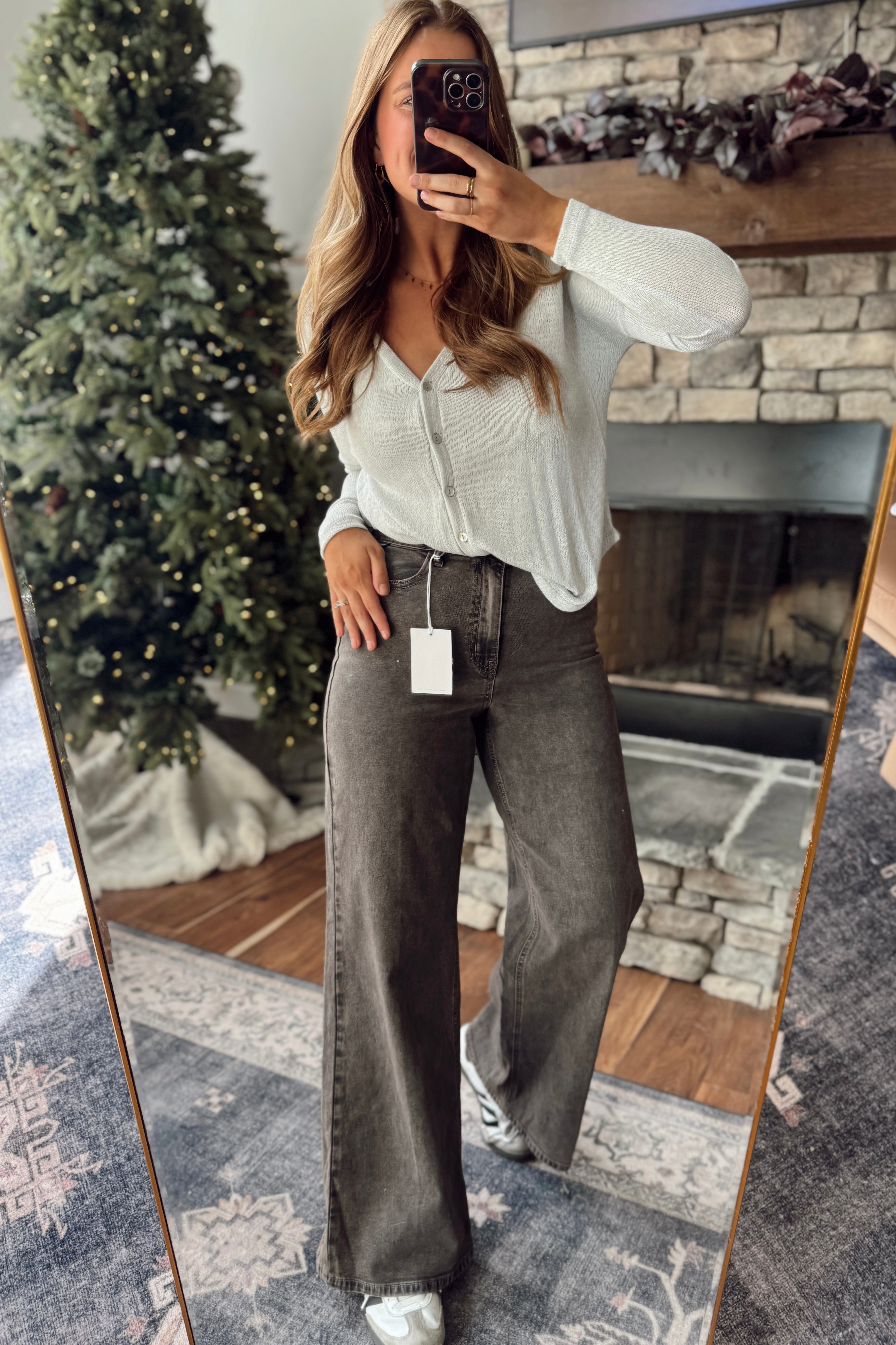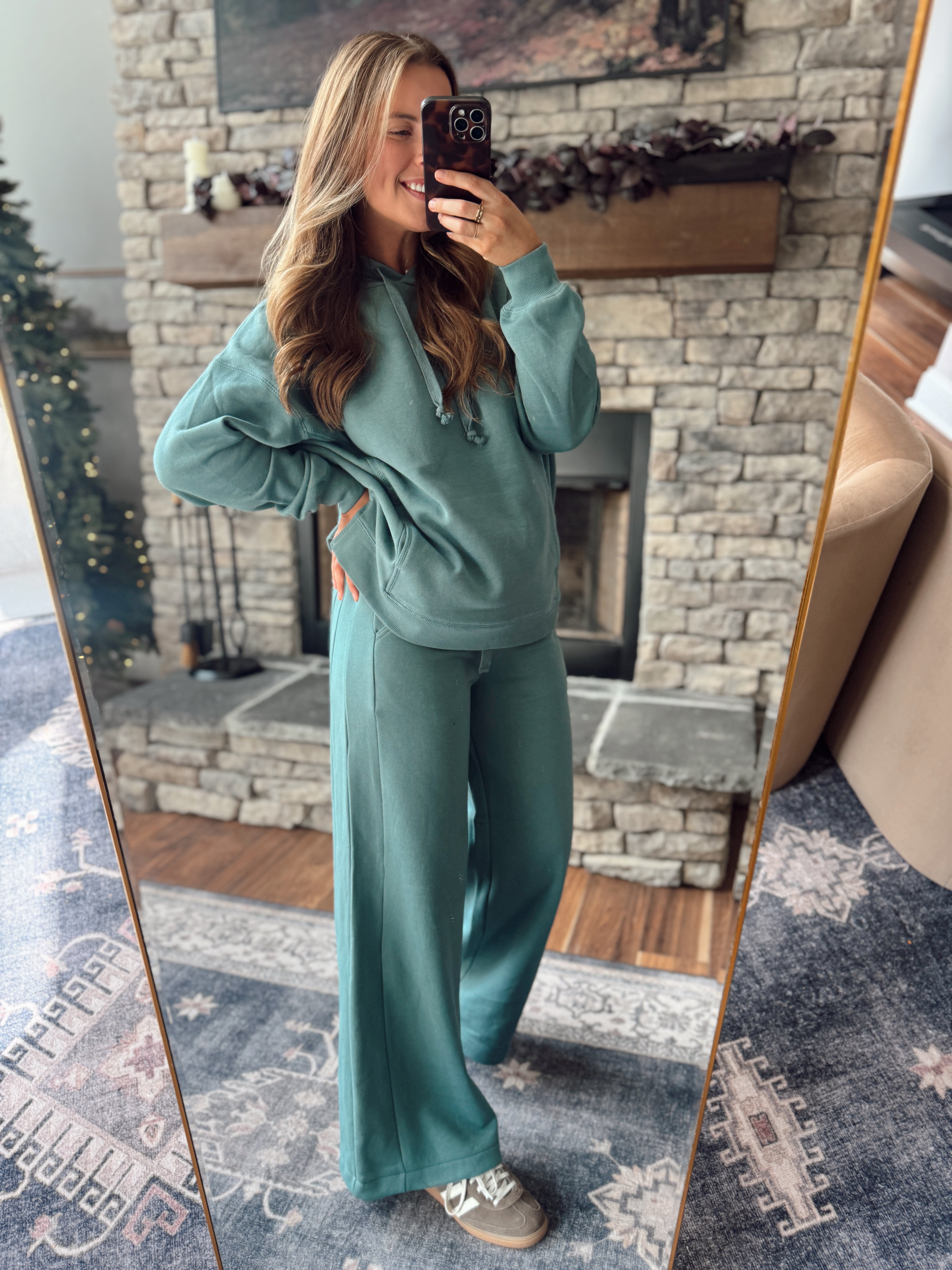 Risen Hunter Green HR Seam Detail Crop Wide Jeans