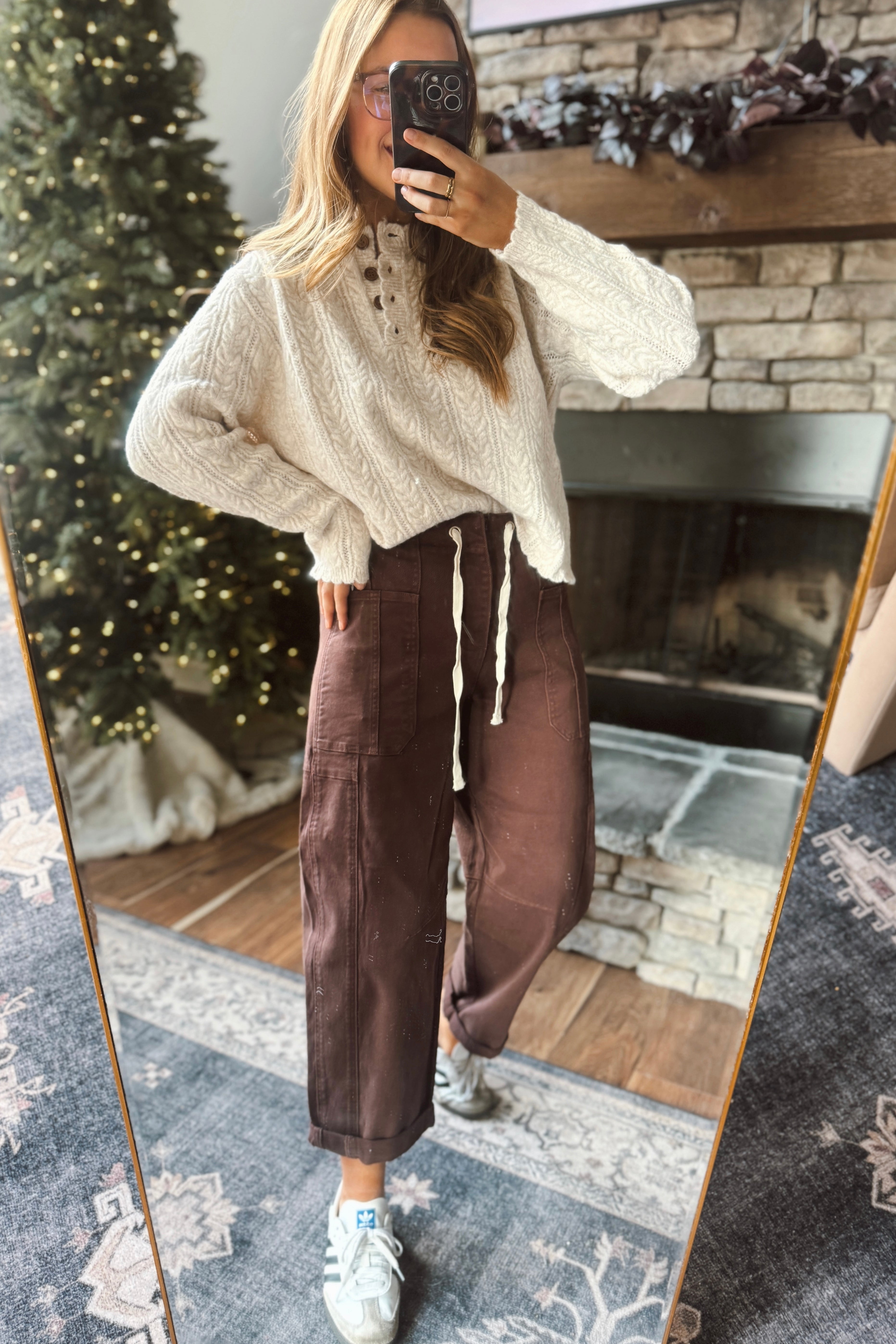 Risen Chocolate HR Crop Wide Barrel Cargo Pocket Pants