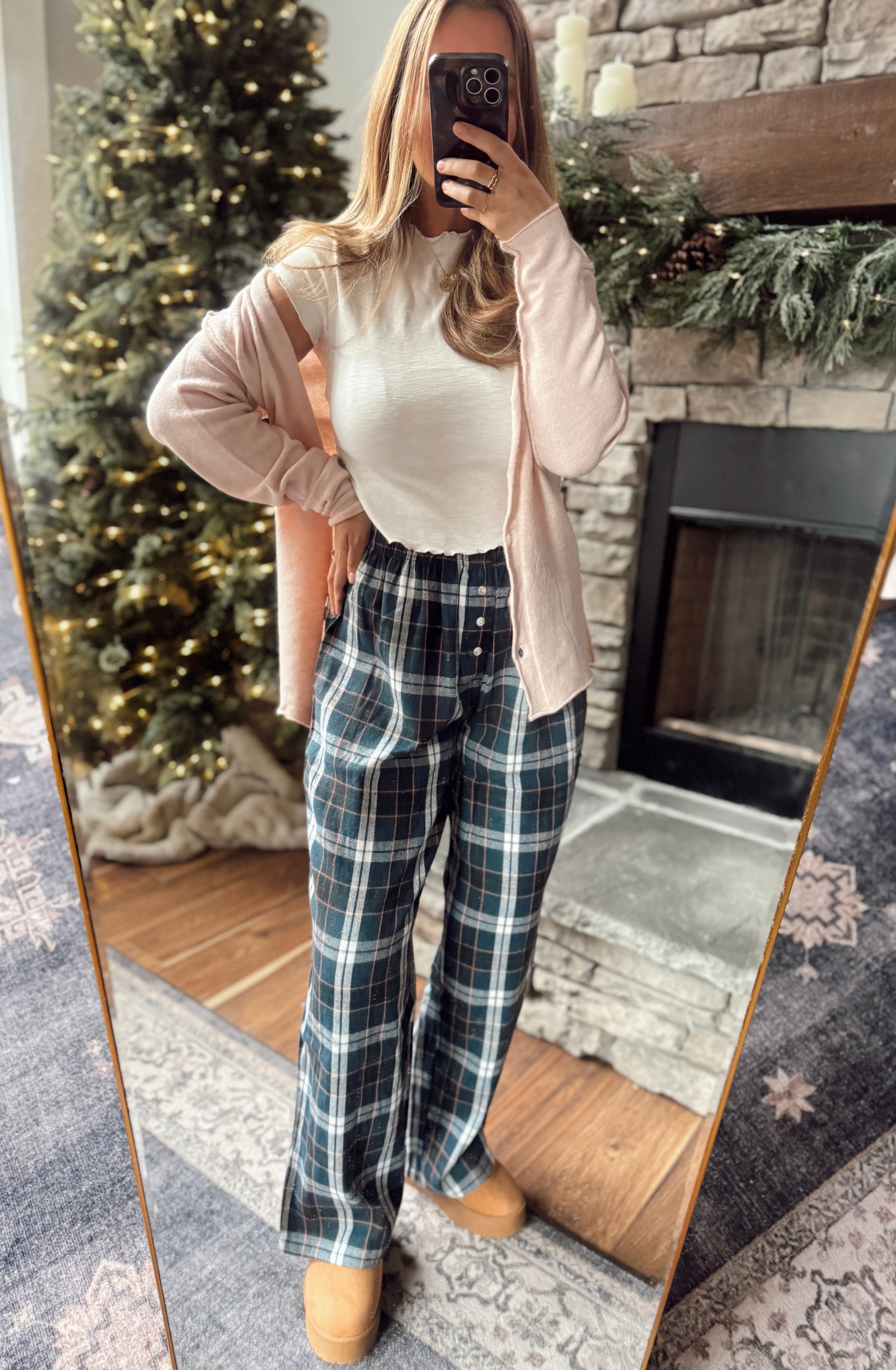 Add a touch of comfort and casual trendiness with these wide pants featuring a classic flannel pattern. The relaxed silhouette provides comfort without losing a stylish sense. Match them with a sophisticated turtleneck and loafers for a sophisticated look, or match them with a cropped T-shirt and sneakers for a more relaxed look. These pants are perfect for the changing seasons, and their natural style and functionality make them a must-have for your wardrobe.