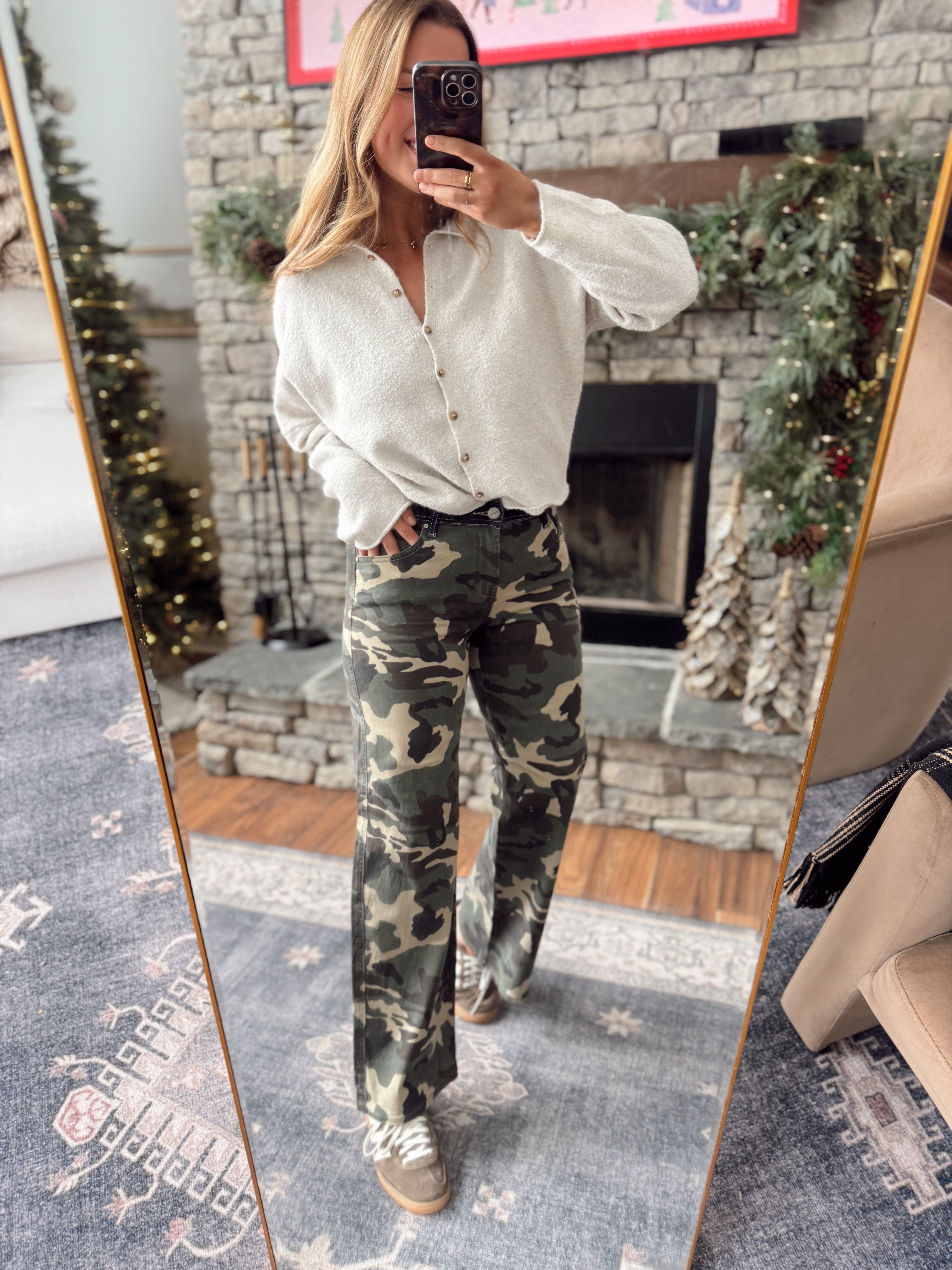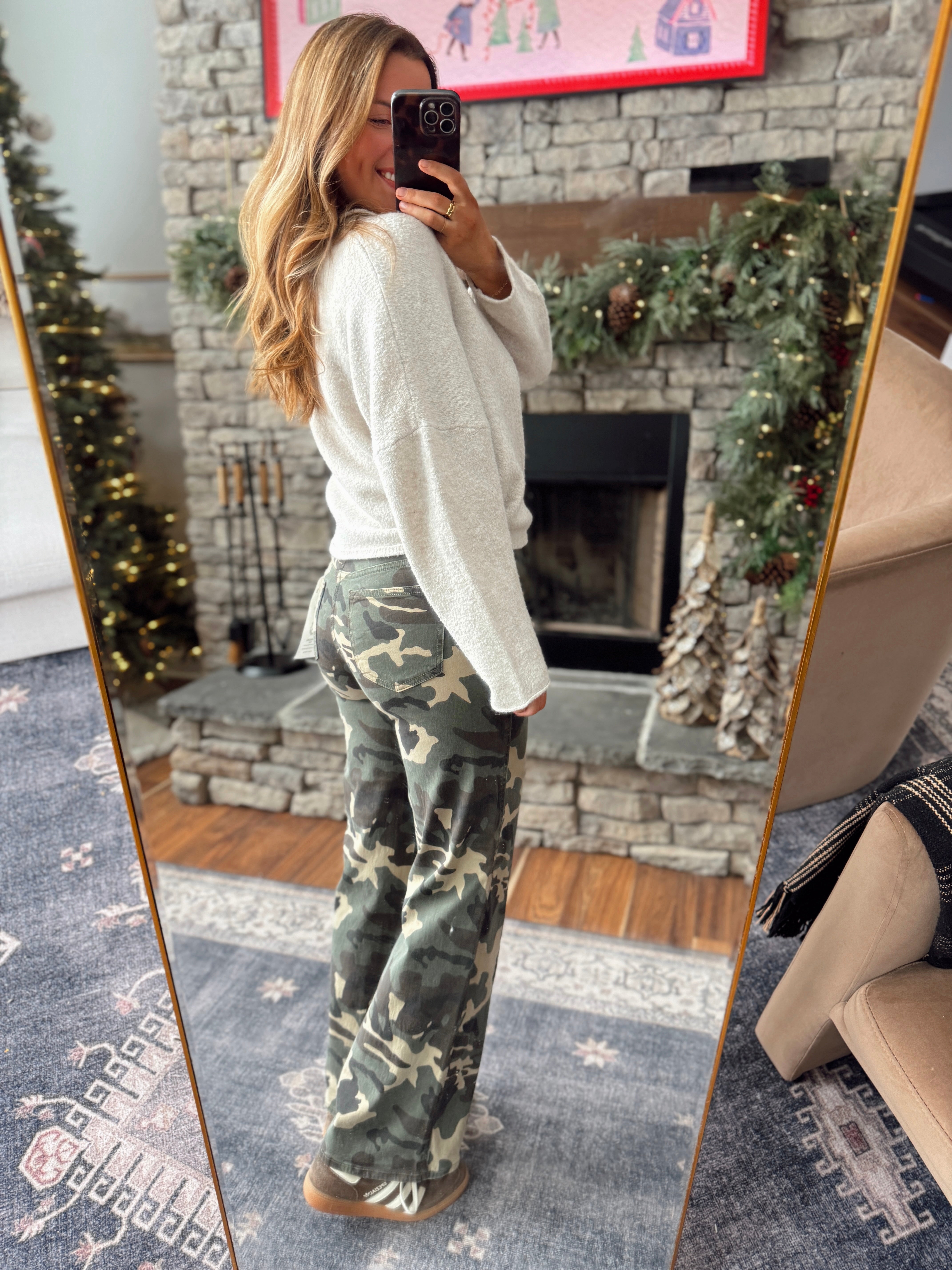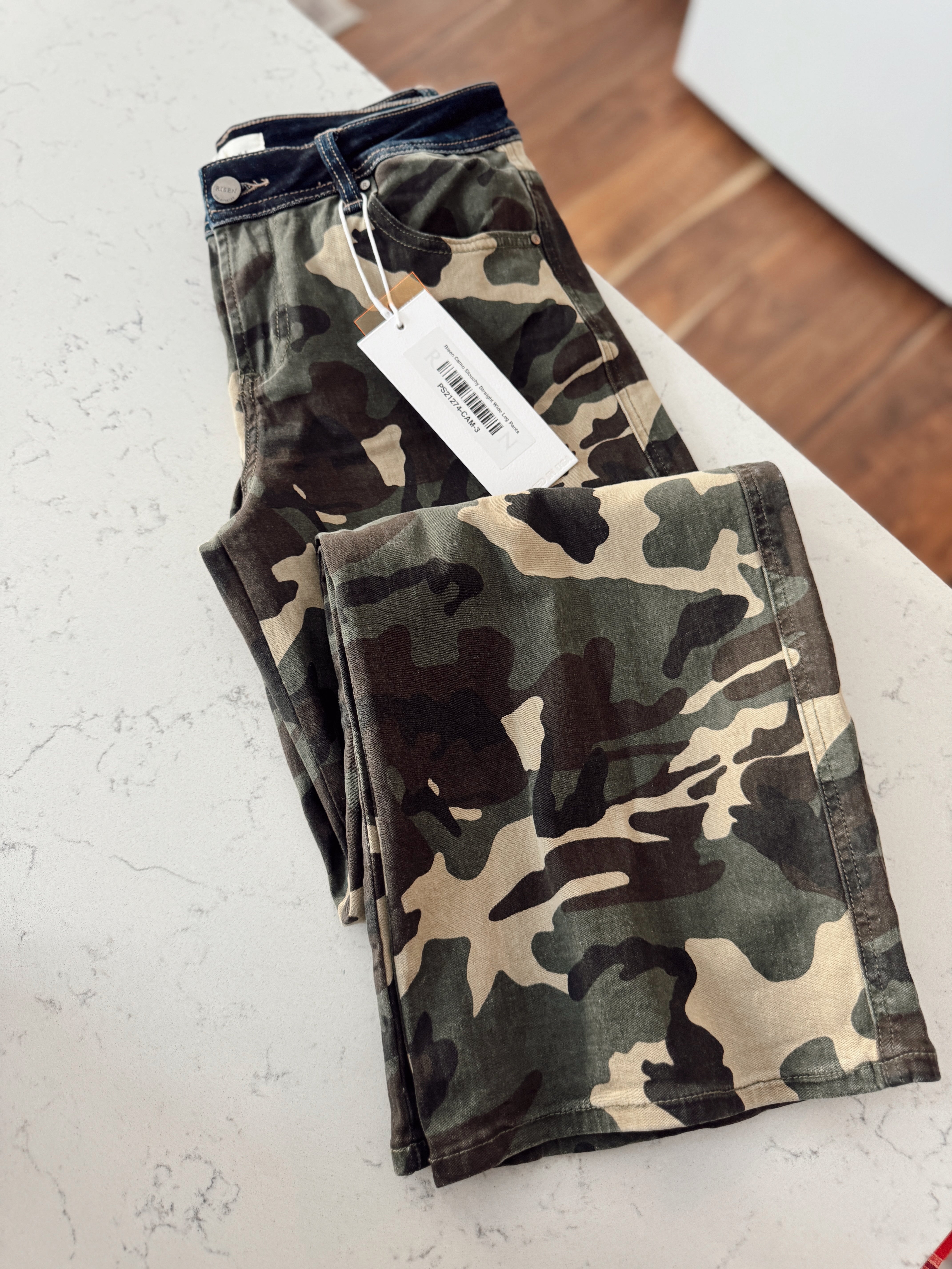 Risen Camo Slouchy Straight Wide Leg Pants