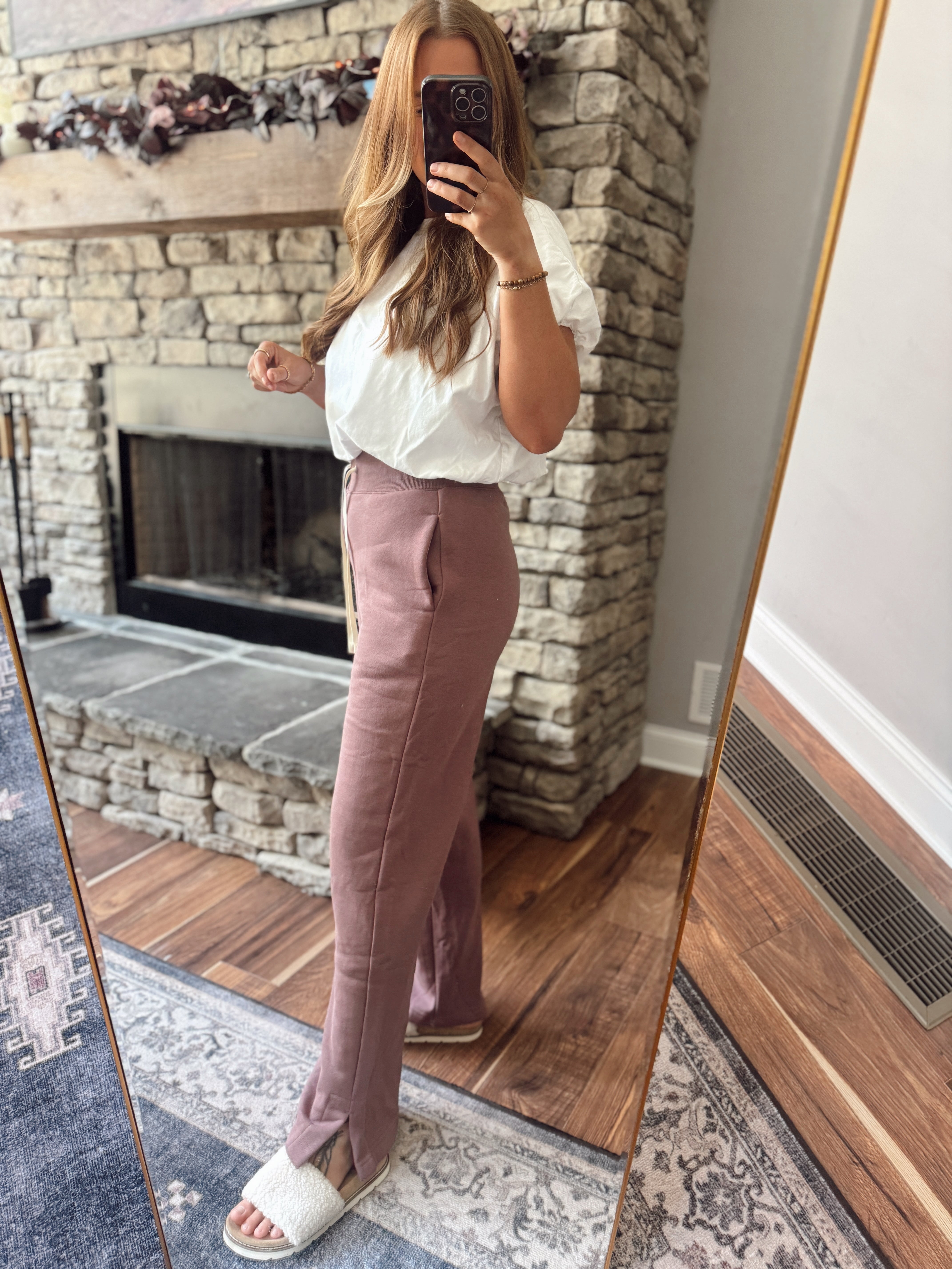 Cozy, stylish, and effortlessly relaxed, these high-waisted wide leg fleece pants are your go-to for lounging or casual outings. The high-rise waistband offers a flattering fit and all-day comfort, while the wide leg silhouette adds a modern, laid-back vibe. Crafted from soft, plush fleece, they keep you warm without sacrificing style. Pair them with a fitted top, hoodie, or sweatshirt for an easy, chic look that’s perfect from home to the streets.