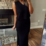 Luella Black Knit Sleeveless V-neck Tank & Maxi Skirt Set