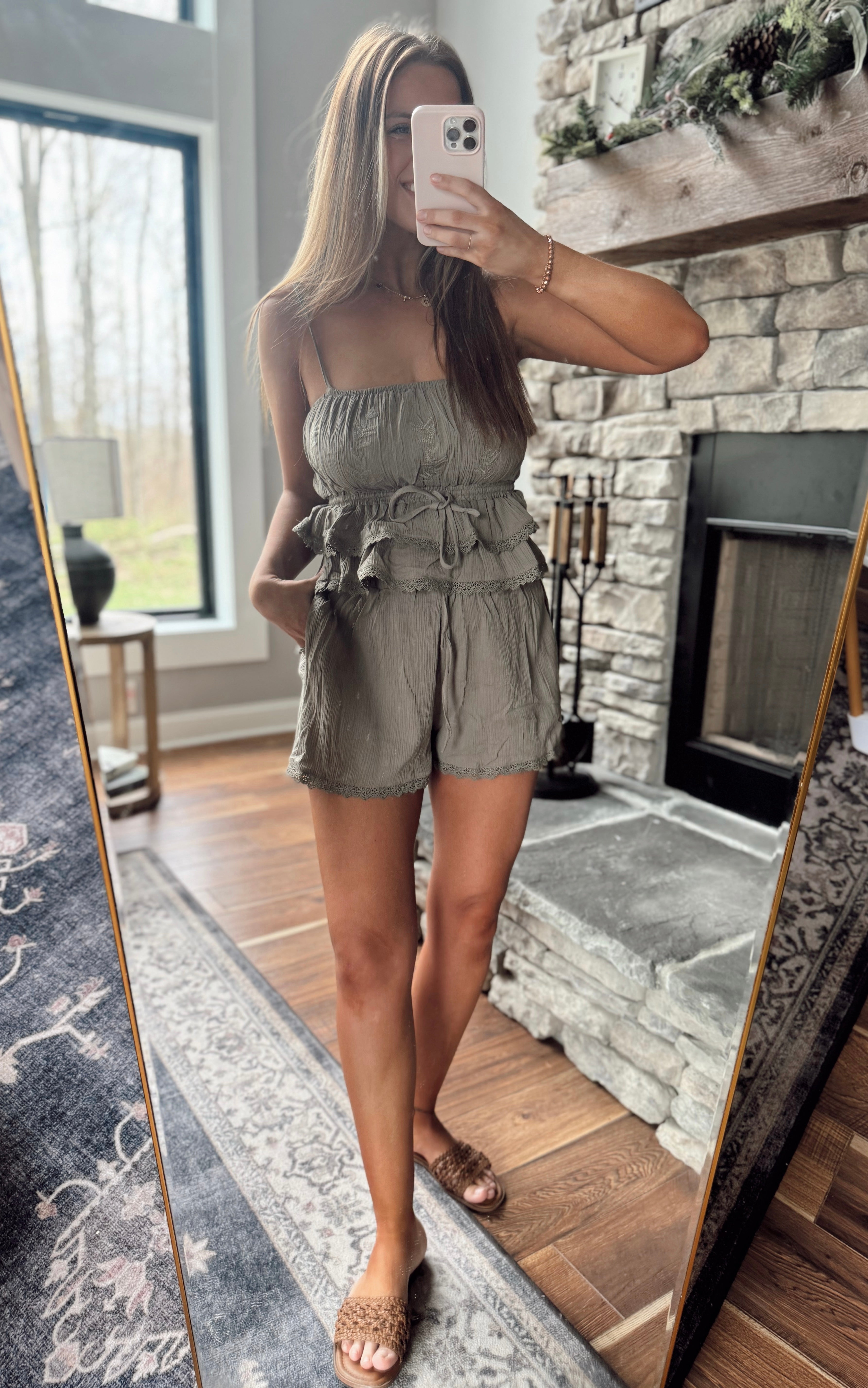 Olive Edit Embroidery Cami Top & Shorts Set