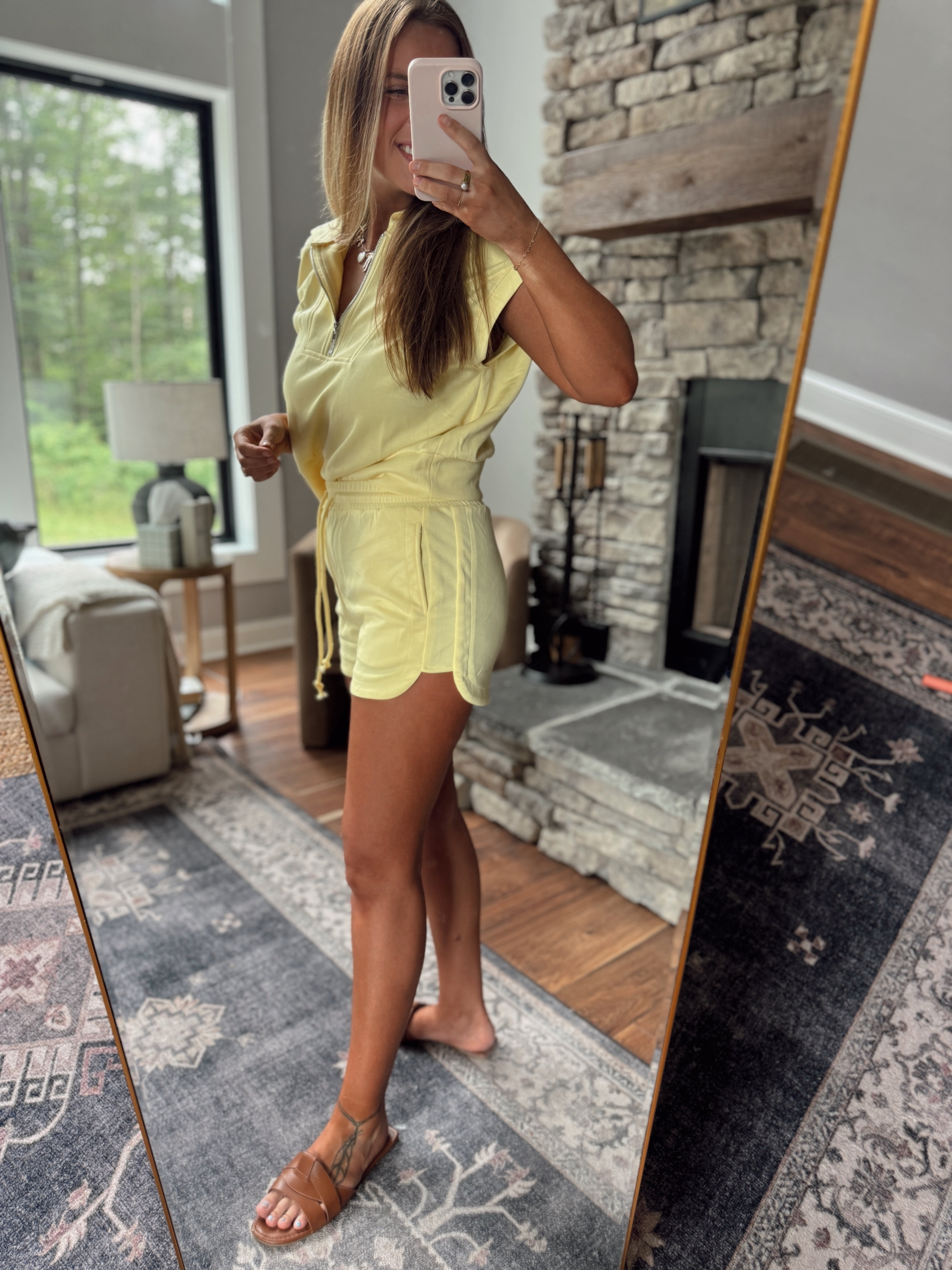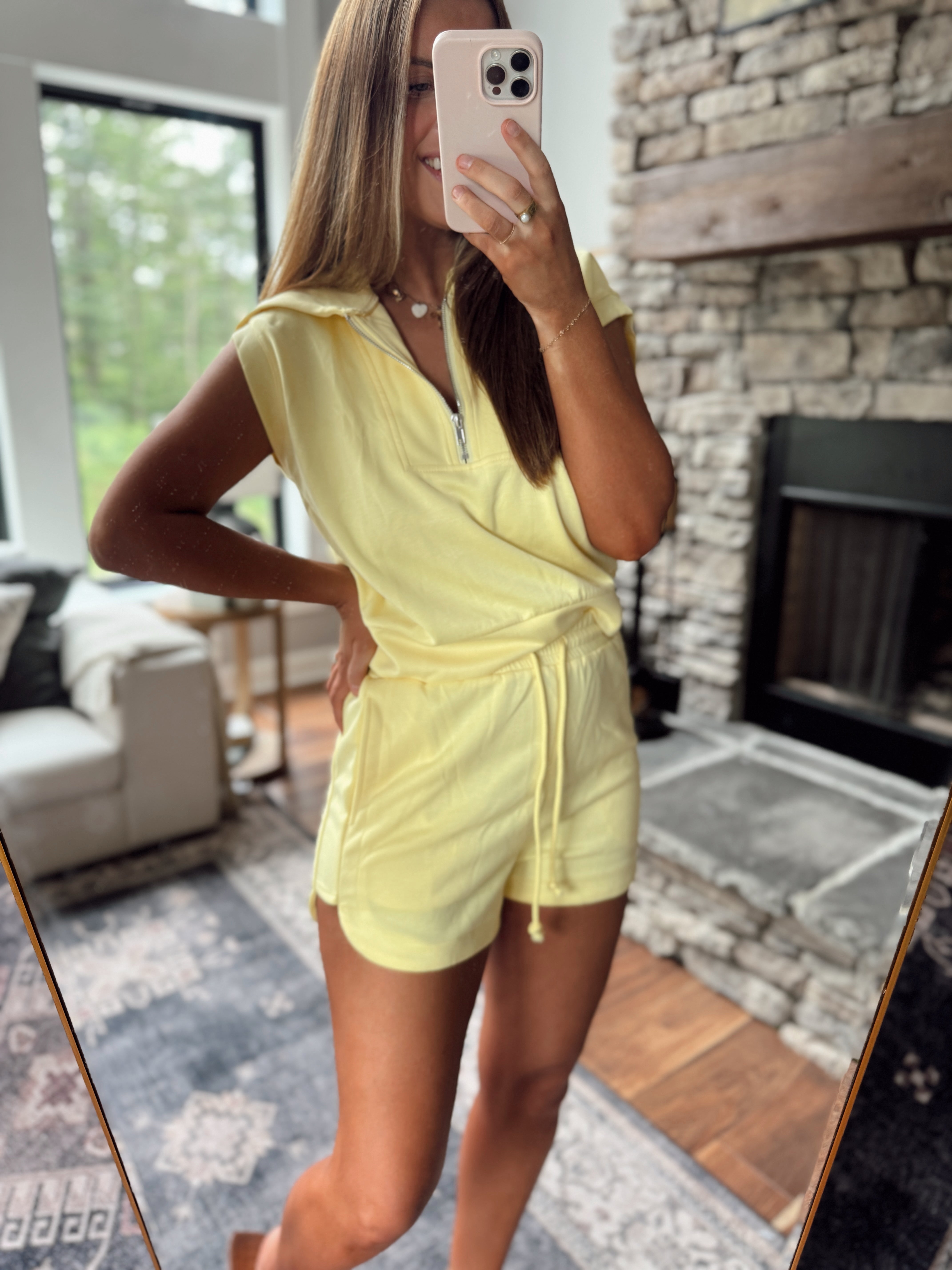 Light Yellow Blake Half Zip Cropped Sweatshirt and Shorts Set