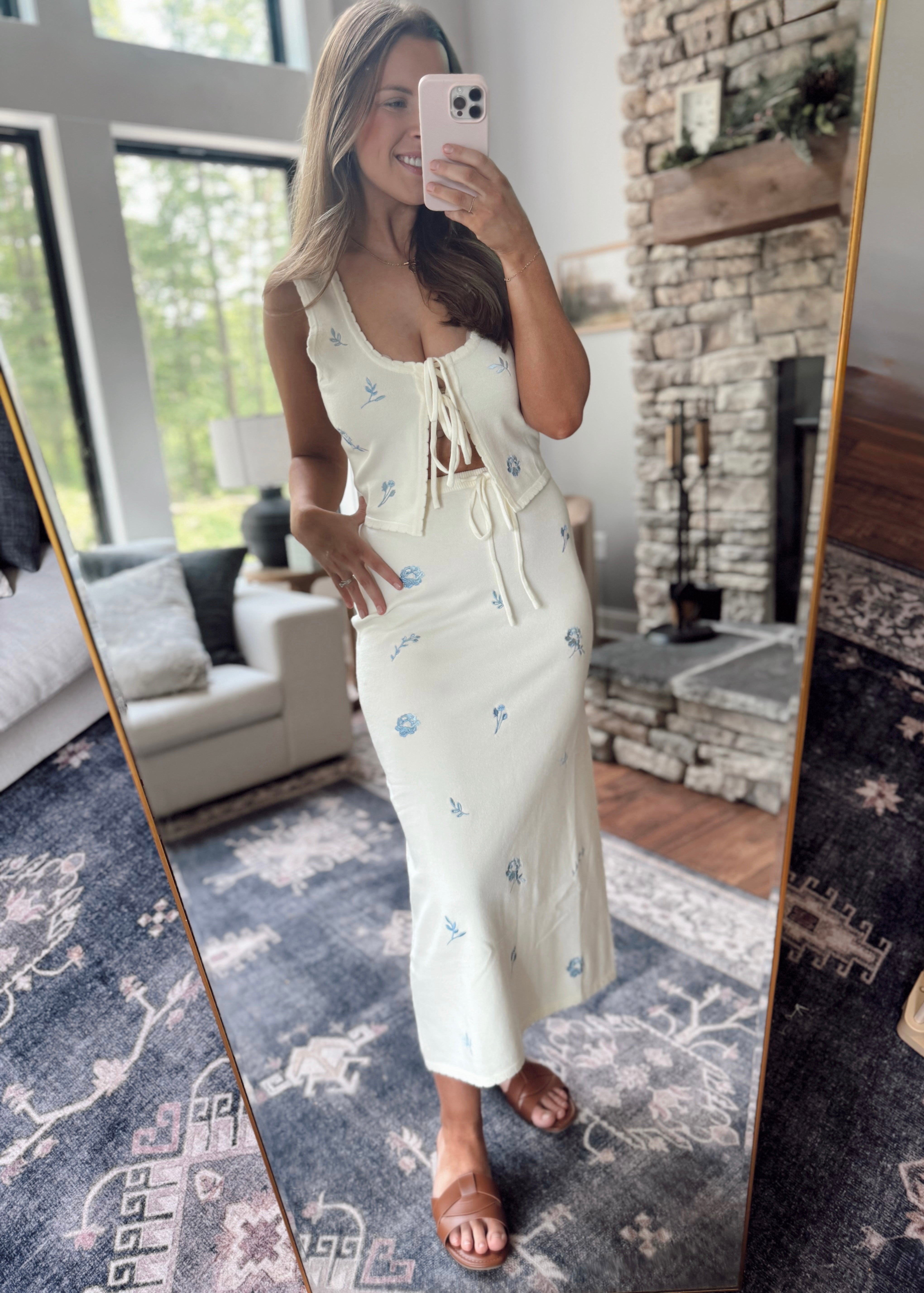 Cream Tie & Bloom Tank and Midi Skirt Set