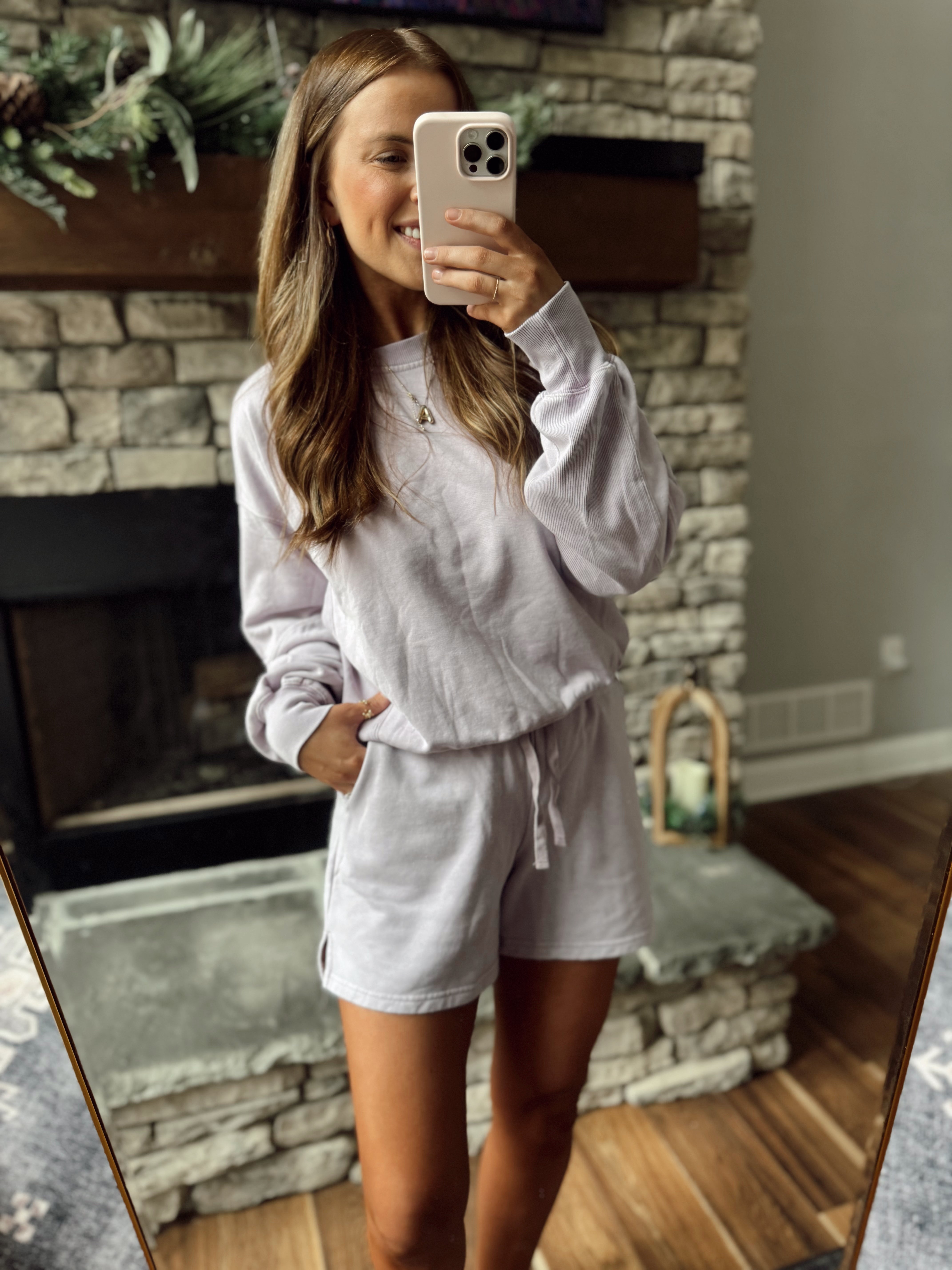 Dusty Lavender French Terry Short & Long Sleeve Top Set