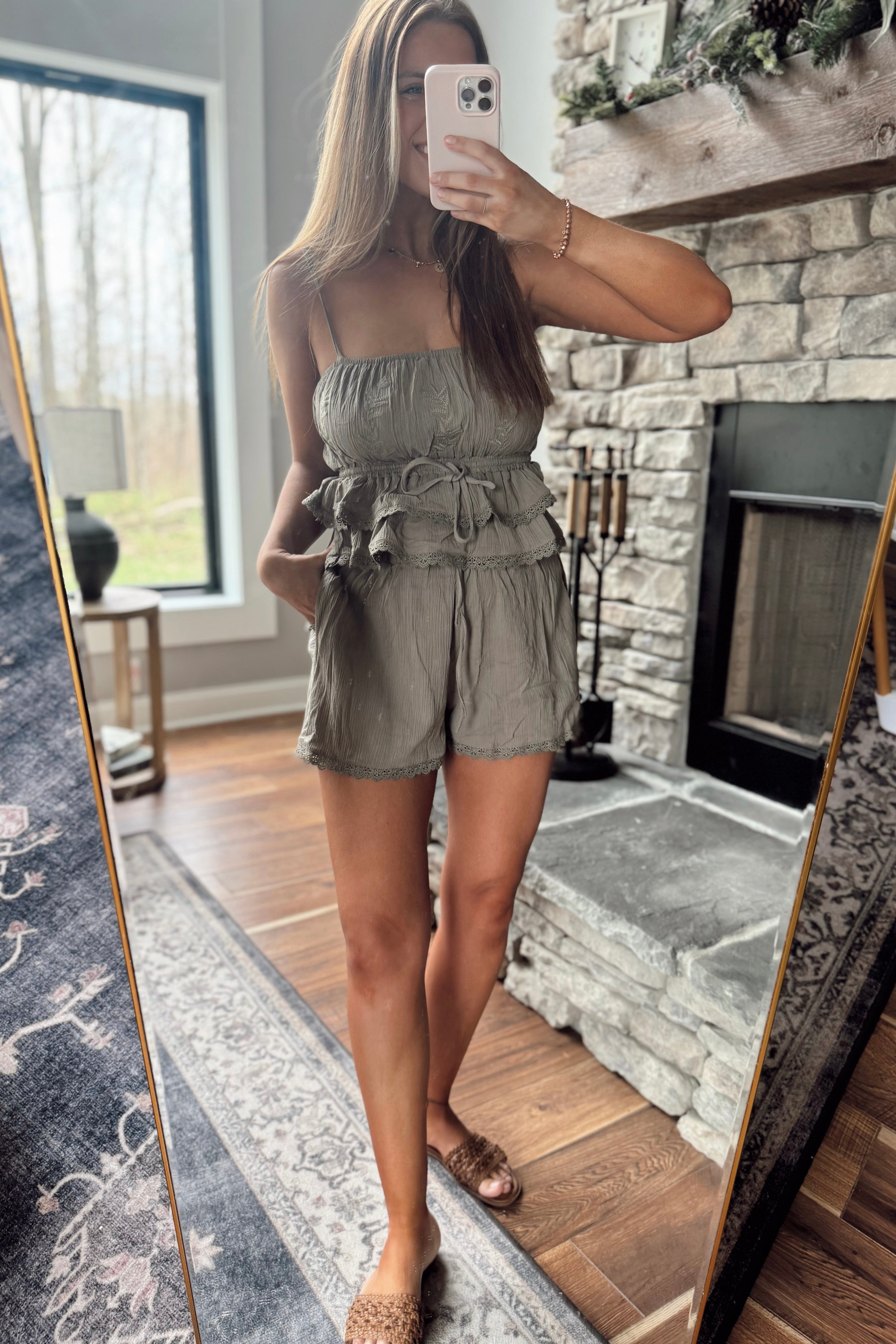 Briella Cream Button Up Sleeveless Crochet Top & Short Set