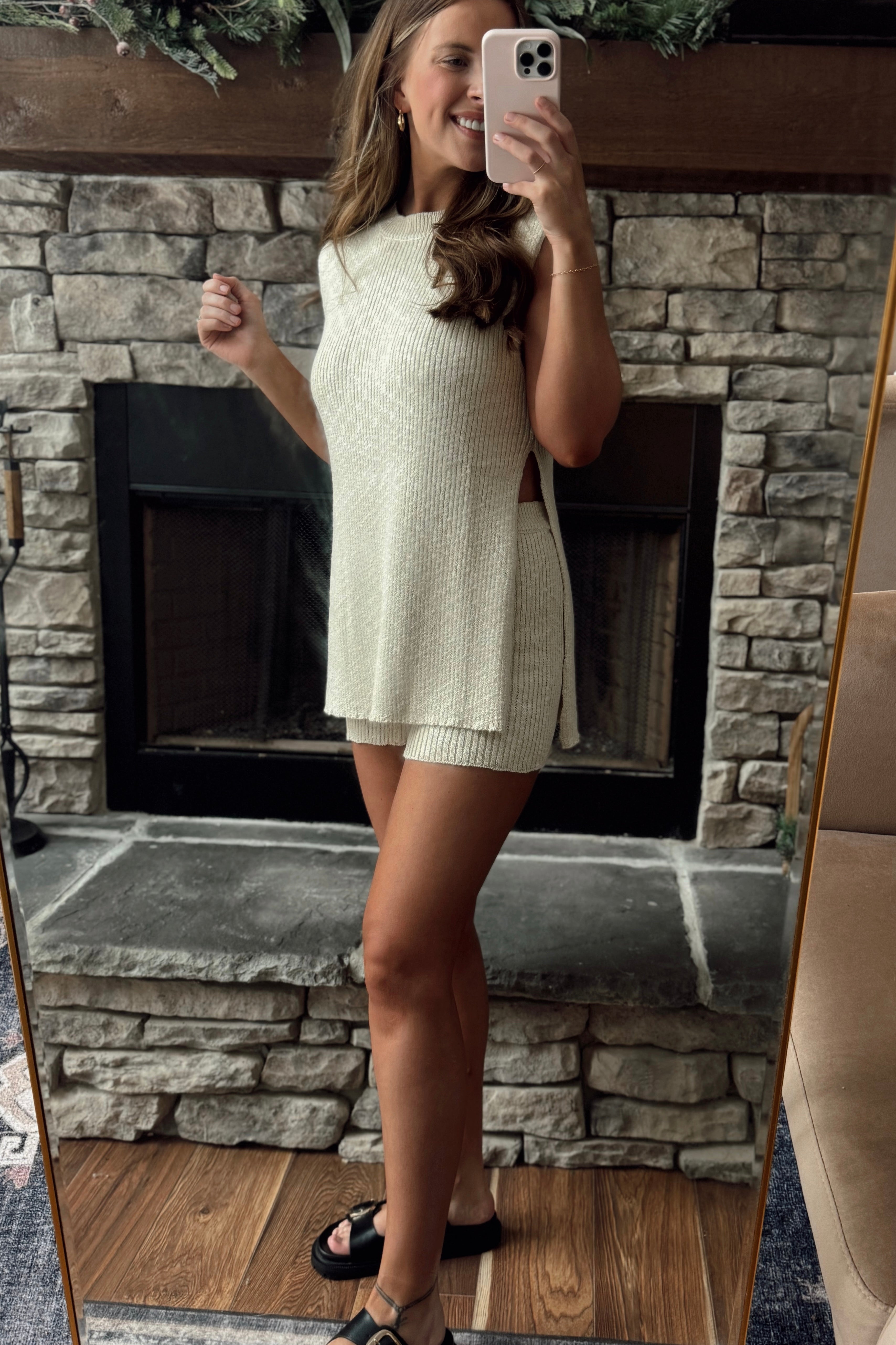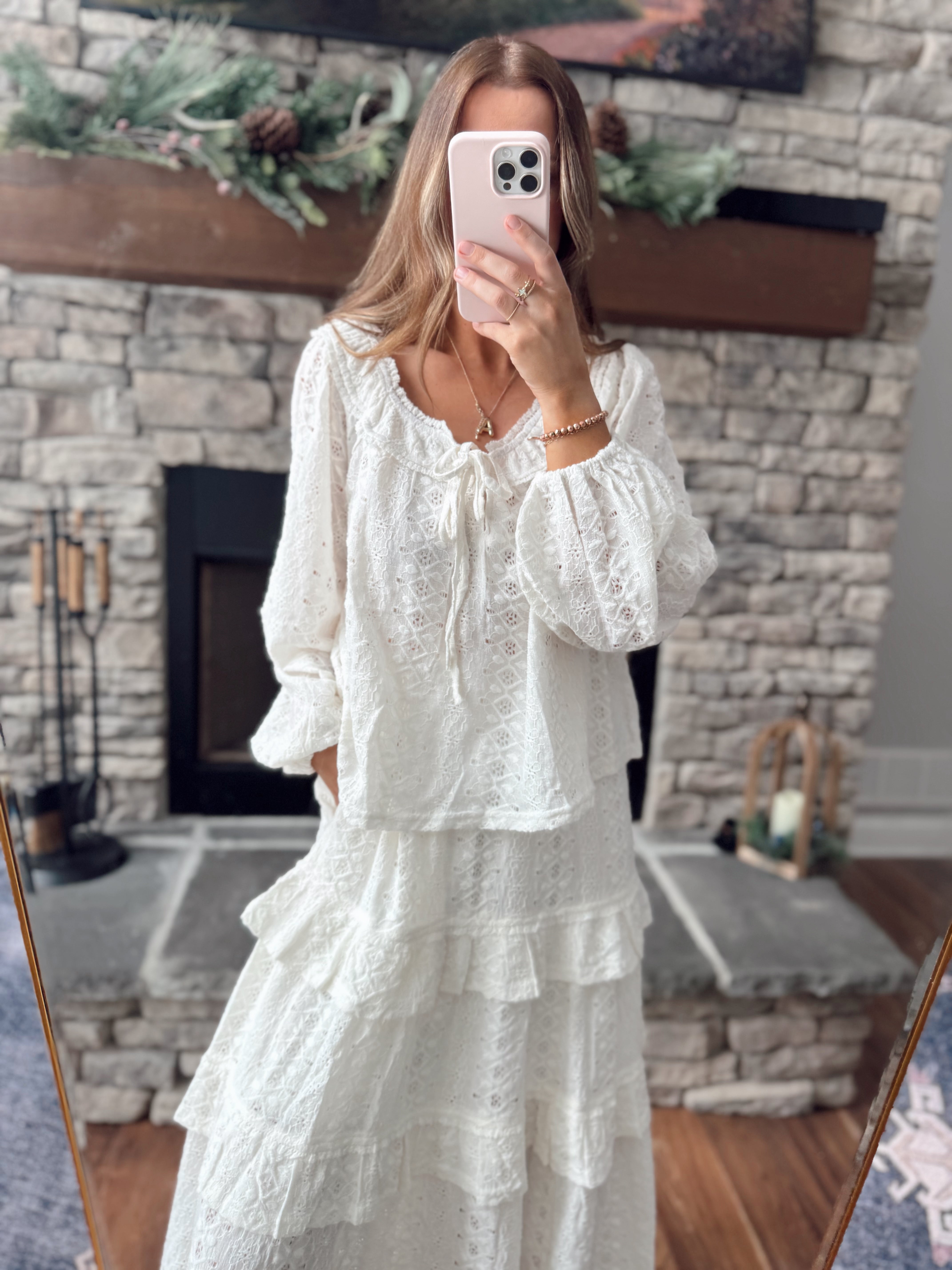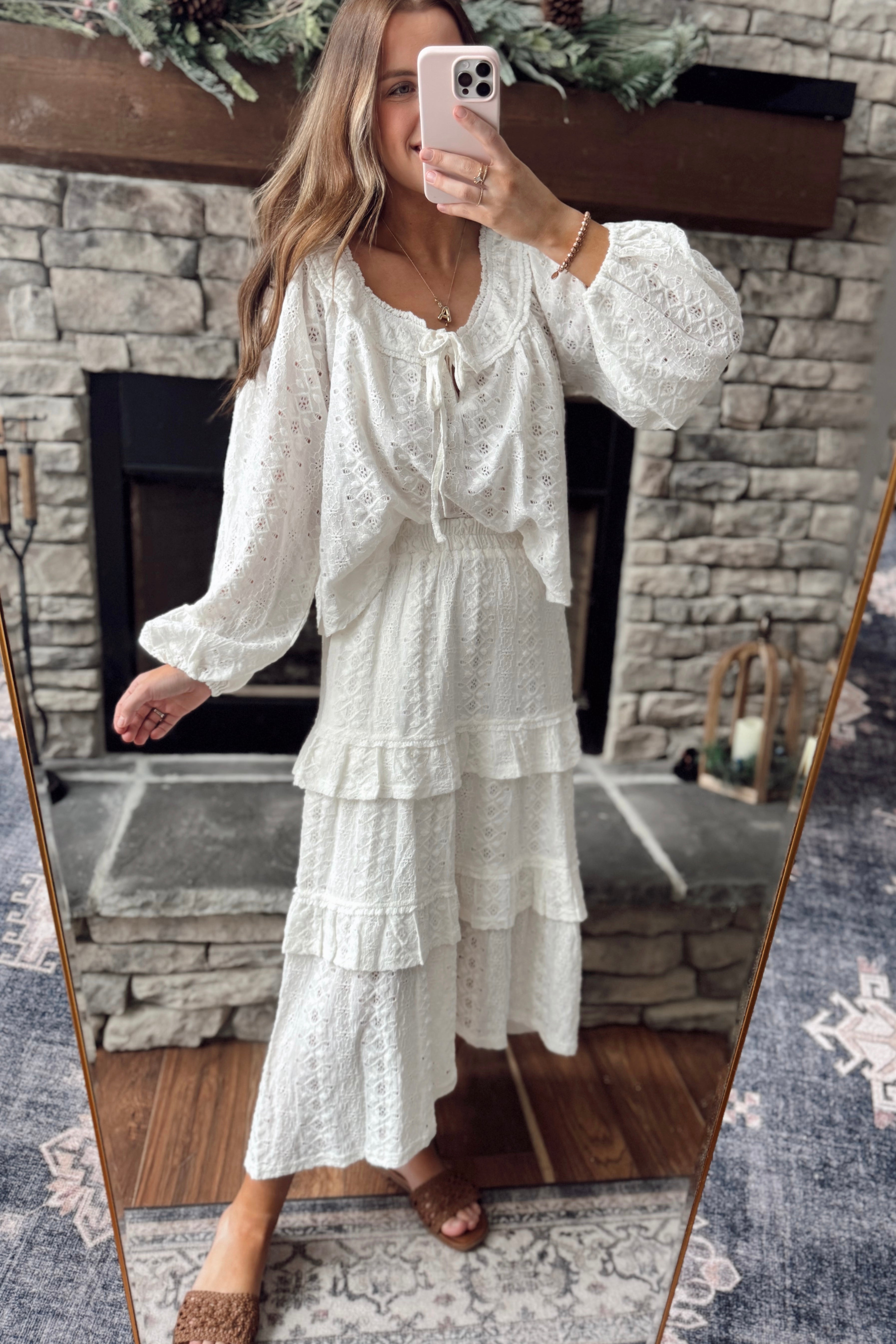 Dream Cream Pointelle Front Tie Top with Tiered Maxi Skirt Set