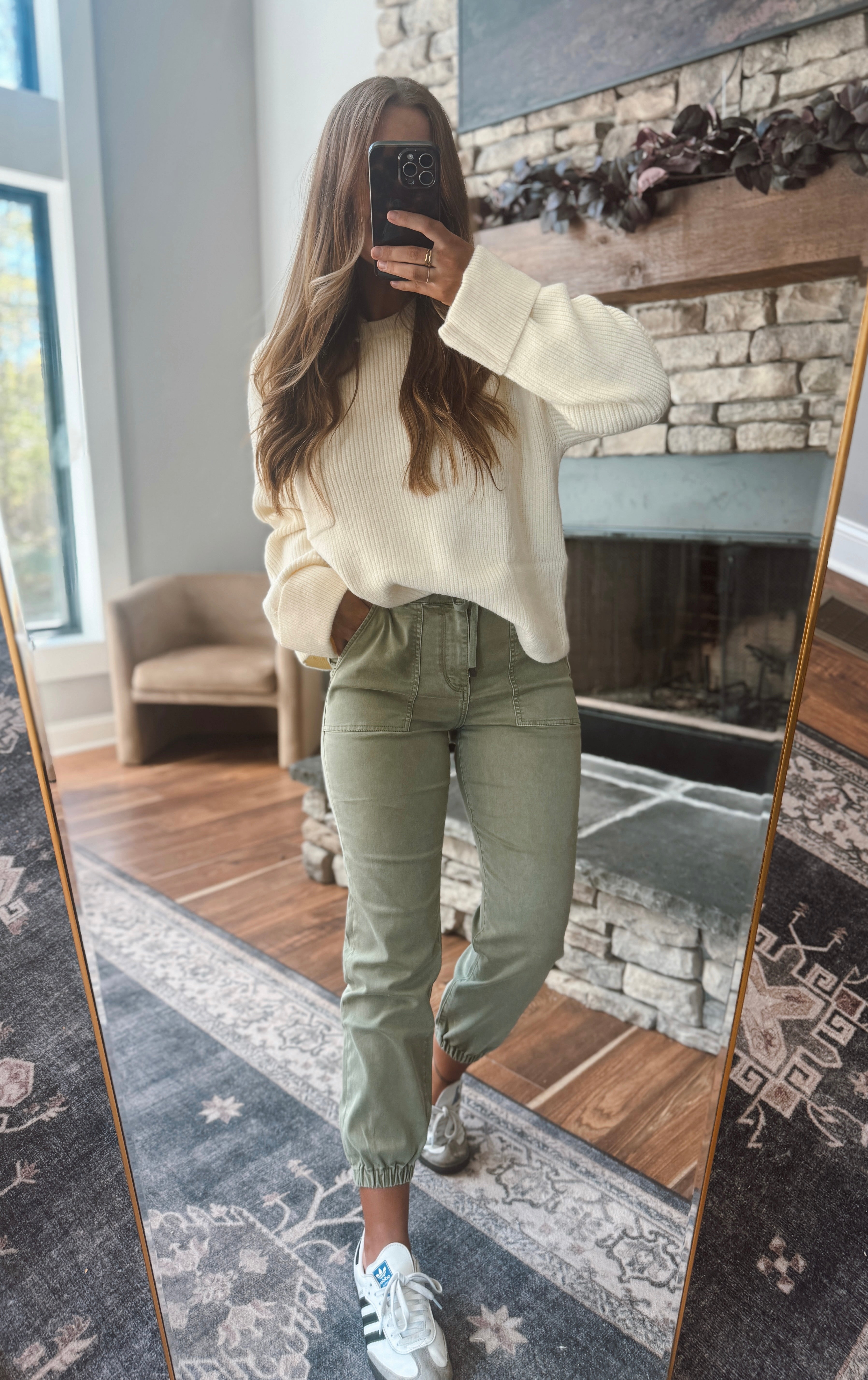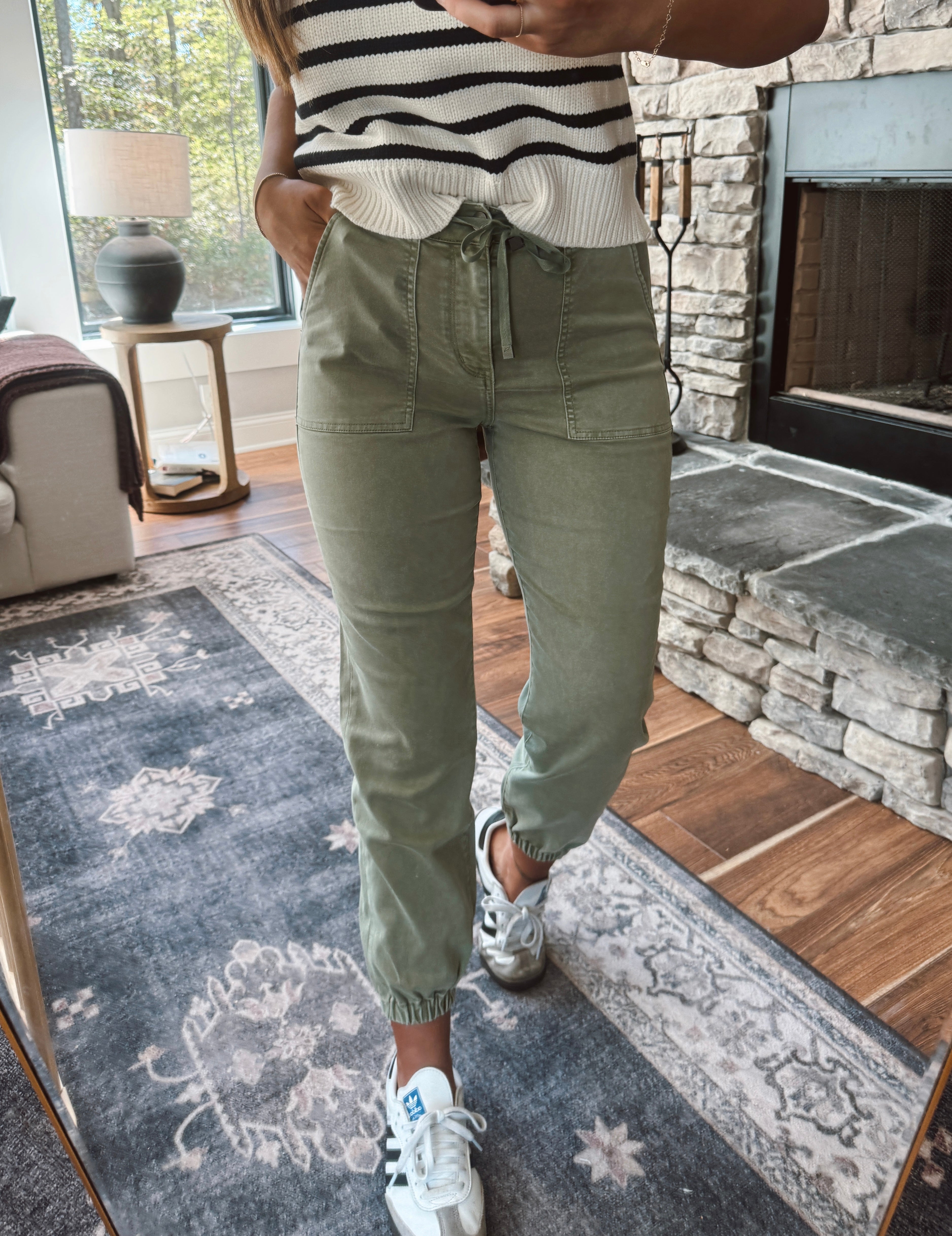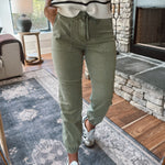 Get ready to lounge in style with our Mica Olive High Rise Joggers! Featuring a comfortable high-rise fit and trendy olive color, you'll be ready to relax with a touch of fashion. These joggers are perfect for a casual day out or a cozy night in.