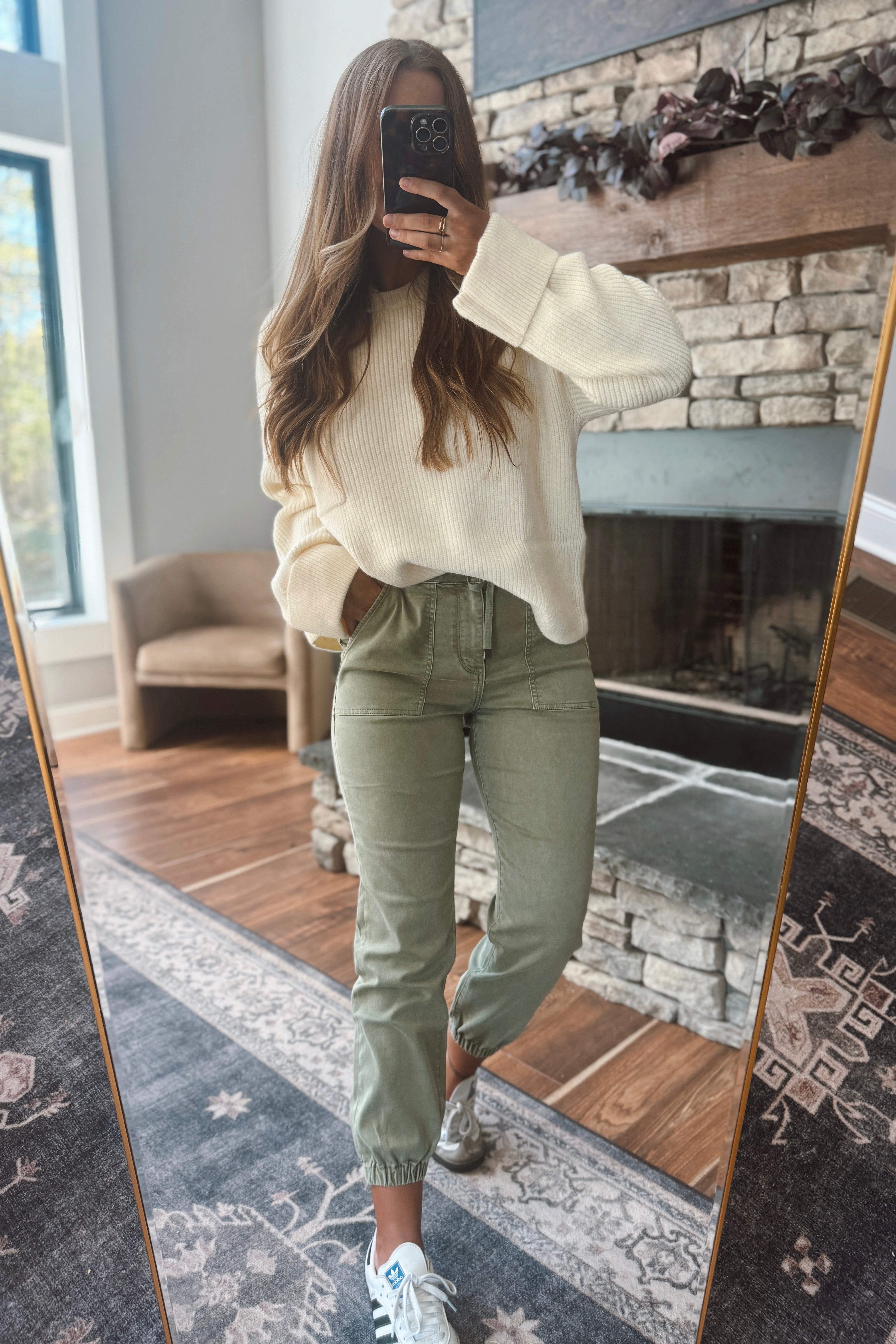 Risen Moss HR Crop Wide Patch Pocket Corduroy Pants