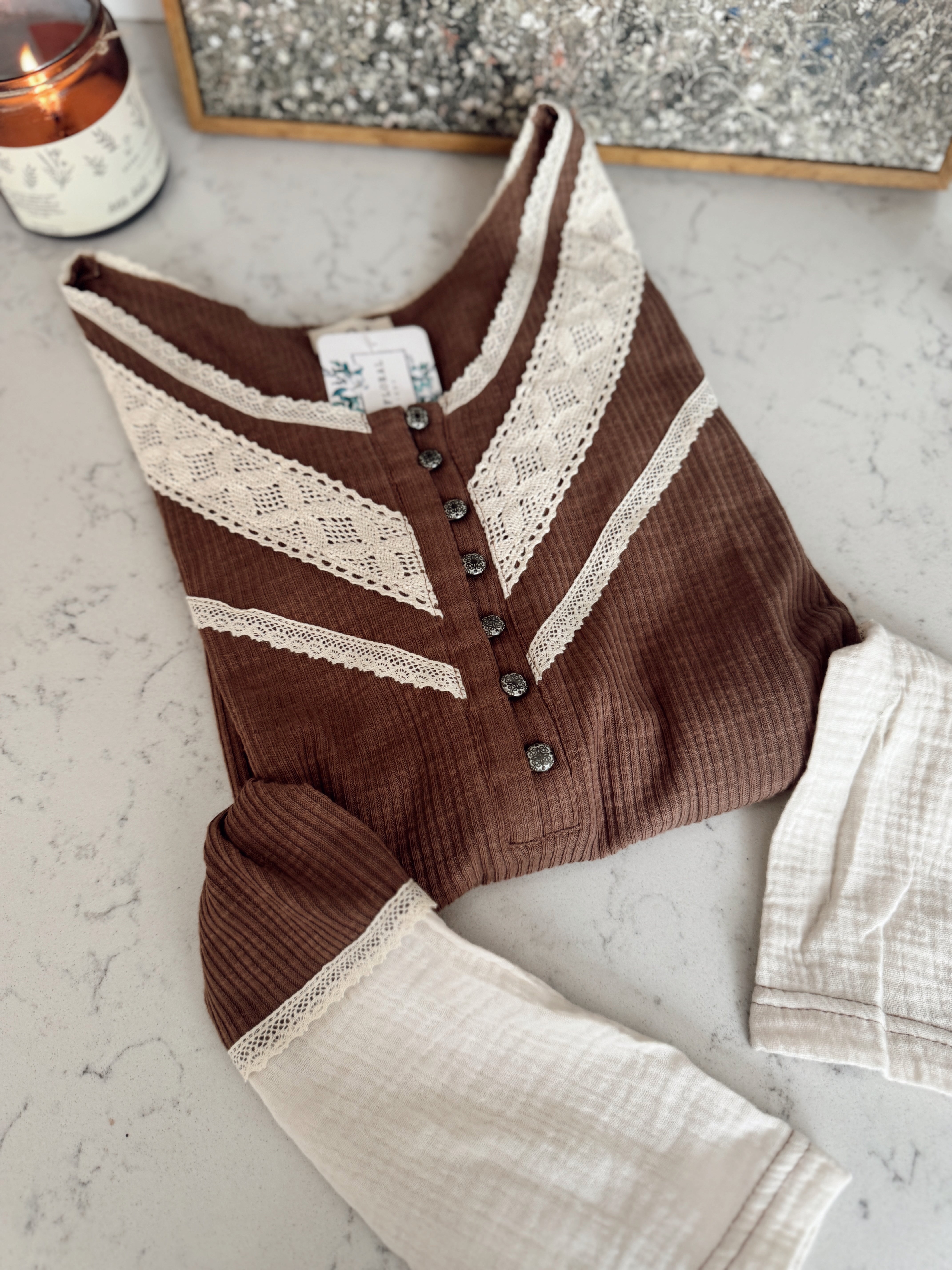 This top is perfect for any occasion. The versatile color ensures it'll match effortlessly with anything in your closet. Plus, the delicate lace and button details and add a touch of unique charm that sets it apart.