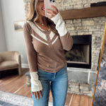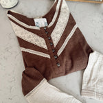 Chocolate Gauze Detail Ribbed Long Sleeve