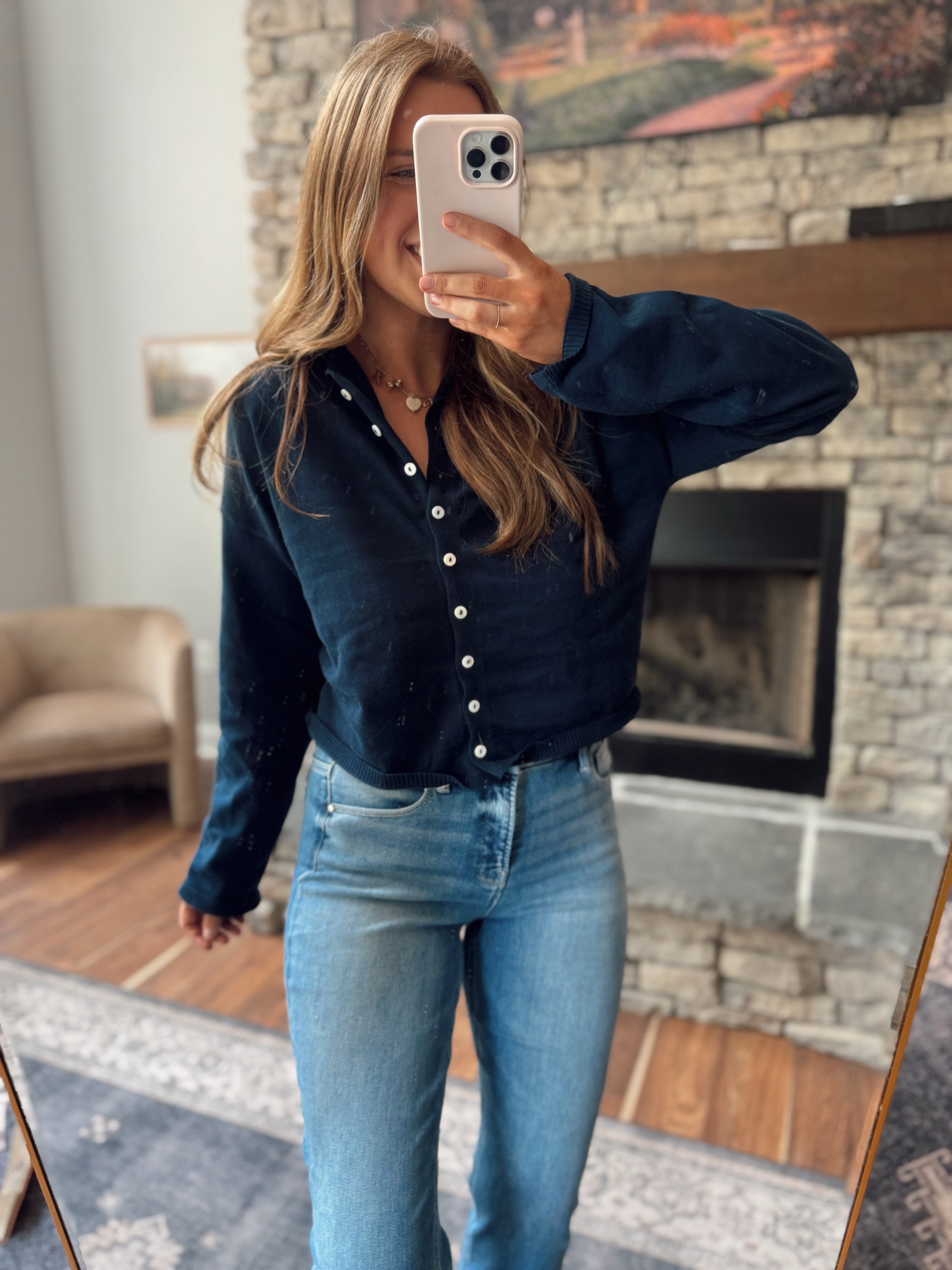THE FALL BASIC EVERYONE NEEDS! This cardigan is a testament to everyday comfort and style. Neckline that adds a touch of sophistication to your casual look. The long sleeves make it perfect for pre-fall lounging or a cozy gathering. Enjoy the comfort and ease of this casual-cool garment during life's little moments.