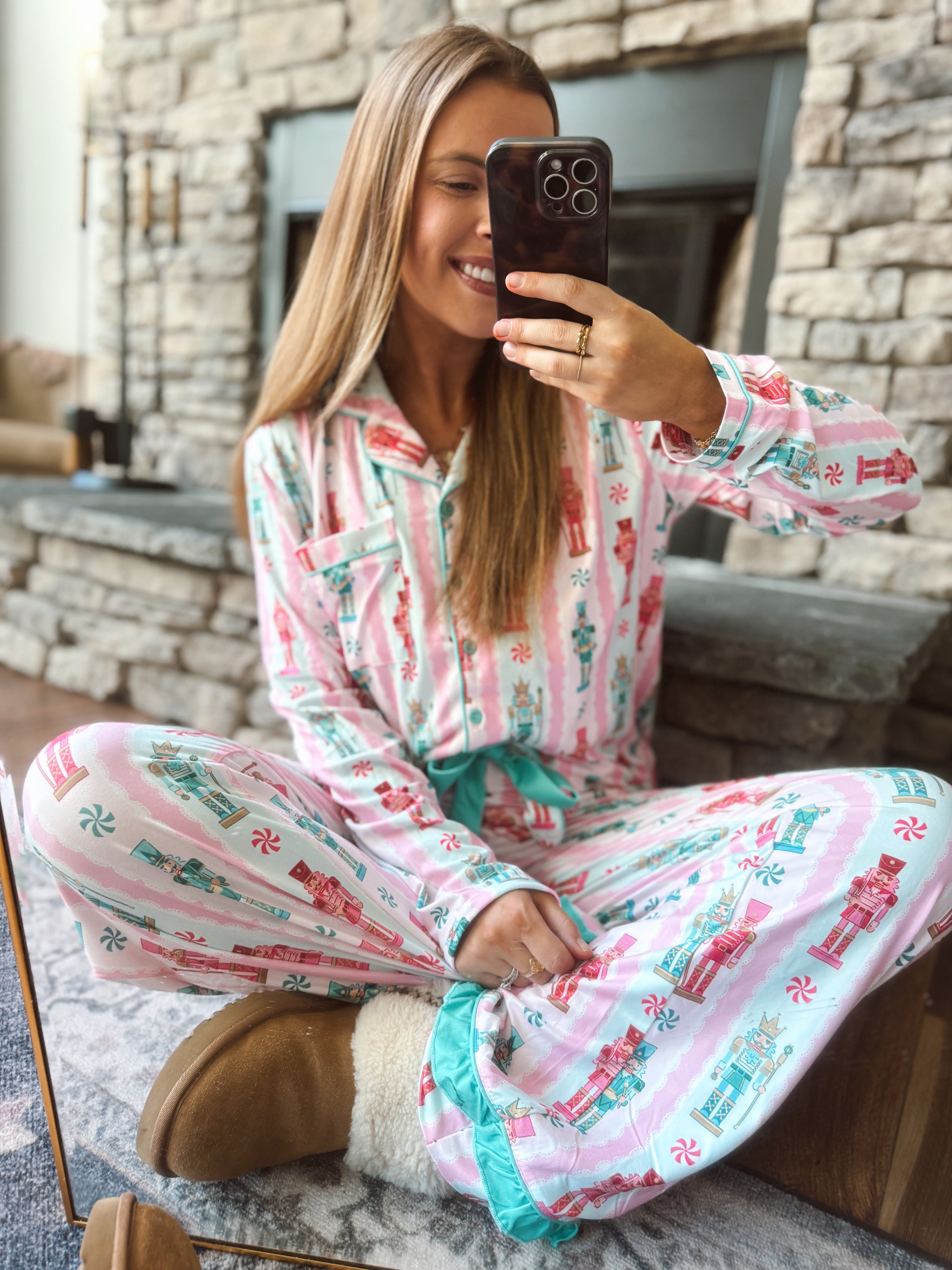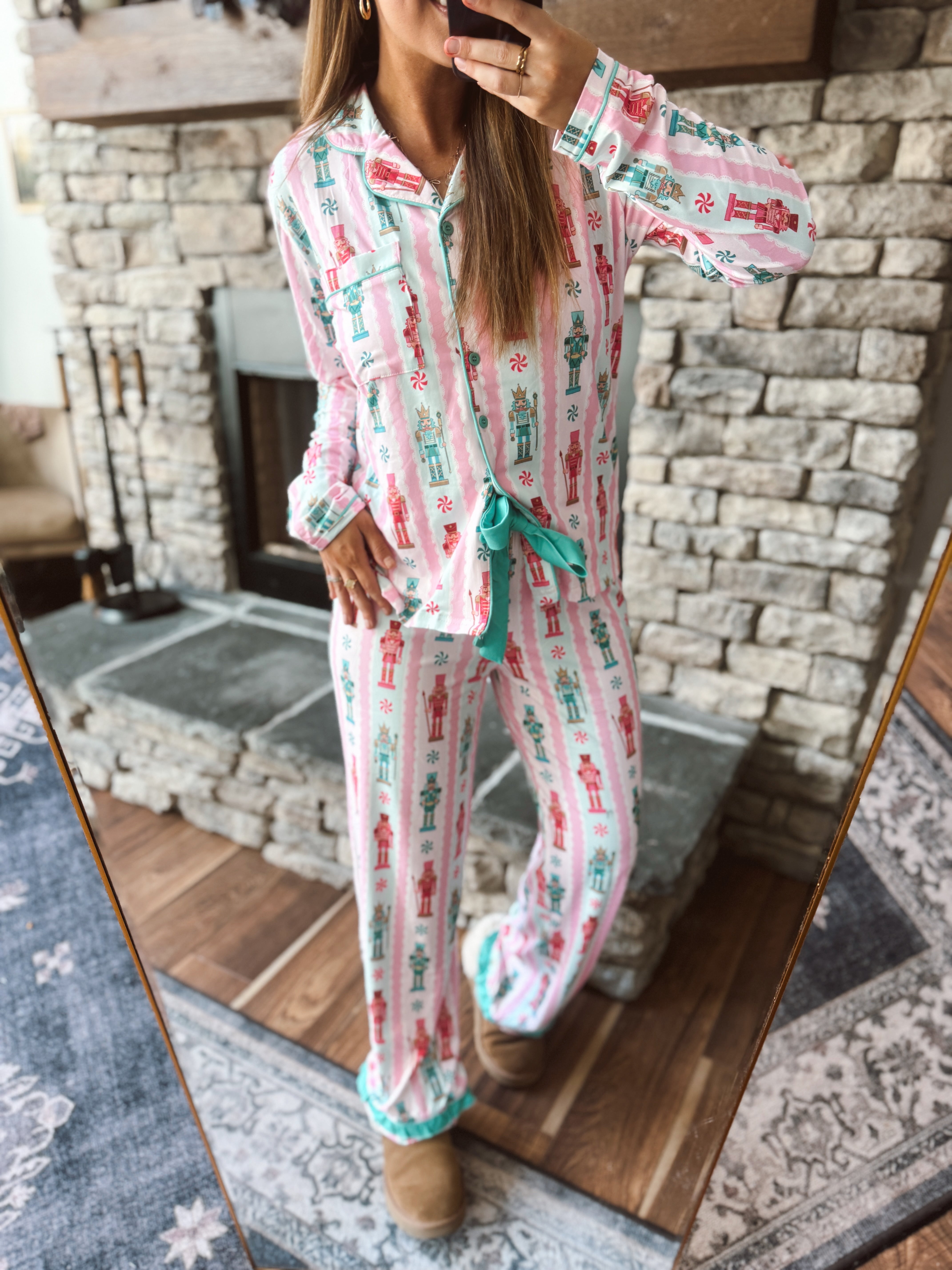 These are the Christmas PJs you’ll reach for all season long — soft, stretchy, and covered in the cutest nutcracker + peppermint print. Perfect for holiday movie marathons, matching family photos, or Christmas morning magic.
