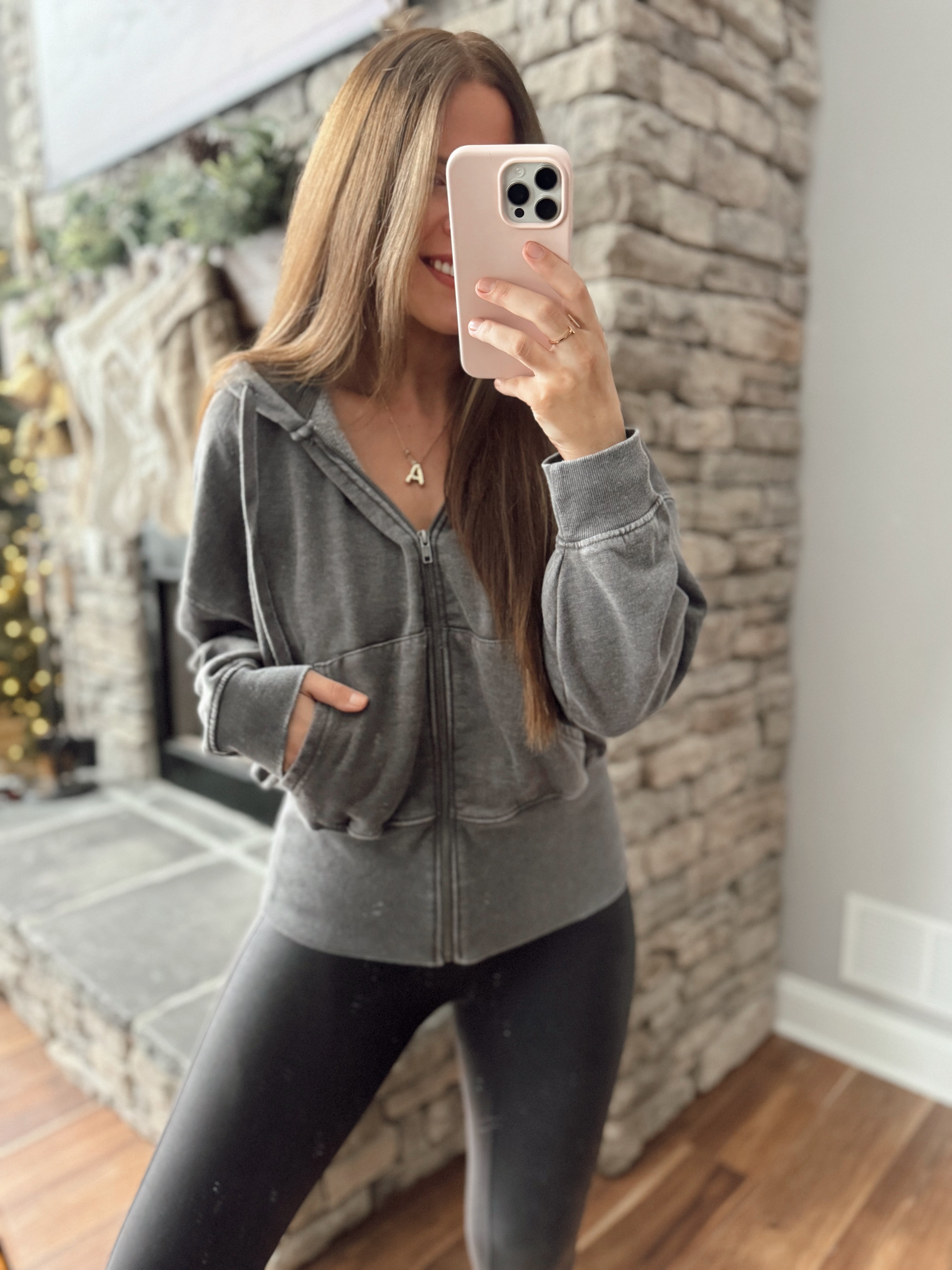 Meet your new go-to layer: a hooded sweatshirt jacket that’s equal parts cozy and cool. The wide hem cuff and tapered sleeves give it a flattering, modern shape, while the front pockets are perfect for stashing your essentials (or just keeping your hands warm). Whether you’re running errands, grabbing coffee, or lounging at home, this jacket adds effortless style and comfort to every moment.