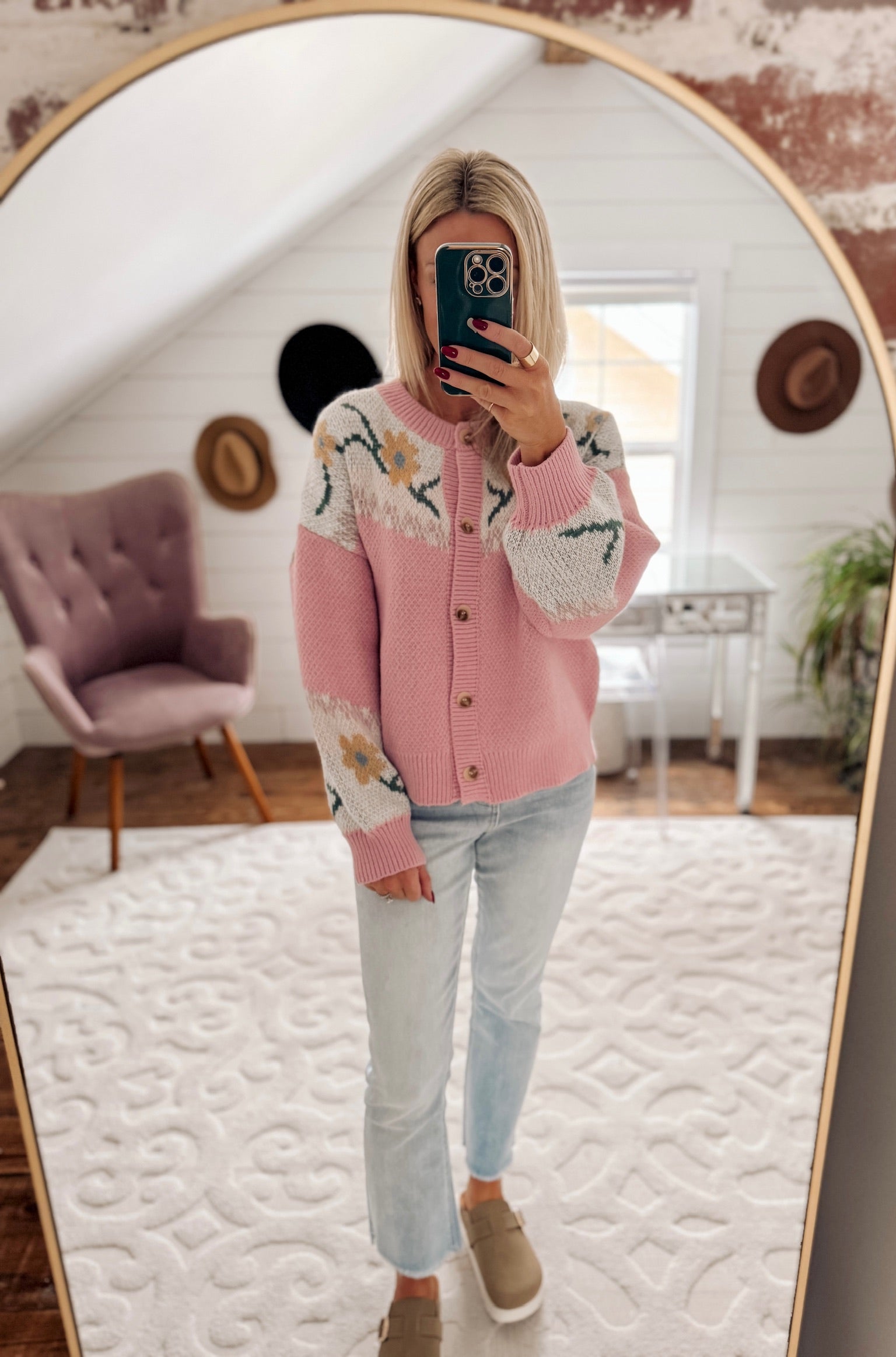 Your Grandmas Favorite Pink Floral Cardi IN STORE