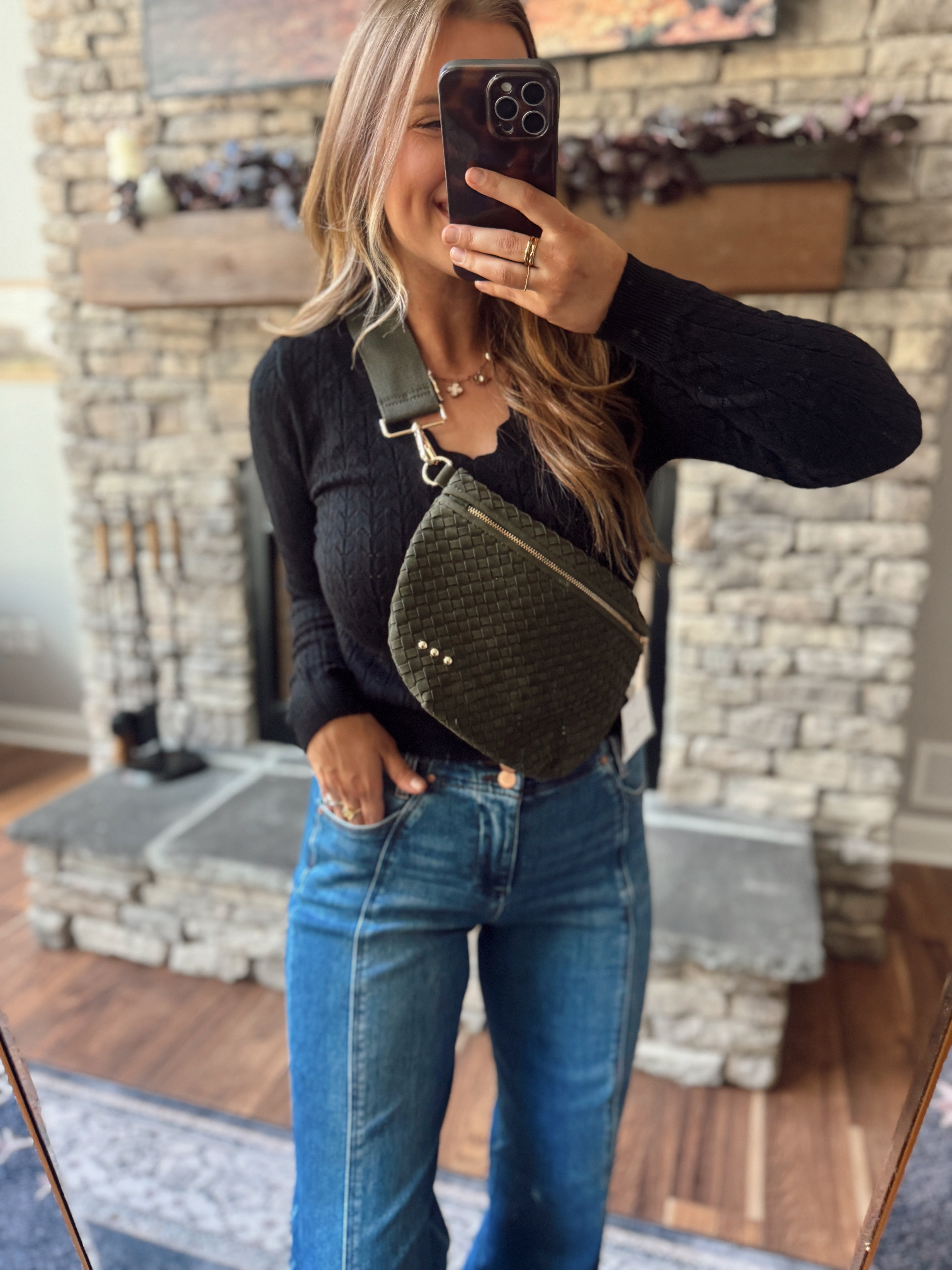 Suede Olive Westly Woven Bum Bag