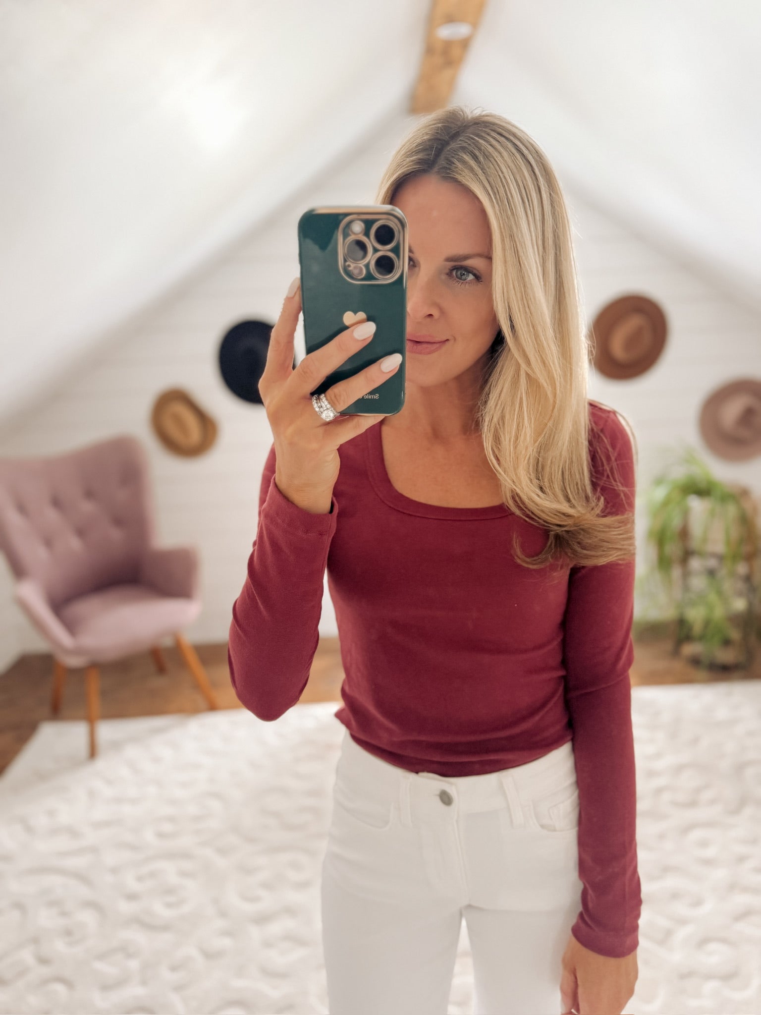 Burgundy Closet Staple Scoop Neck Long Sleeve IN STORE