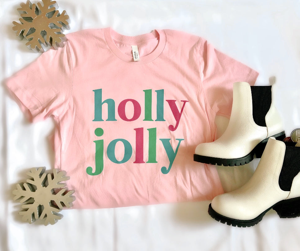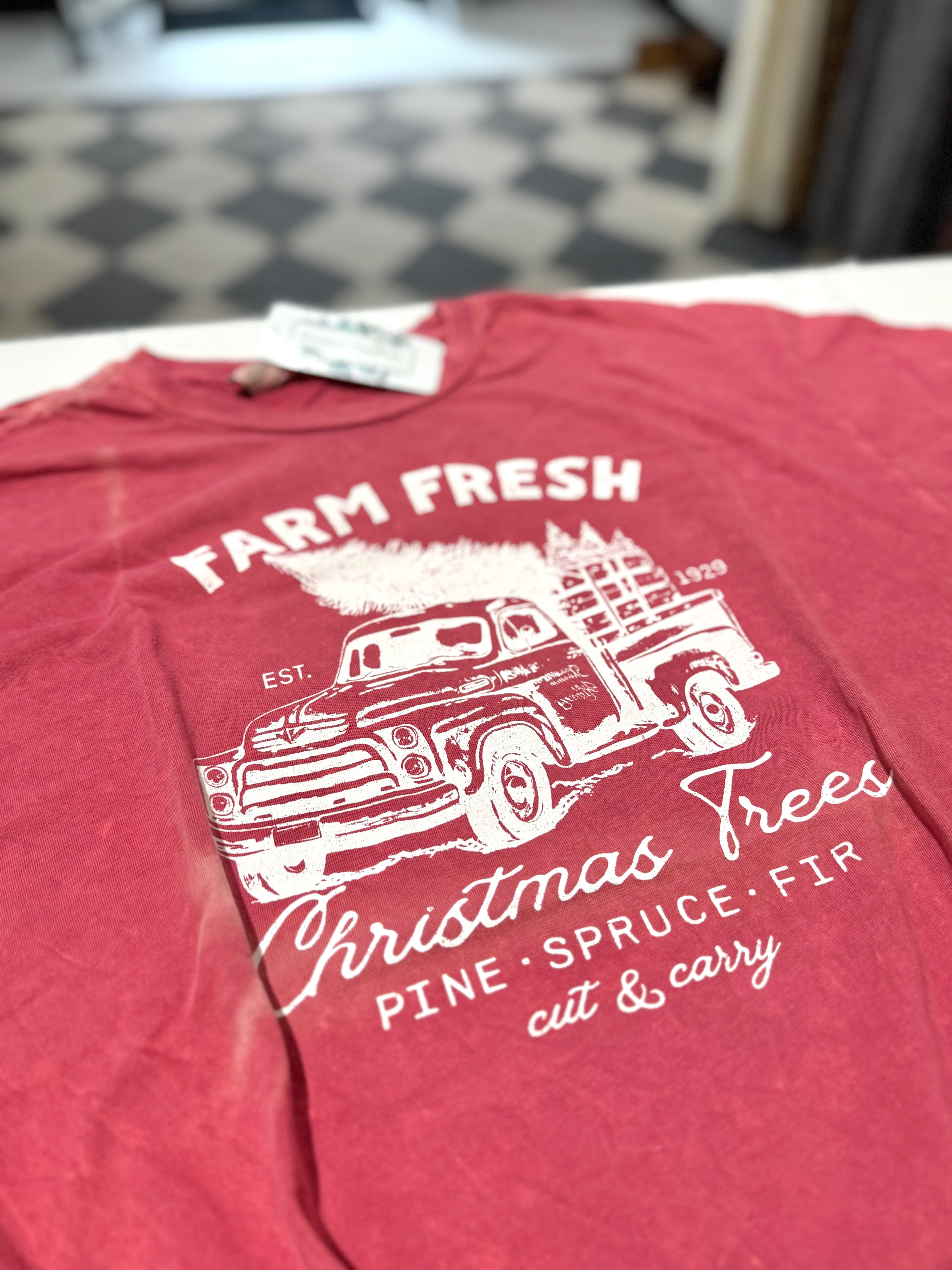 Light Pink Farm Fresh Christmas Glitter Graphic Tee