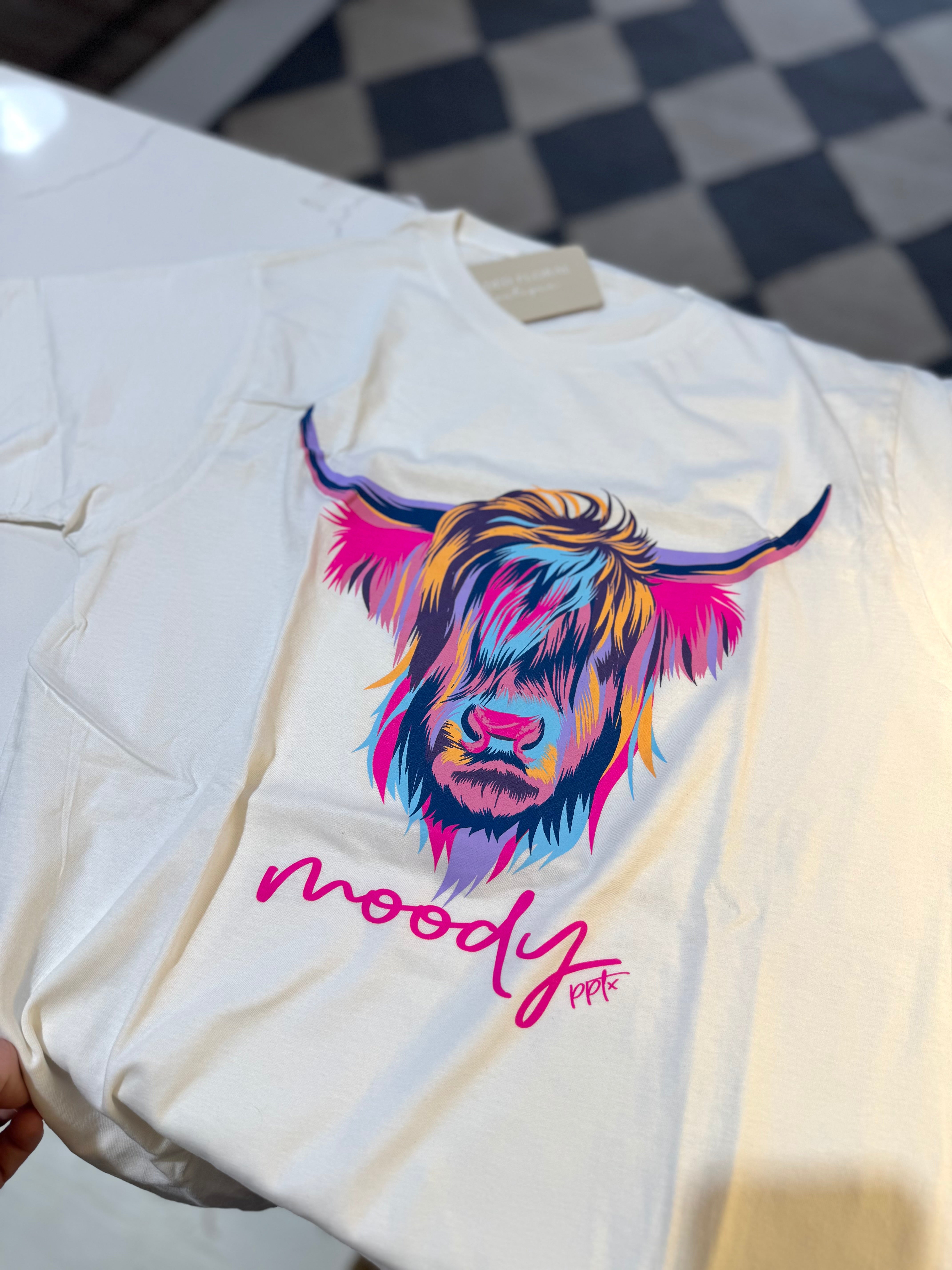 Multicolor Moody Highland Cow Tee