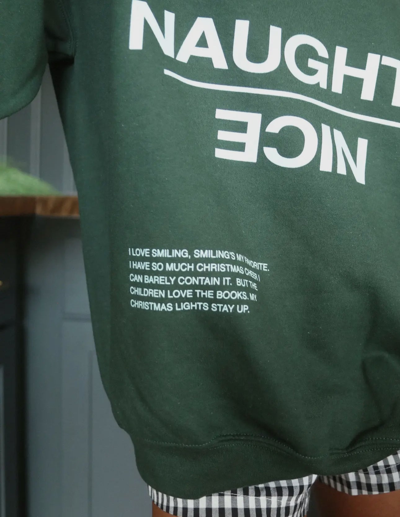 Naughty and Nice Pine Green Graphic Crew