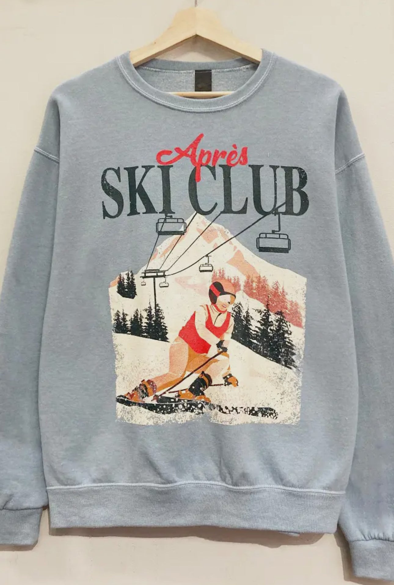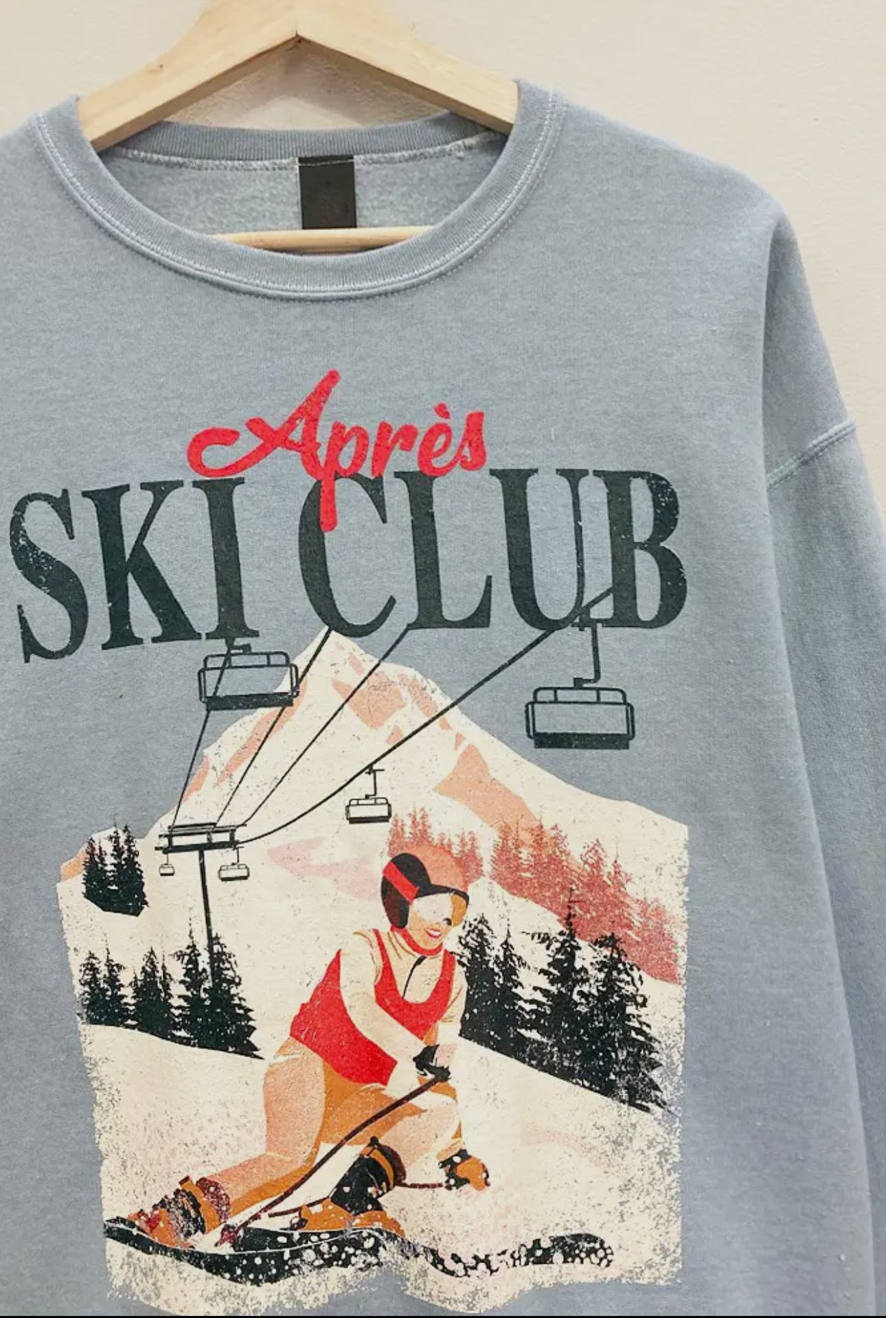 Apres Ski Club Dusty Blue Graphic Crew