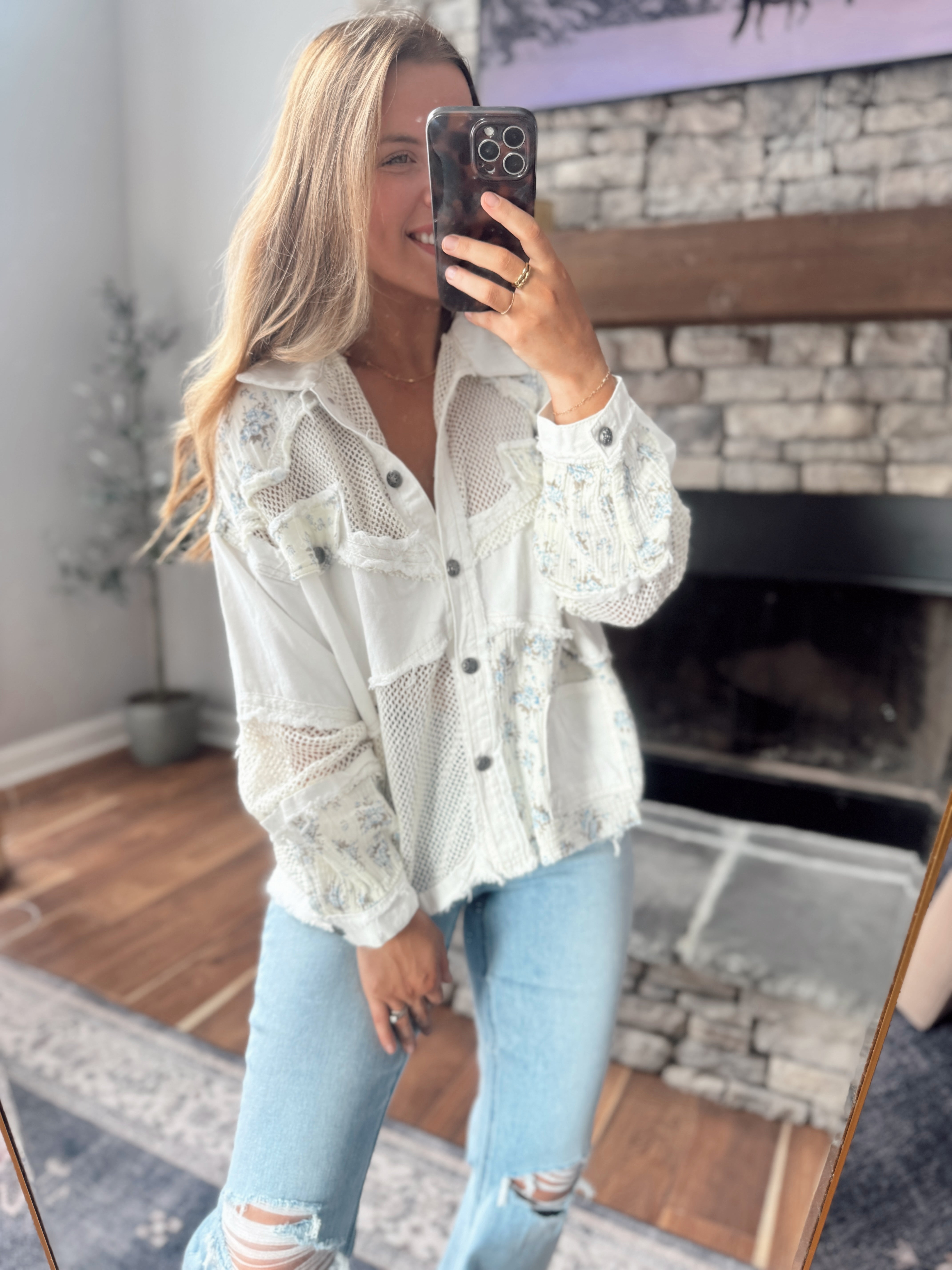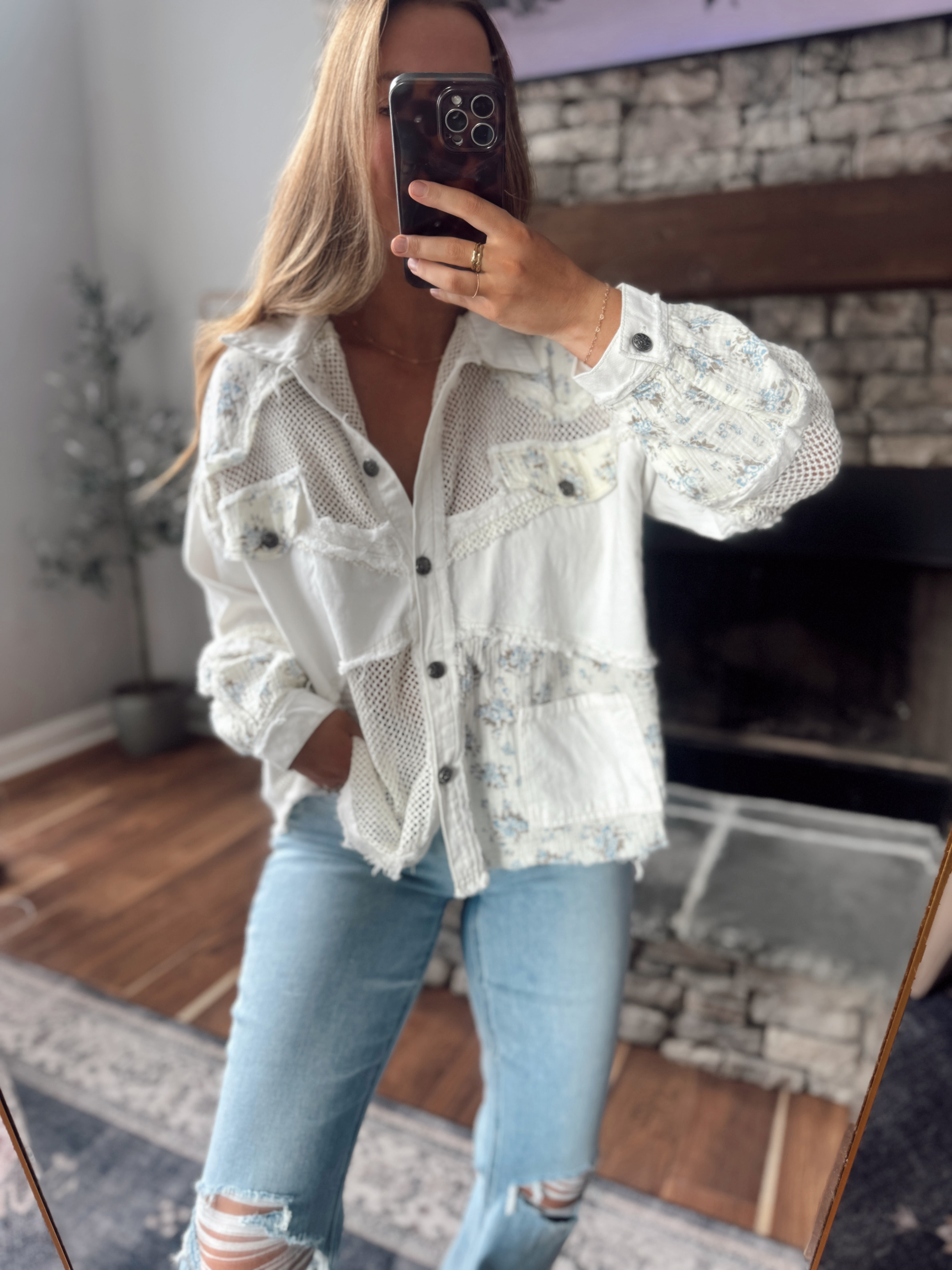 Find Me in Floral Ivory Denim Contrast Jacket