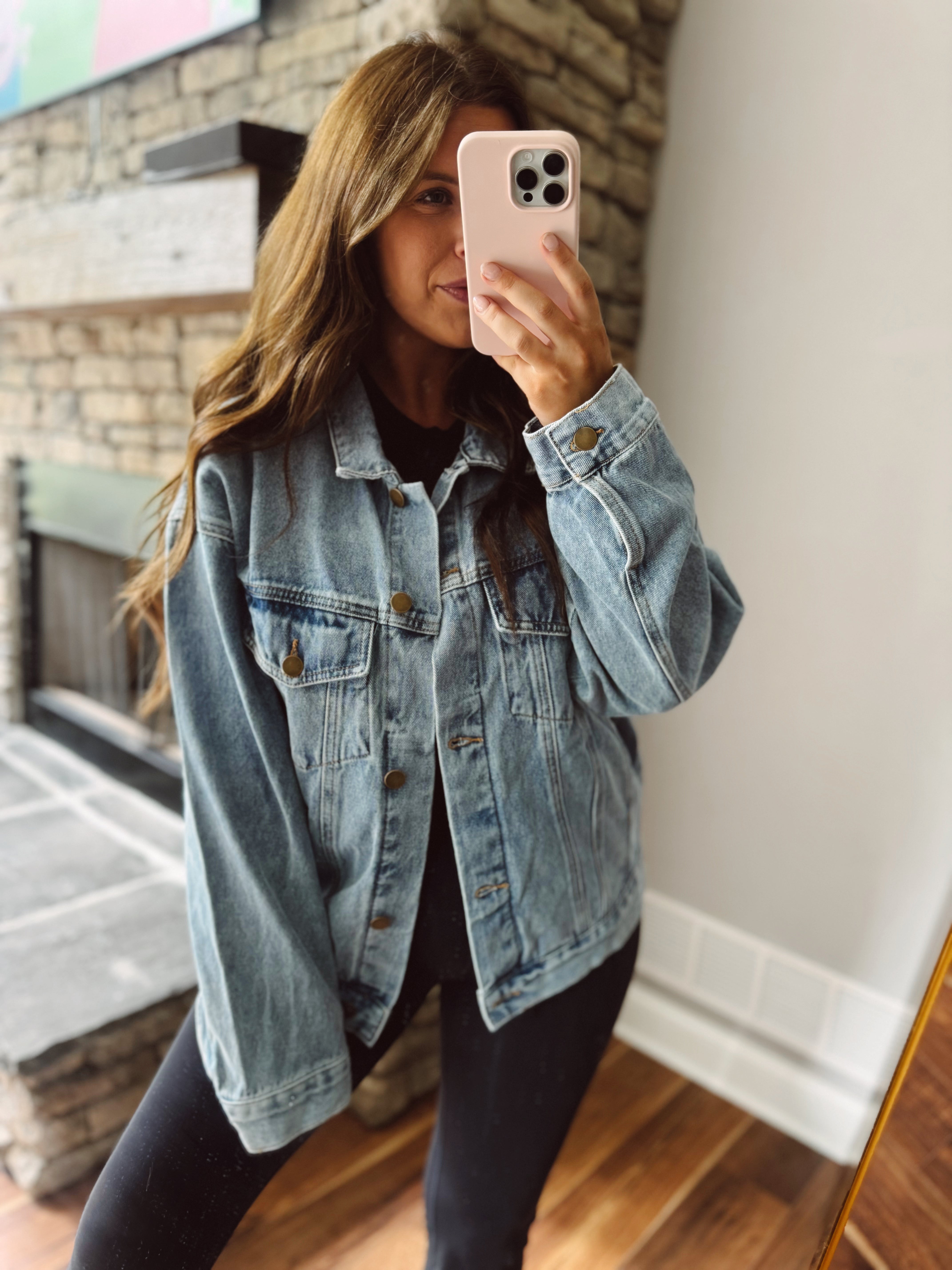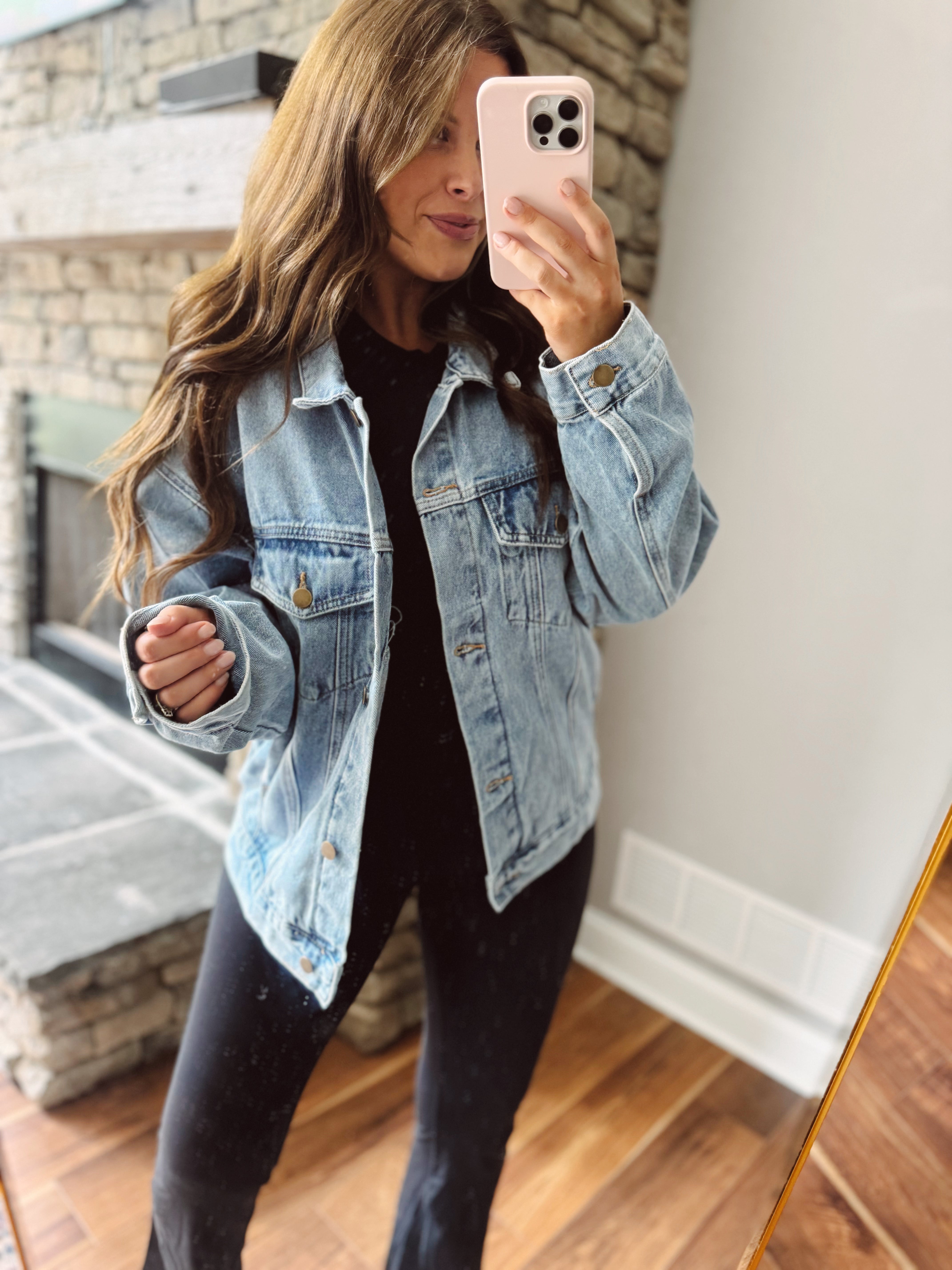 Throw on this medium wash denim jacket and instantly level up your casual game. The boxy cut gives you that effortlessly cool vibe—roomy enough to layer over your favorite tees or sweaters, but still totally wearable. Classic denim that works with everything from jeans to dresses, this jacket is basically the wardrobe MVP that never goes out of style. Perfect for those moments when you need just the right amount of edge without trying too hard.