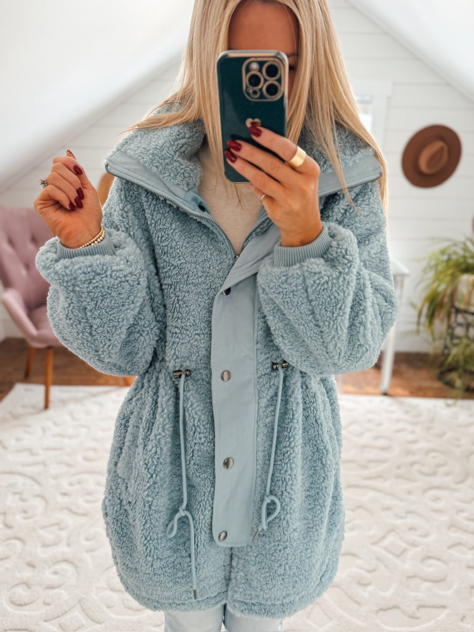 Ice Blue Oversized Fuzzy Jacket IN STORE
