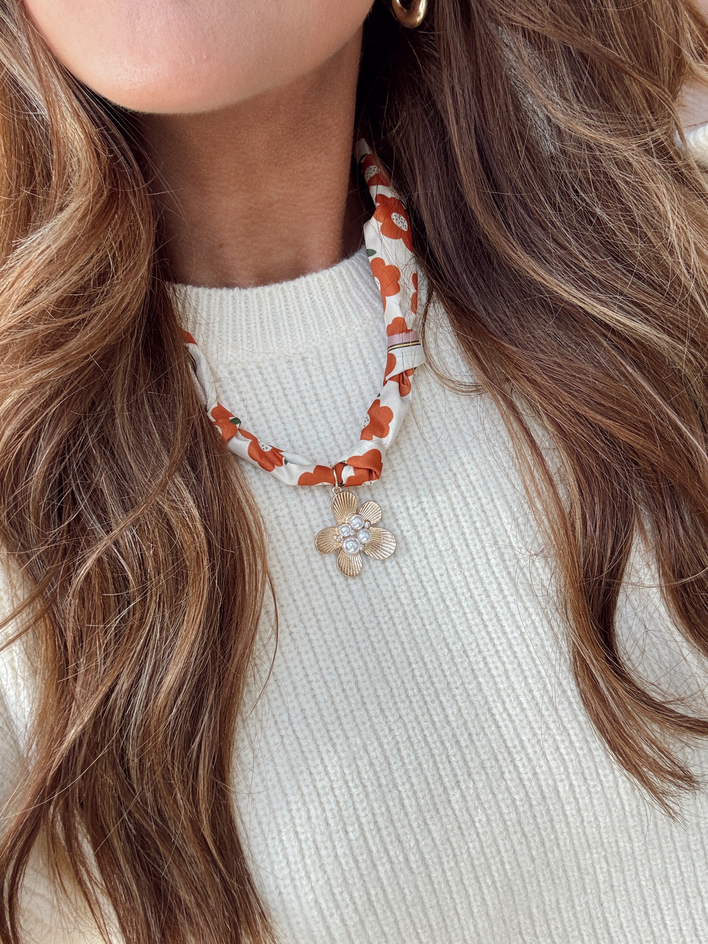 Floral Pearl Flower Charm Bandana Necklace