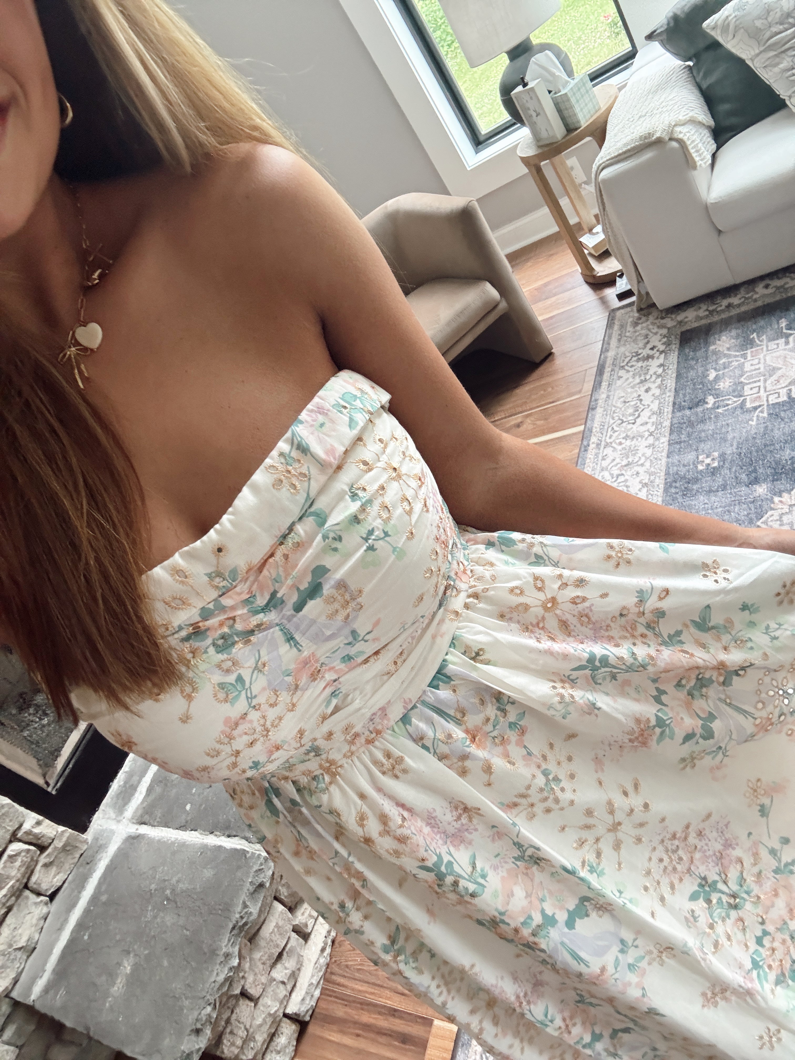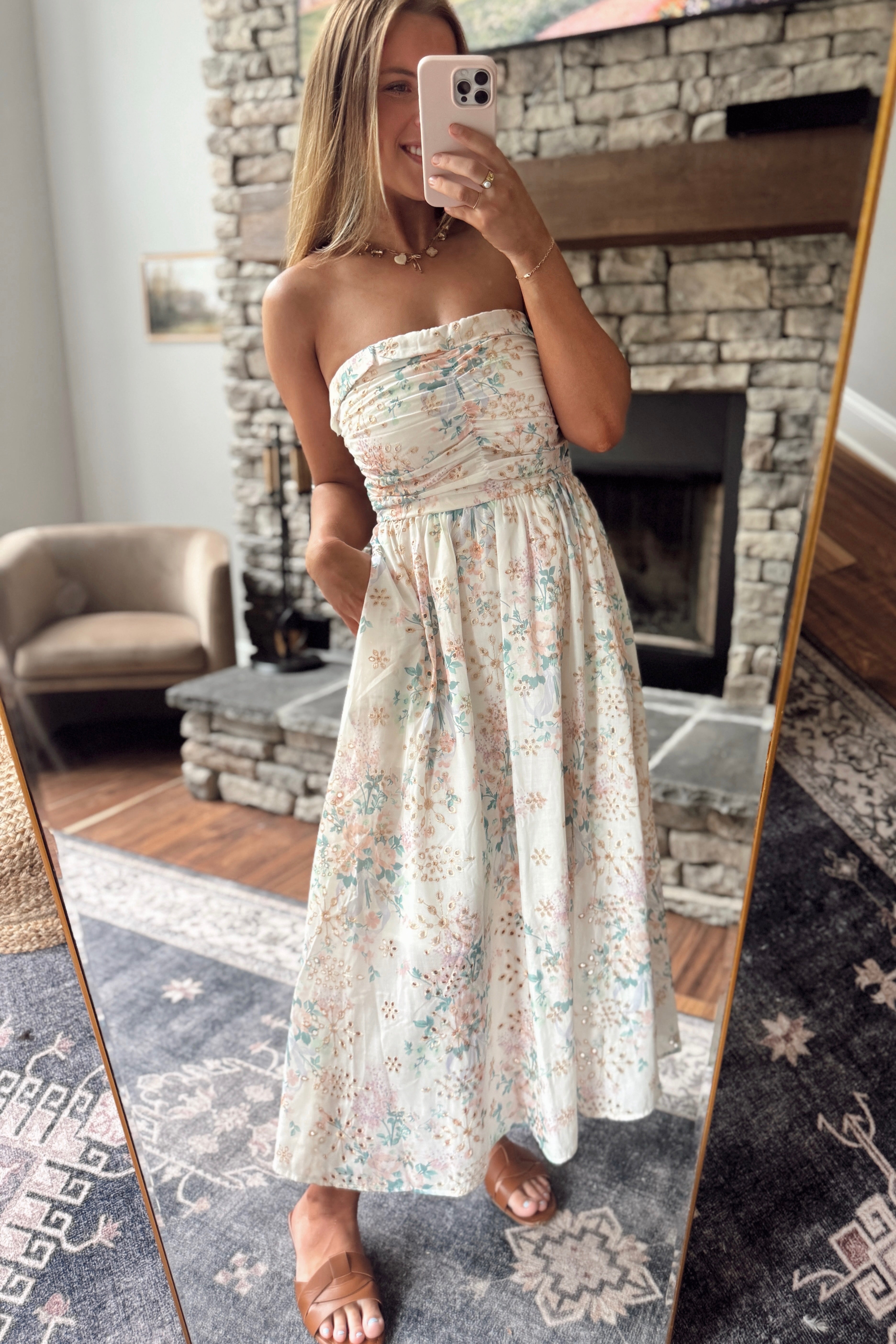 Spring Bloom Ruched Strapless Maxi