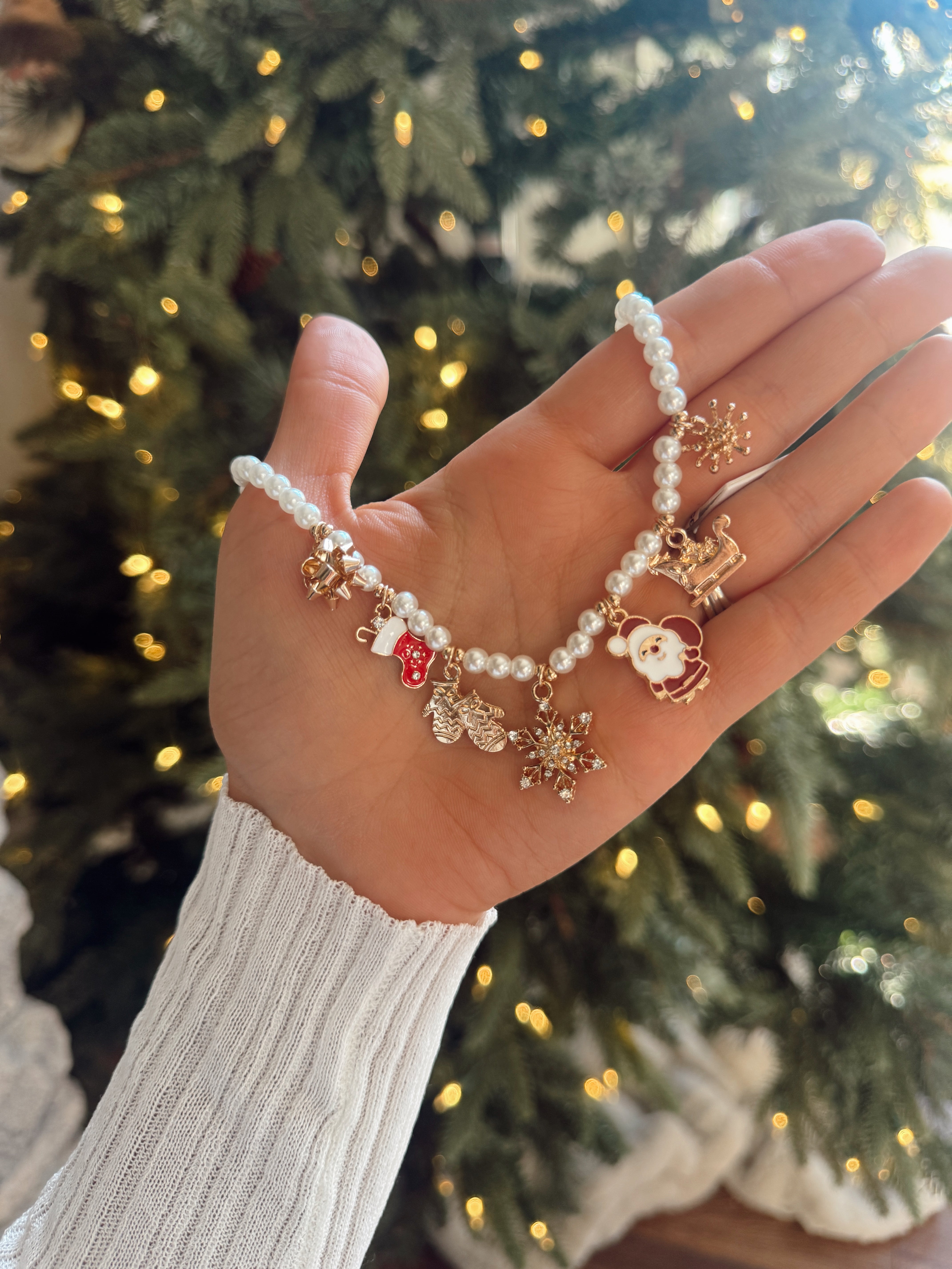 Gold Pearl Chain Christmas Charm Necklace