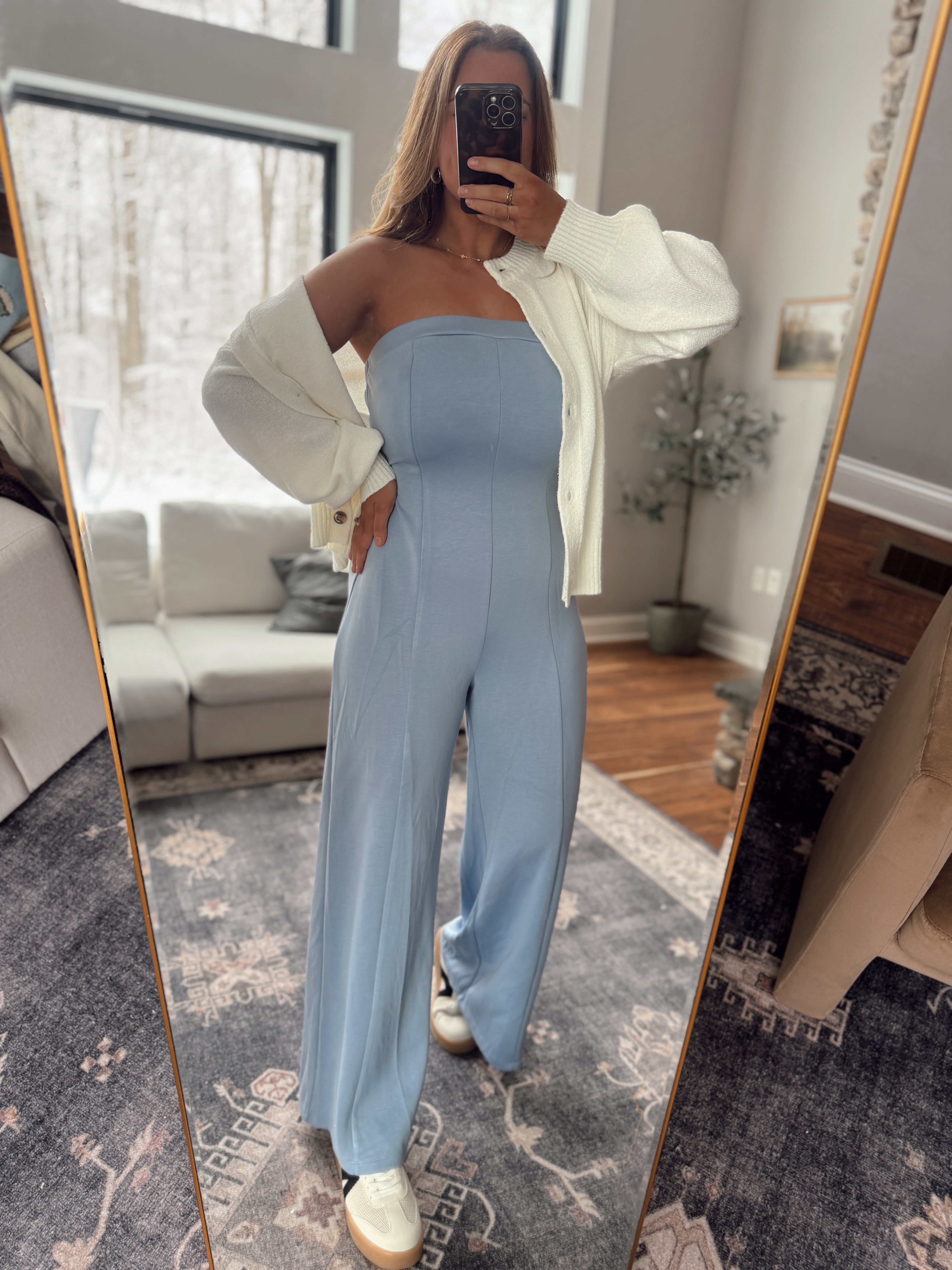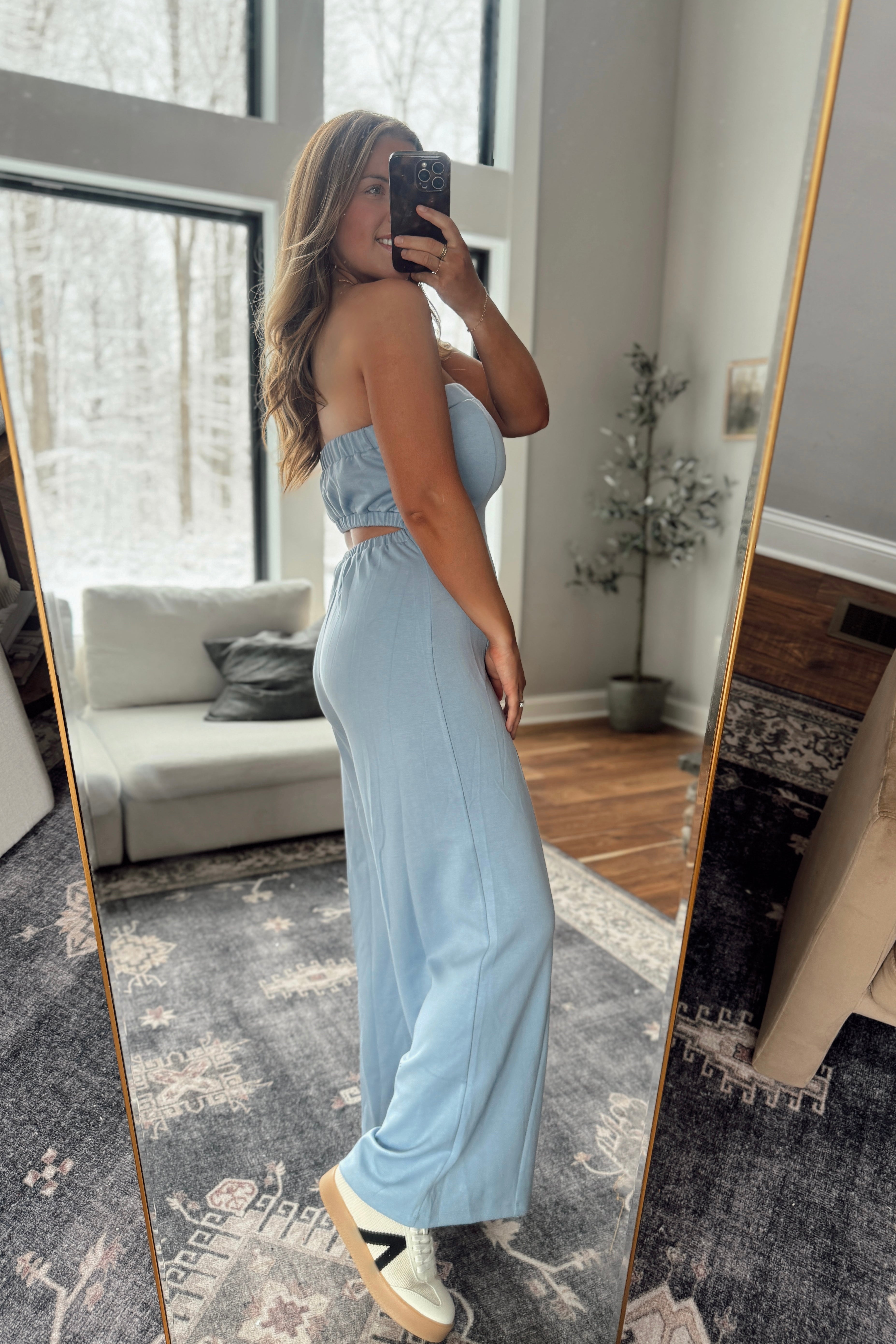 Blue Modal Strapless Cutout Jumpsuit