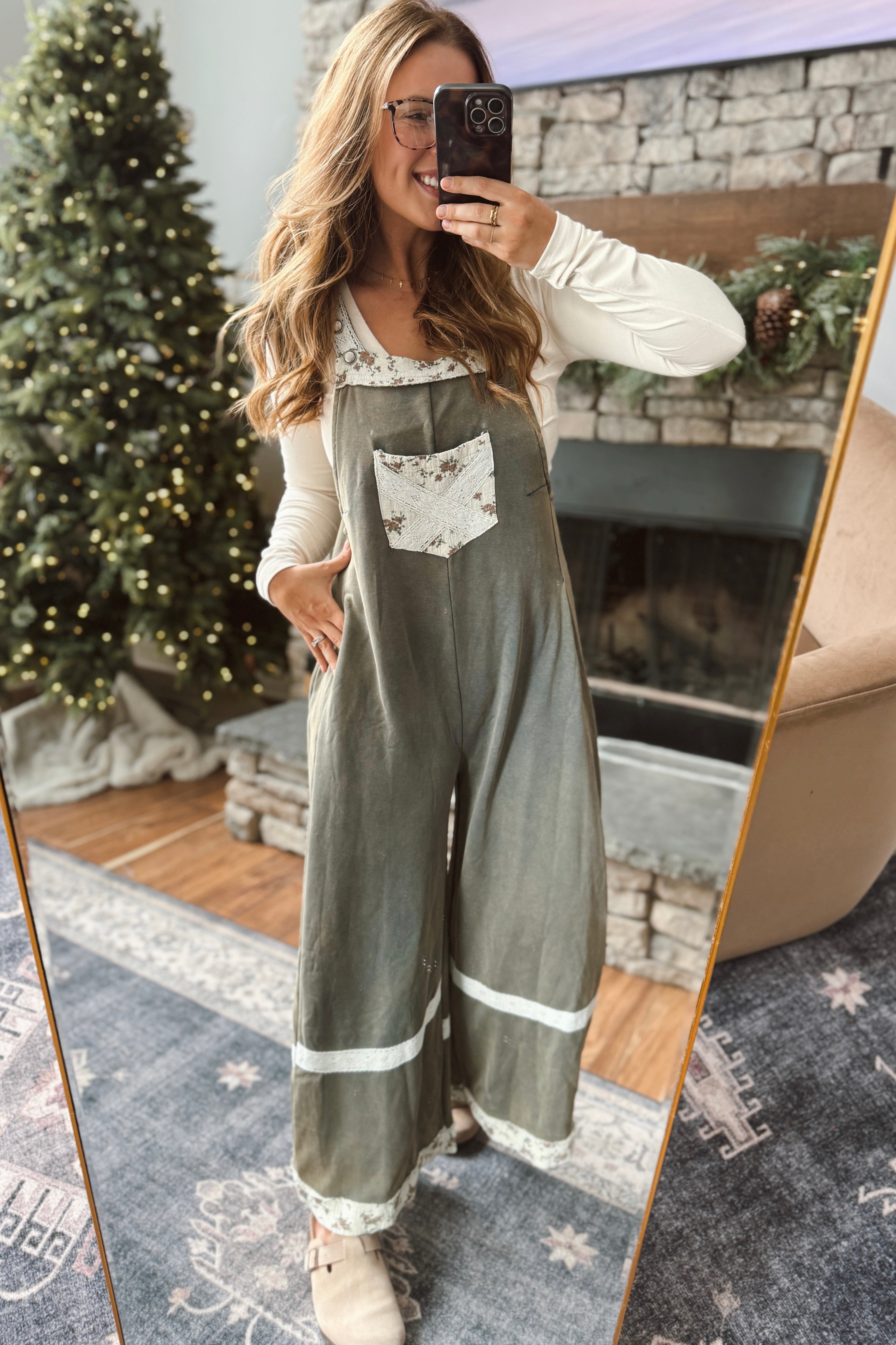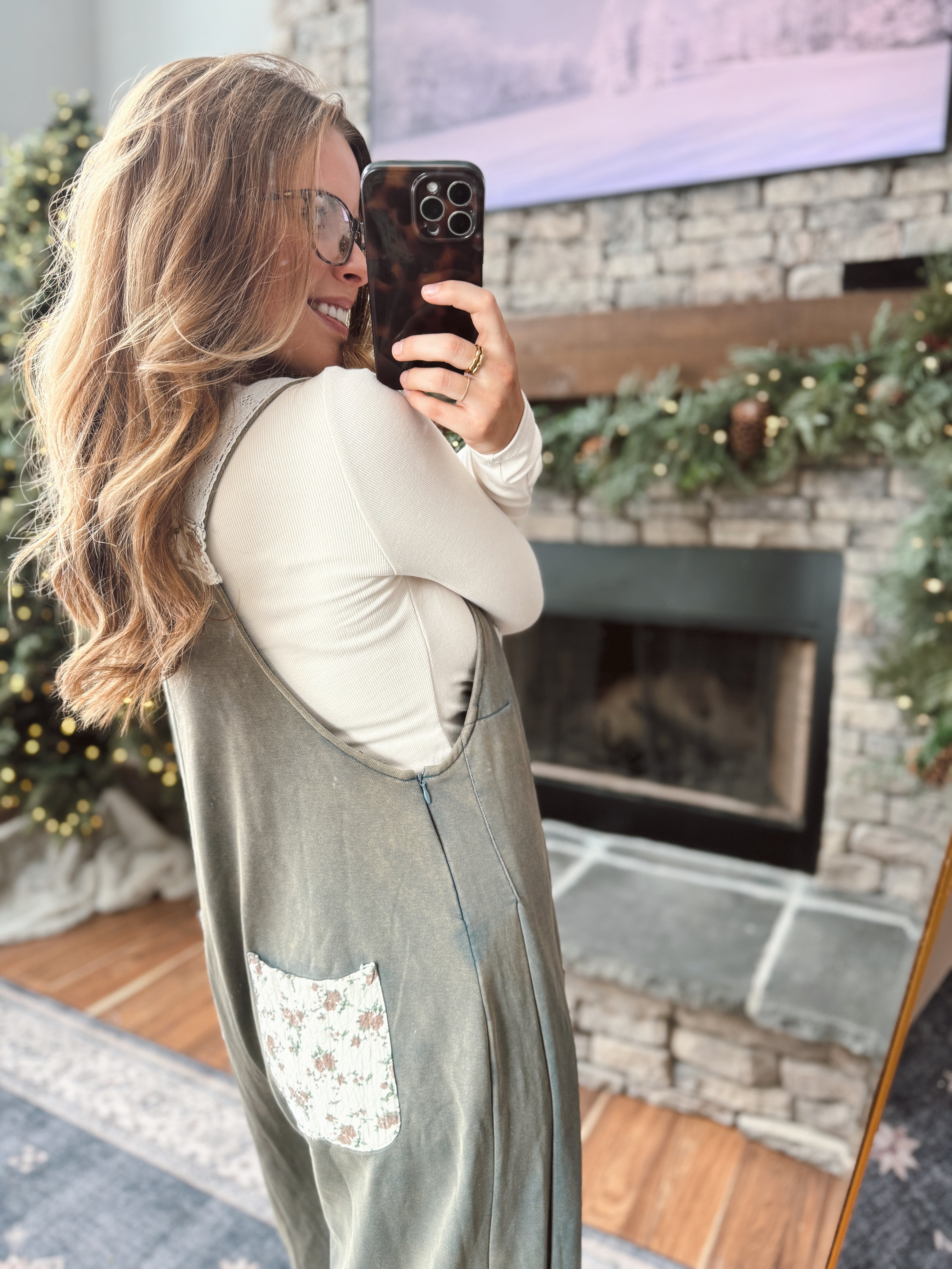 Vintage Moss Printed Patch Overalls