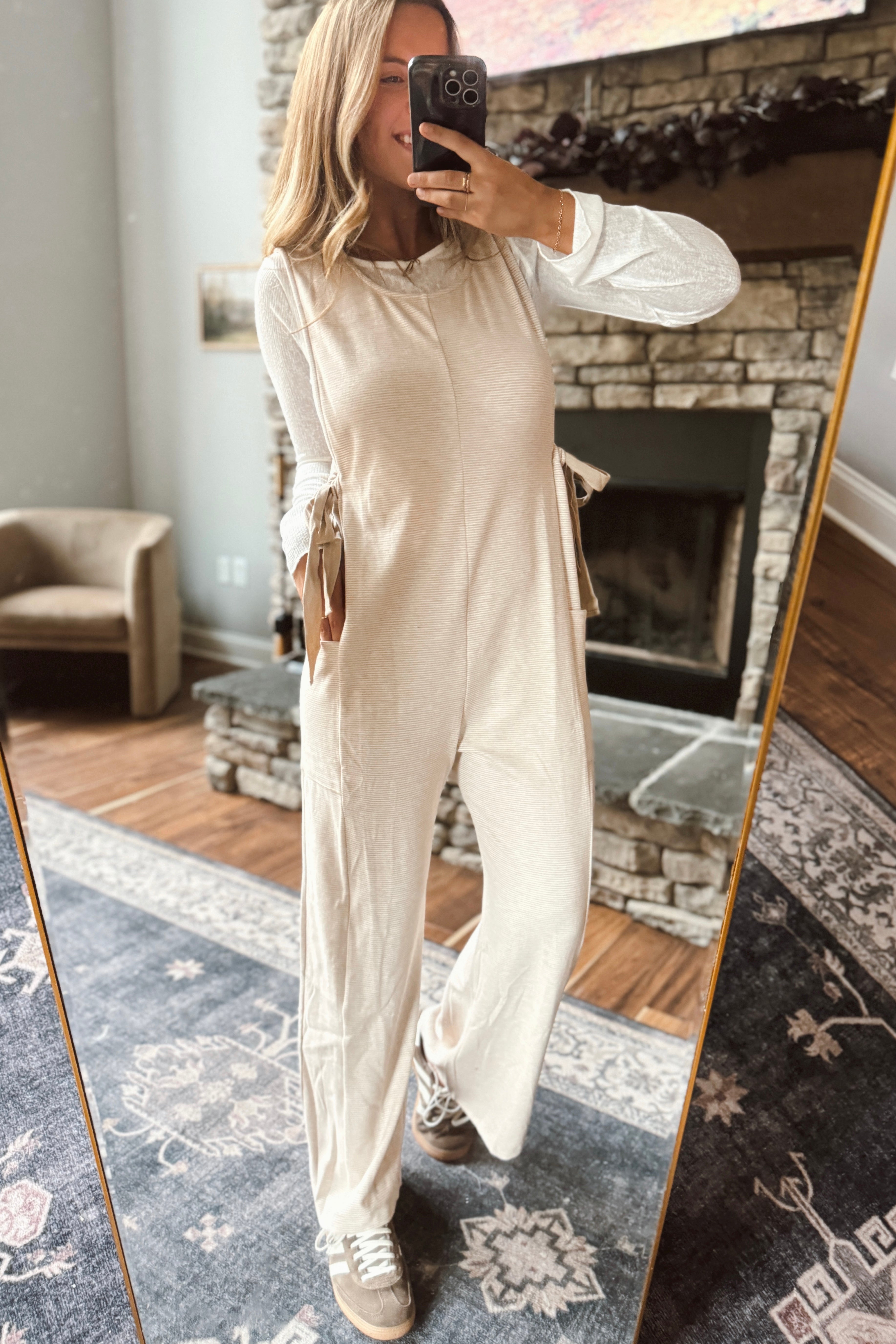 Beige Ribbon Tie Jumpsuit