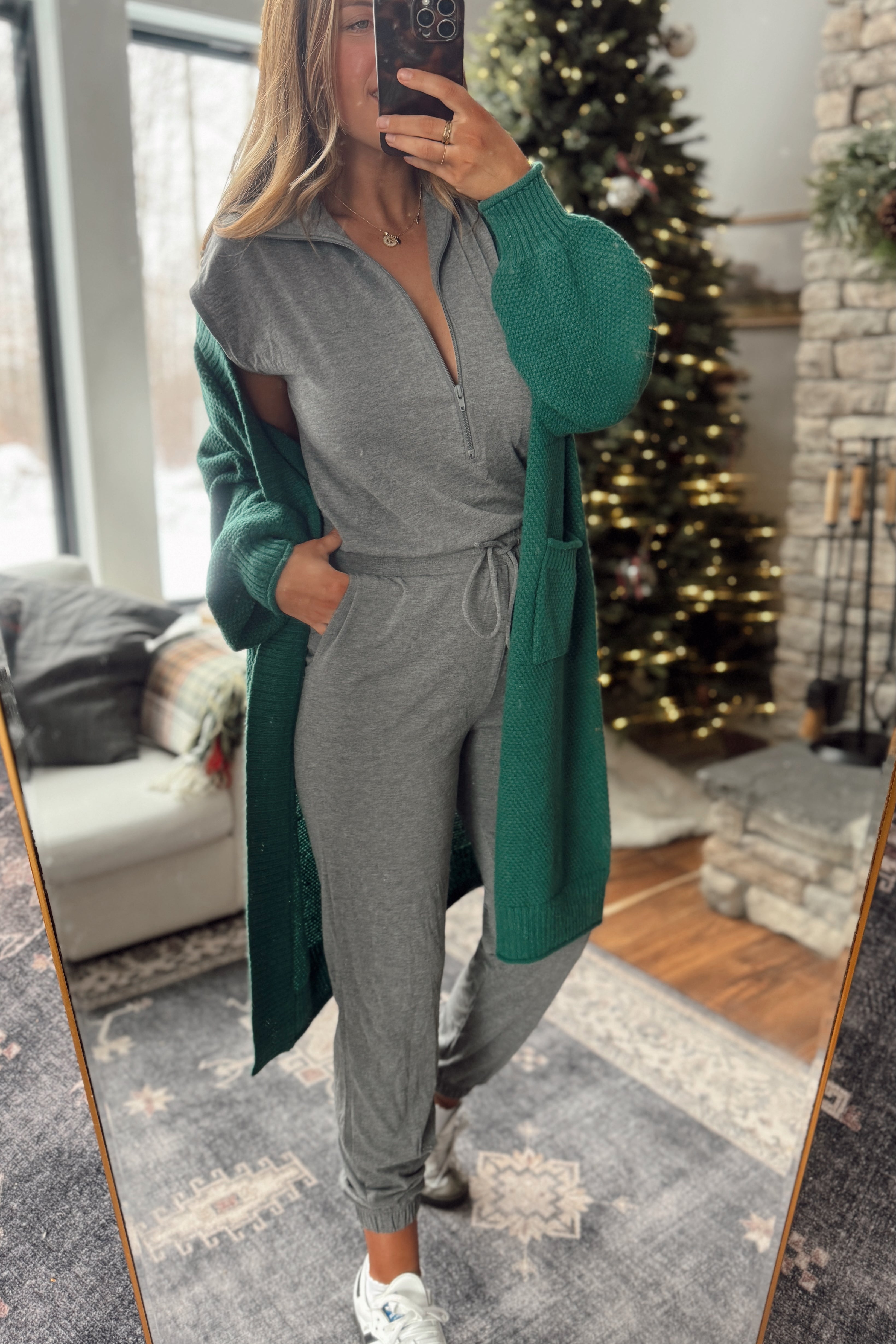 Dark Gray Half Zip Knit Jumpsuit