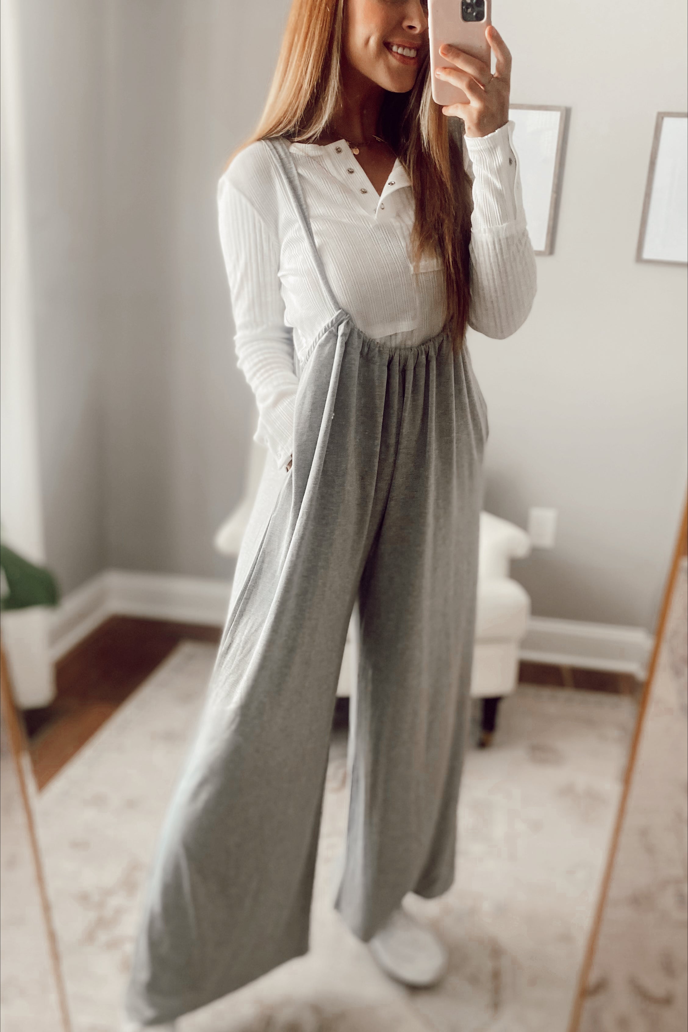 Allure Heather Grey Wide-leg Suspender Pants