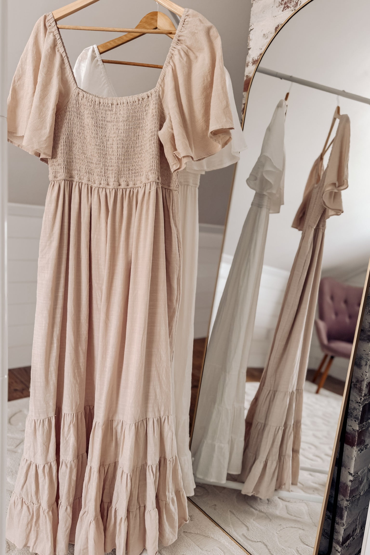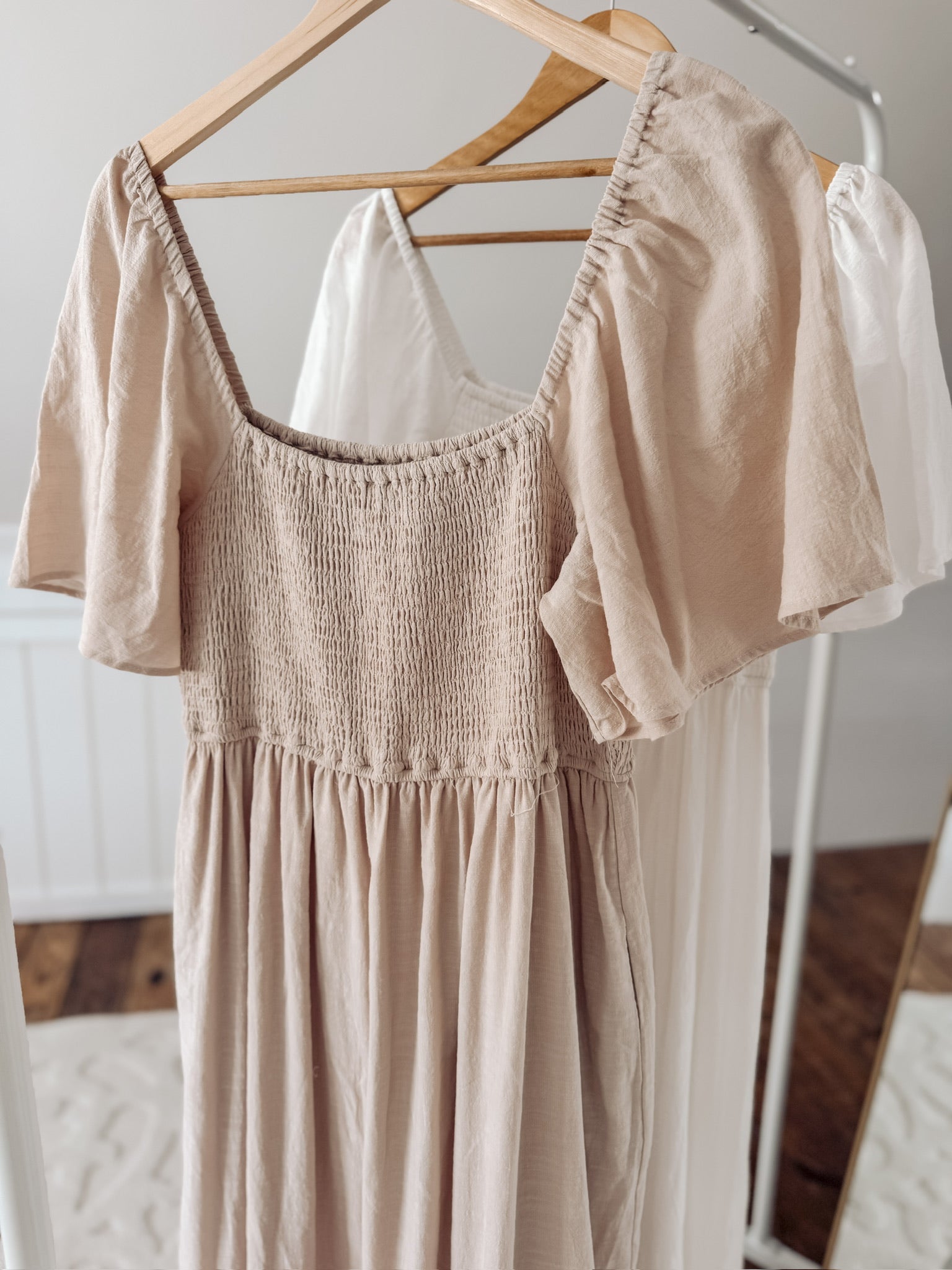 To The Tropics Linen Smocked Flutter Sleeve Maxi