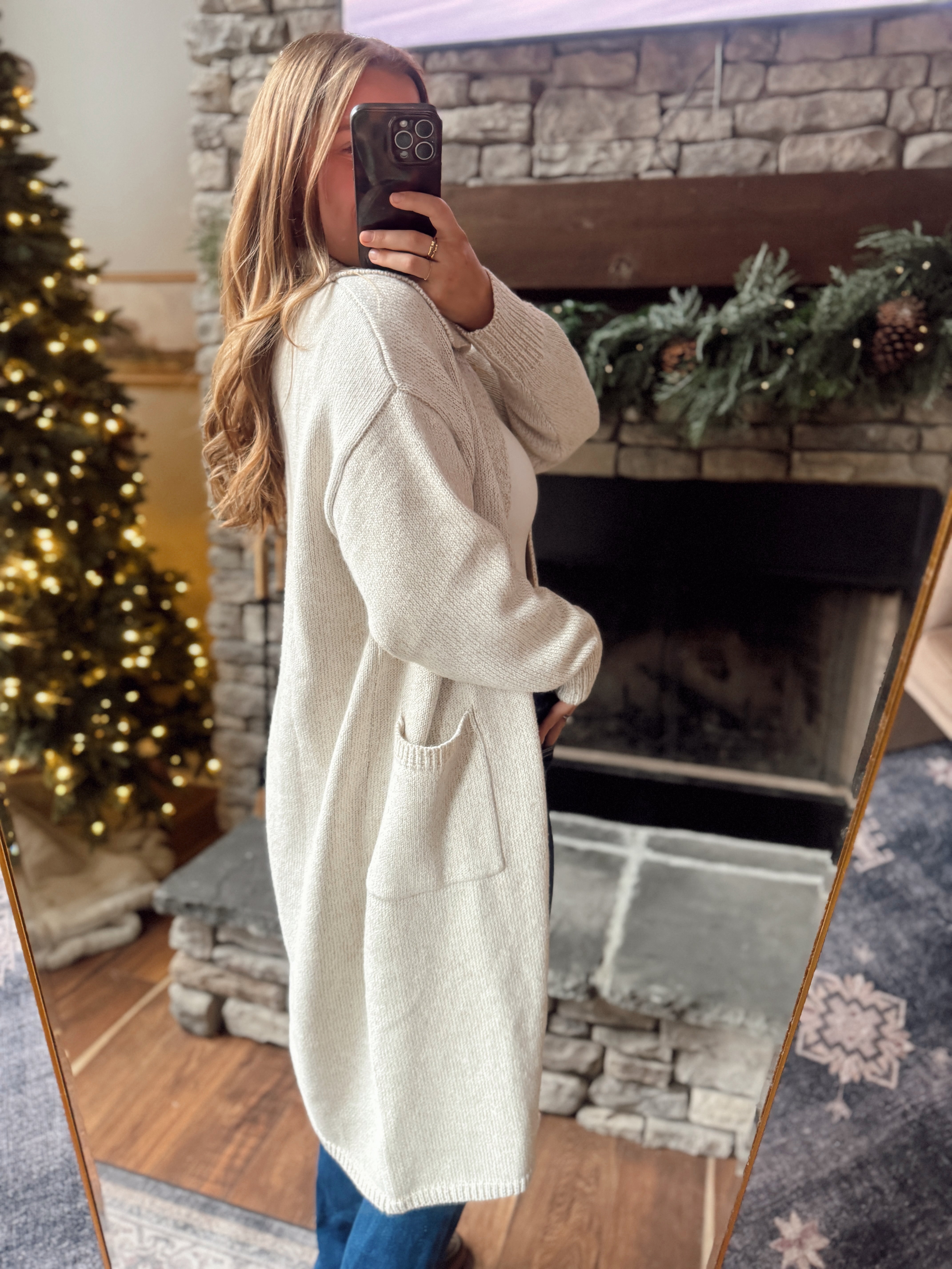 Oatmeal Long Sleeve Collared Midi Cardigan
