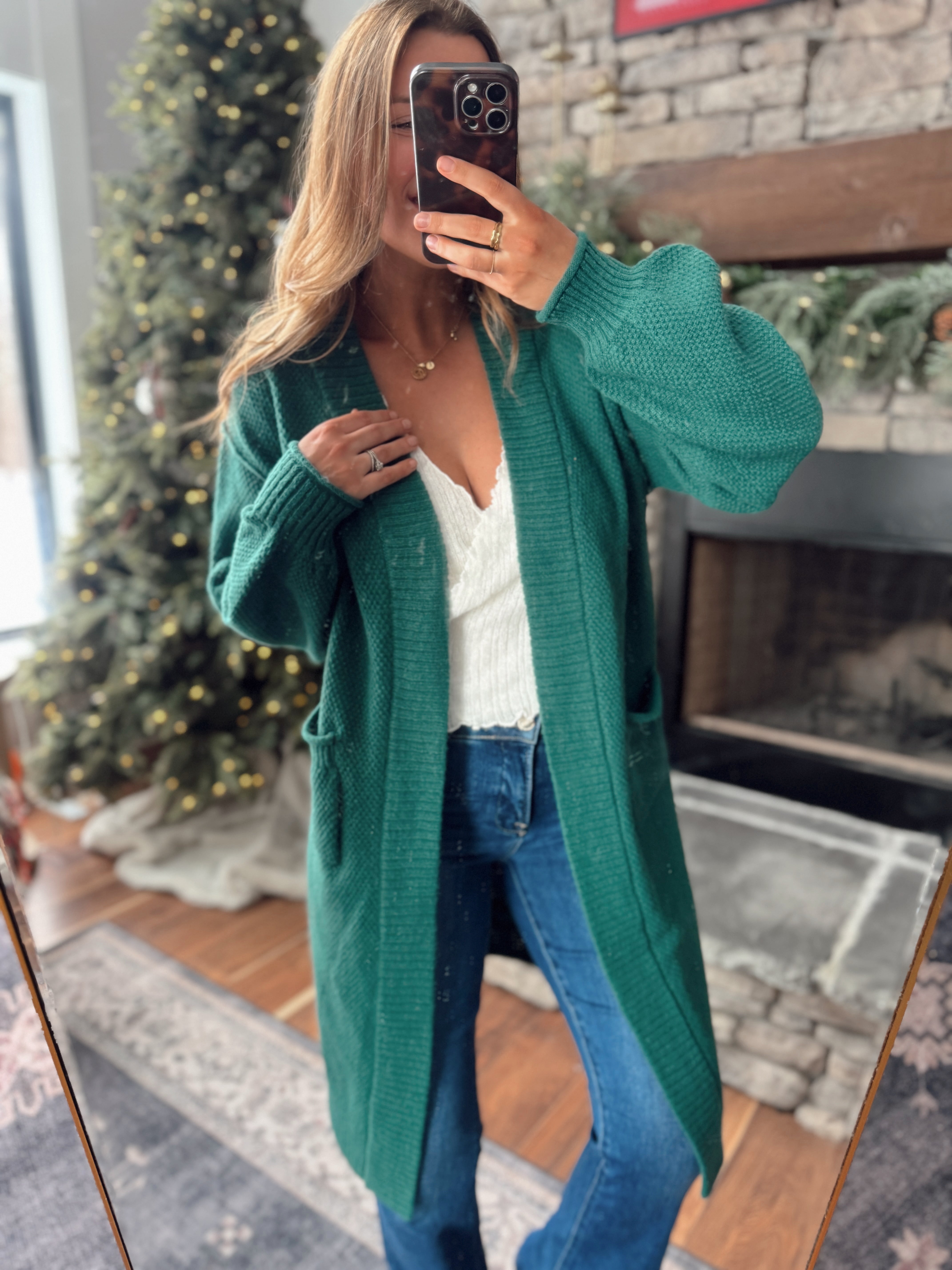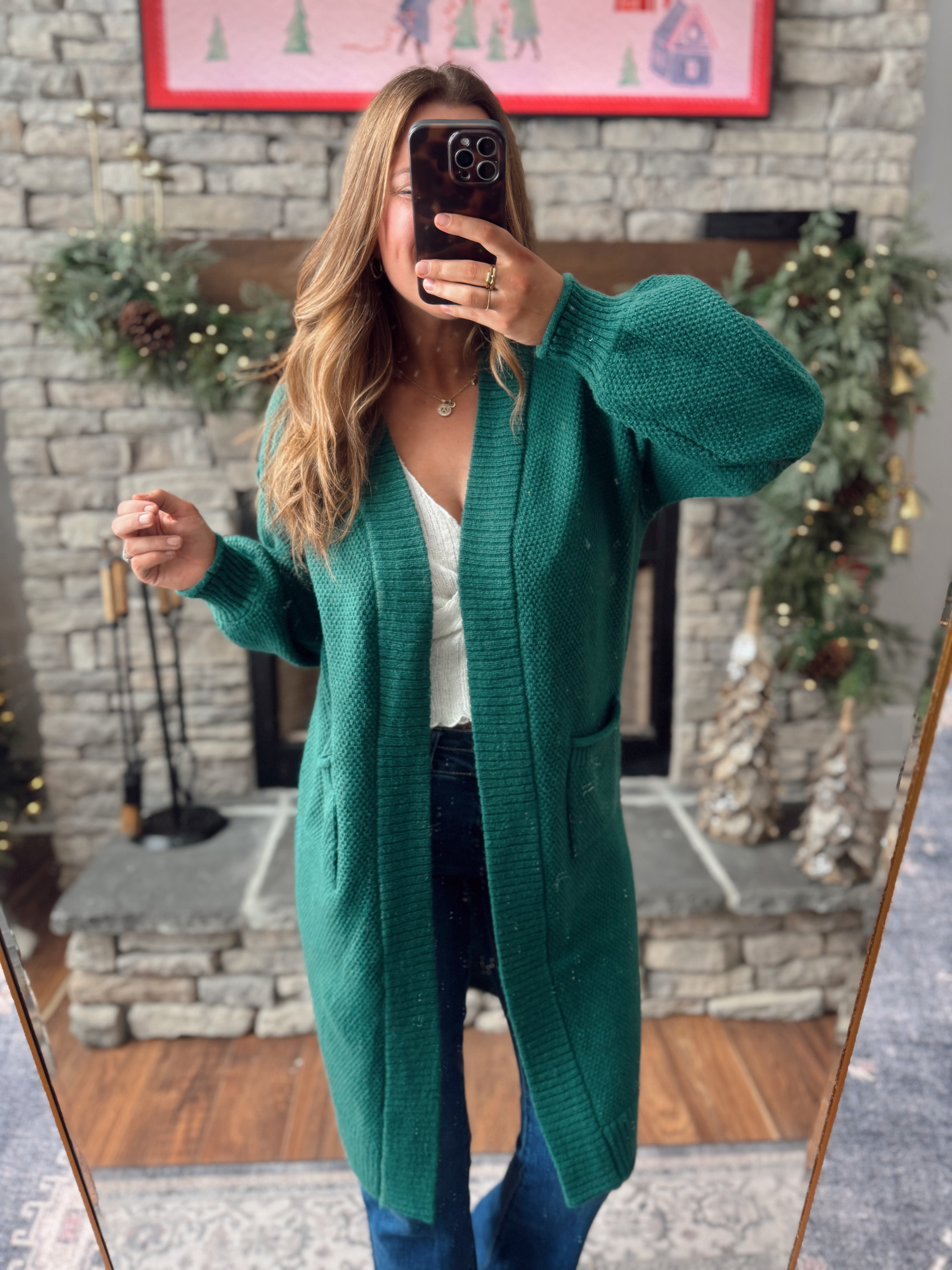 Dark Green Oversized Textured Cardigan