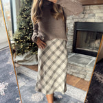 Mushroom Plaid Midi Skirt