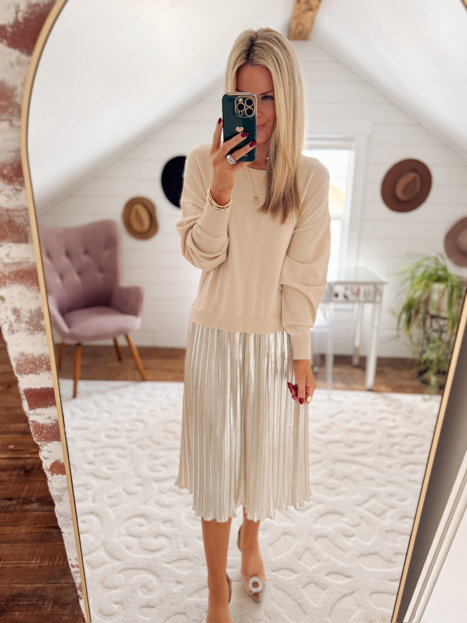 Champagne Toasts Pleated Skirt Sweater Dress IN STORE