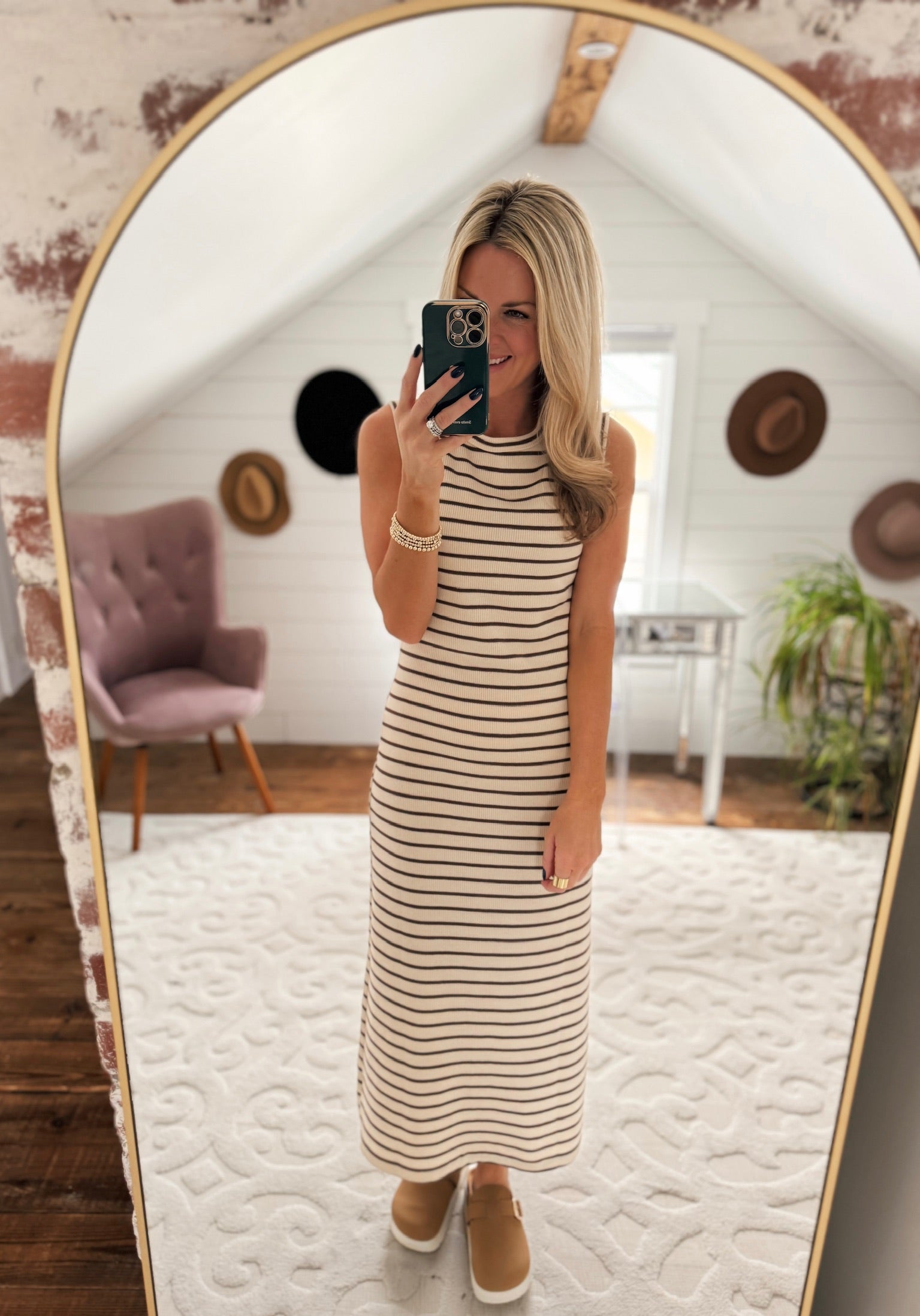 Beige/Brown Striped Knitted Dress IN STORE