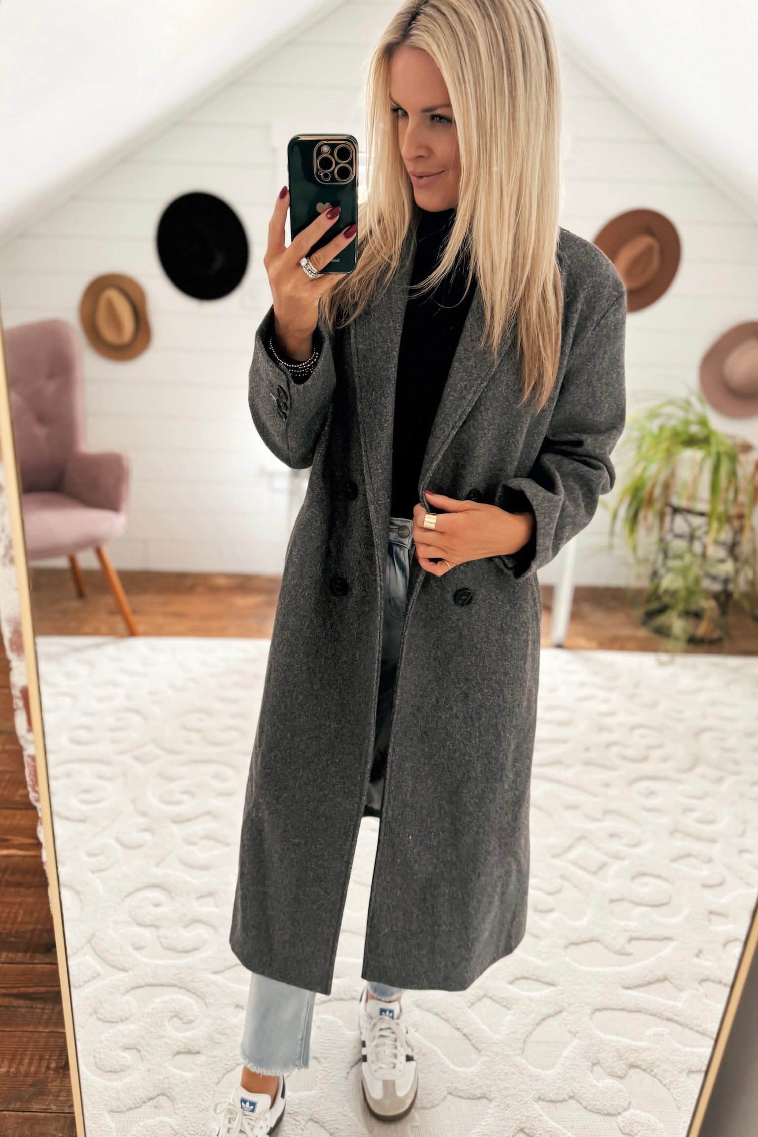 Chic Season Charcoal Collared Lapel Duster Coat IN STORE