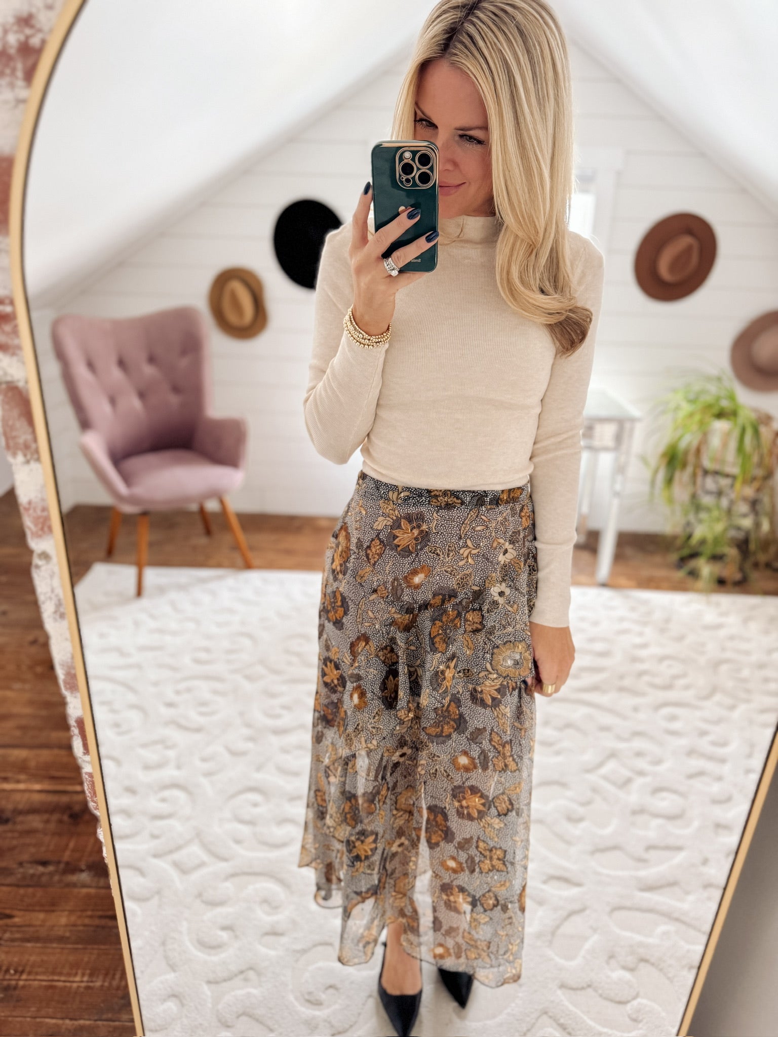 Day or Night Brown/Multi Midi Skirt