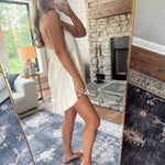 Aliza Almond V-Neck Floral & Crochet Ribbed Mini