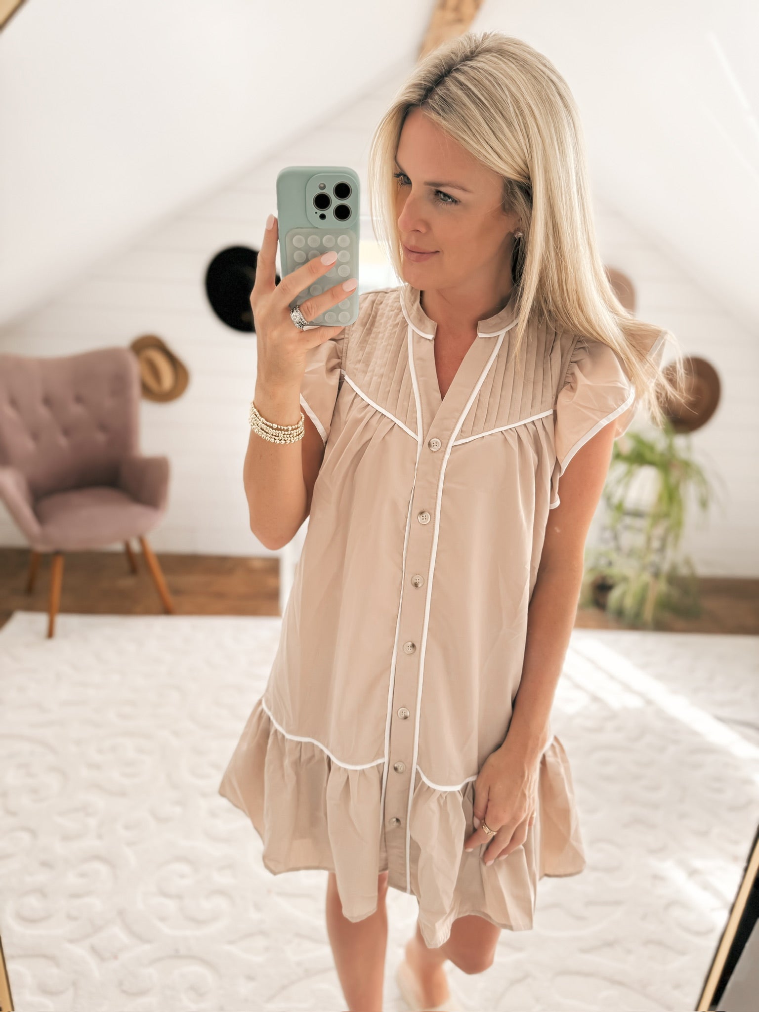 Day To Night Natural Tan Mini Dress